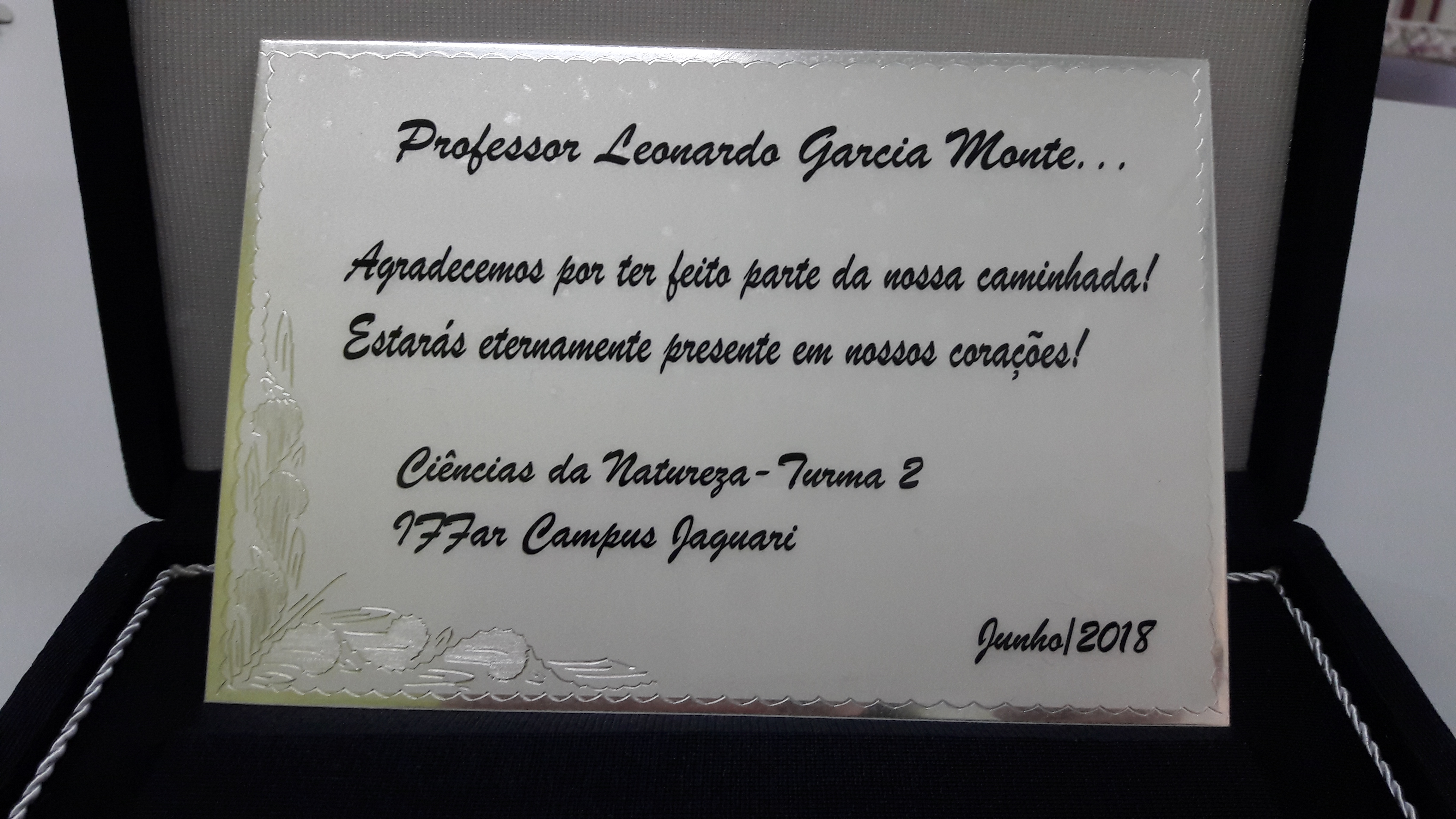 No dia 25 de junho, alunos e servidores do IFFar - Campus Jaguari prestaram uma bela e emocionante homenagem ao professor Leonardo Garcia Monte, falecido num acidente de trânsito no dia 23 de junho.