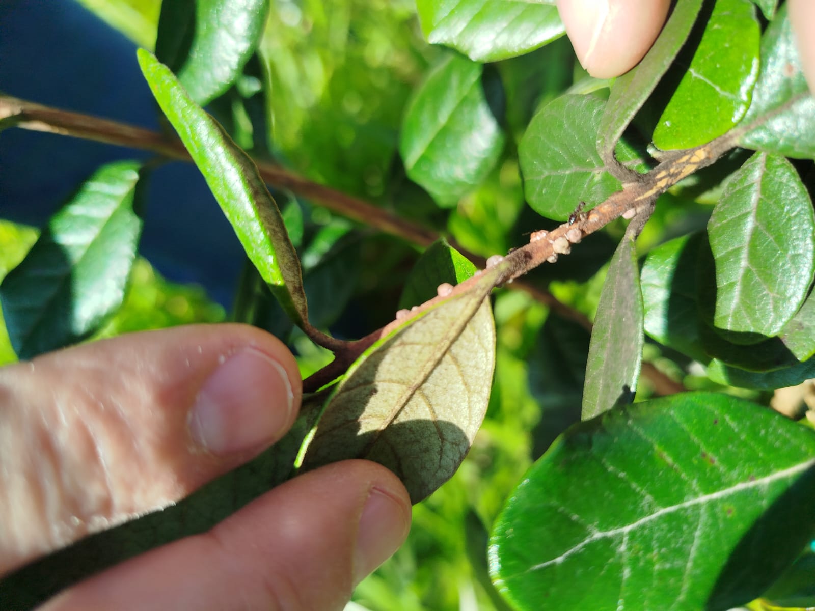 Foto 5: Fungo Fumagina que se aproveita do açúcar retirado pelas cochonilhas e coloniza a superfície das folhas, impedindo a fotossíntese
