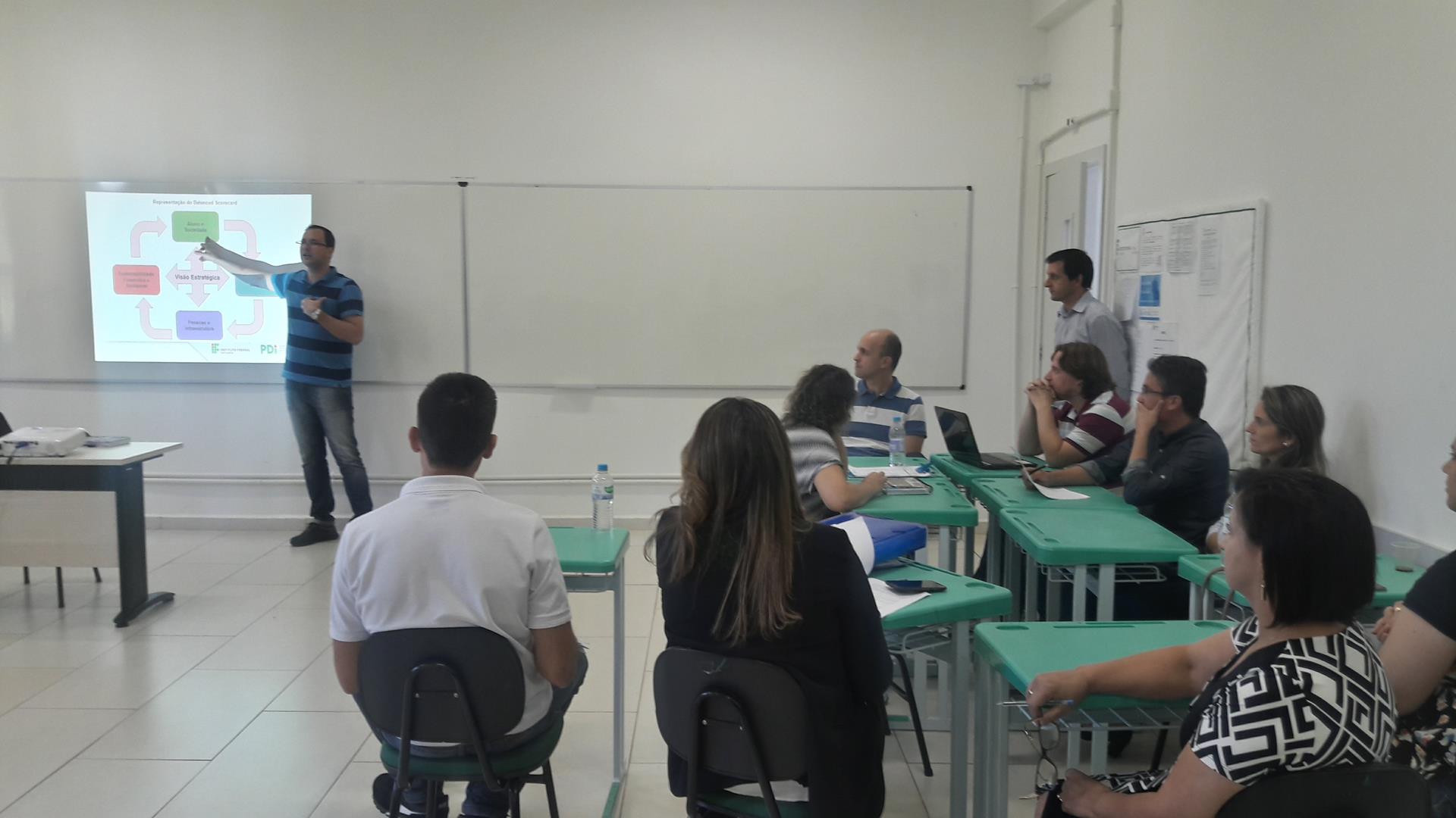 A Comissão de Planejamento Estratégico, representado no Campus pelo professor Cláudio Hofler, e a Comissão Local do PDI, formada pelos servidores Melissa Walter, Fernando Moscon, Natália Vasconcelos, Rodrigo Santolin, Anelia Steinbrenner, reuniram-se nos dia 06 de março com os servidores e os alunos.