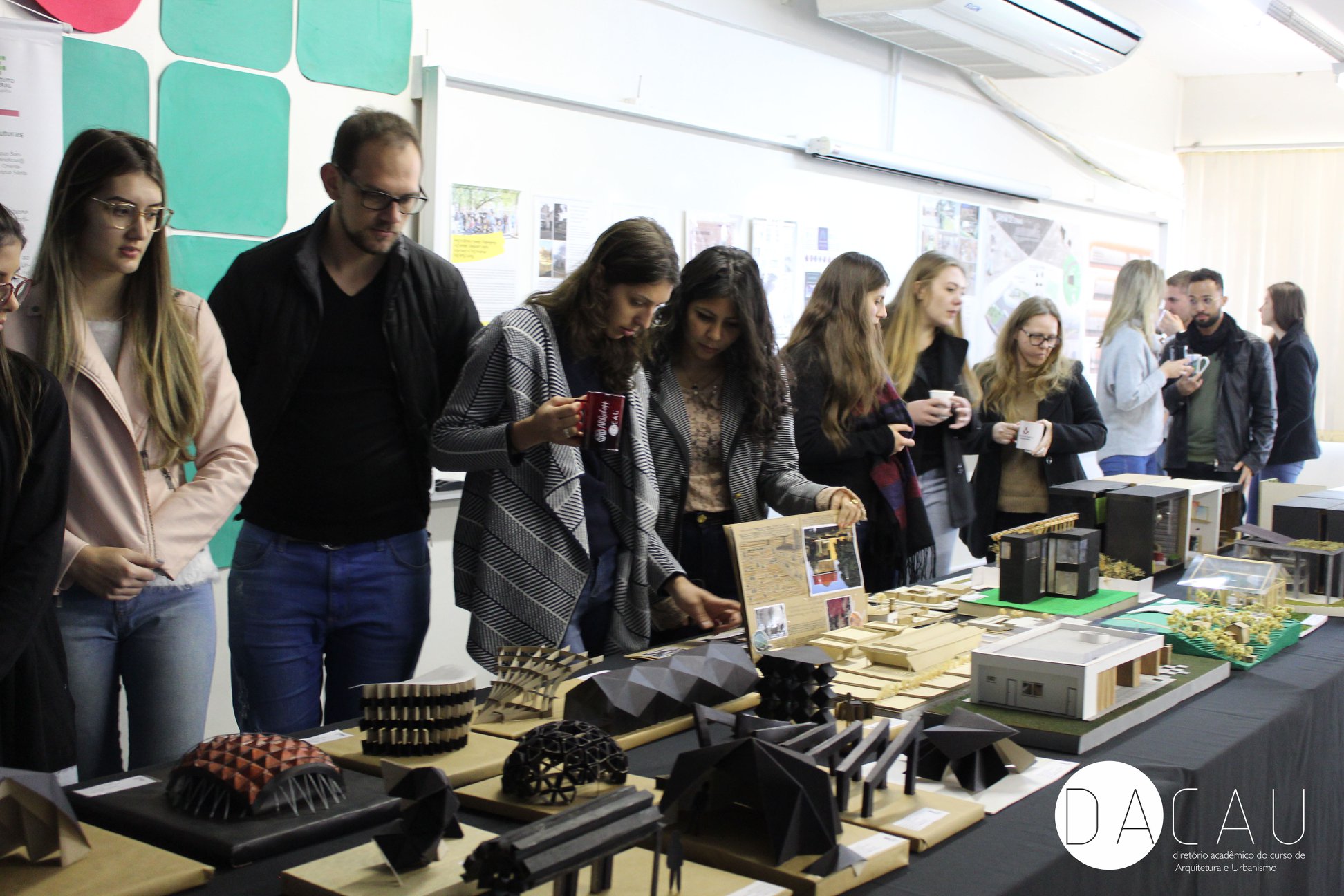 Os acadêmicos do 2º semestre da graduação em Arquitetura e Urbanismo do IFFar – Campus Santa Rosa apresentaram, na manhã de quinta-feira (12), os trabalhos realizados para a Prática Pedagógica Integrada (PPI), nominada de “Arquitetura Efêmera”. A atividade envolveu as disciplinas de Composição e Estudos da Forma I, Informática e Teoria e História da Arquitetura e Urbanismo II, e seus respectivos docentes, Manuela Ilha Silva, Franciele Meinerz Forigo e Ana Cláudia Böer Breier.