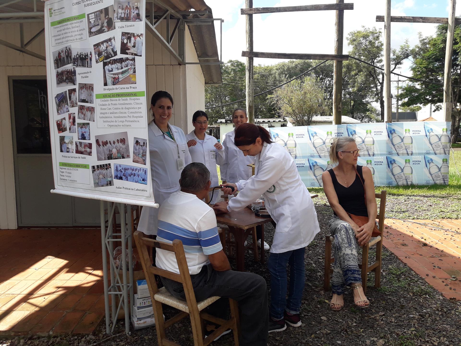 Foram proporcionadas à população diversas atividades, tais como verificação de Pressão Arterial e Glicose, além de orientações em saúde pelo pessoal do Curso Técnico em Enfermagem, orientados pelas professoras Sandra Cardoso e Rita Fernanda.