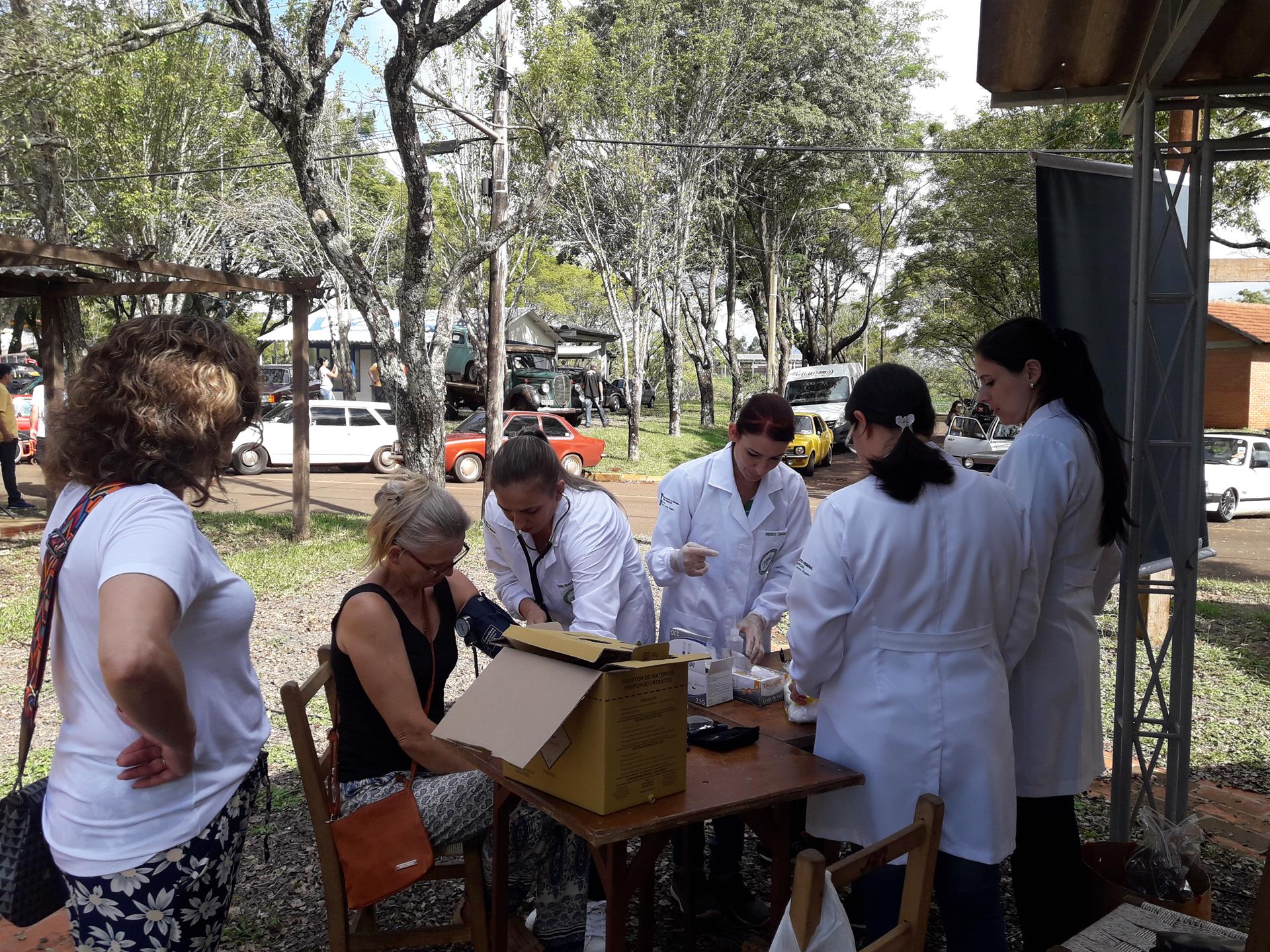 Neste último domingo (01 de abril), no Parque da Fenamilho - Santo Ângelo/RS, os alunos dos Cursos Técnico Subsequente em Enfermagem e Estética PROEJA (Integrado) do Campus Santo Ângelo realizaram atendimentos nos visitantes do evento da AVANT (Associação dos Veículos Antigos de Santo Ângelo), promovido em parceria com a Prefeitura Municipal da cidade.
