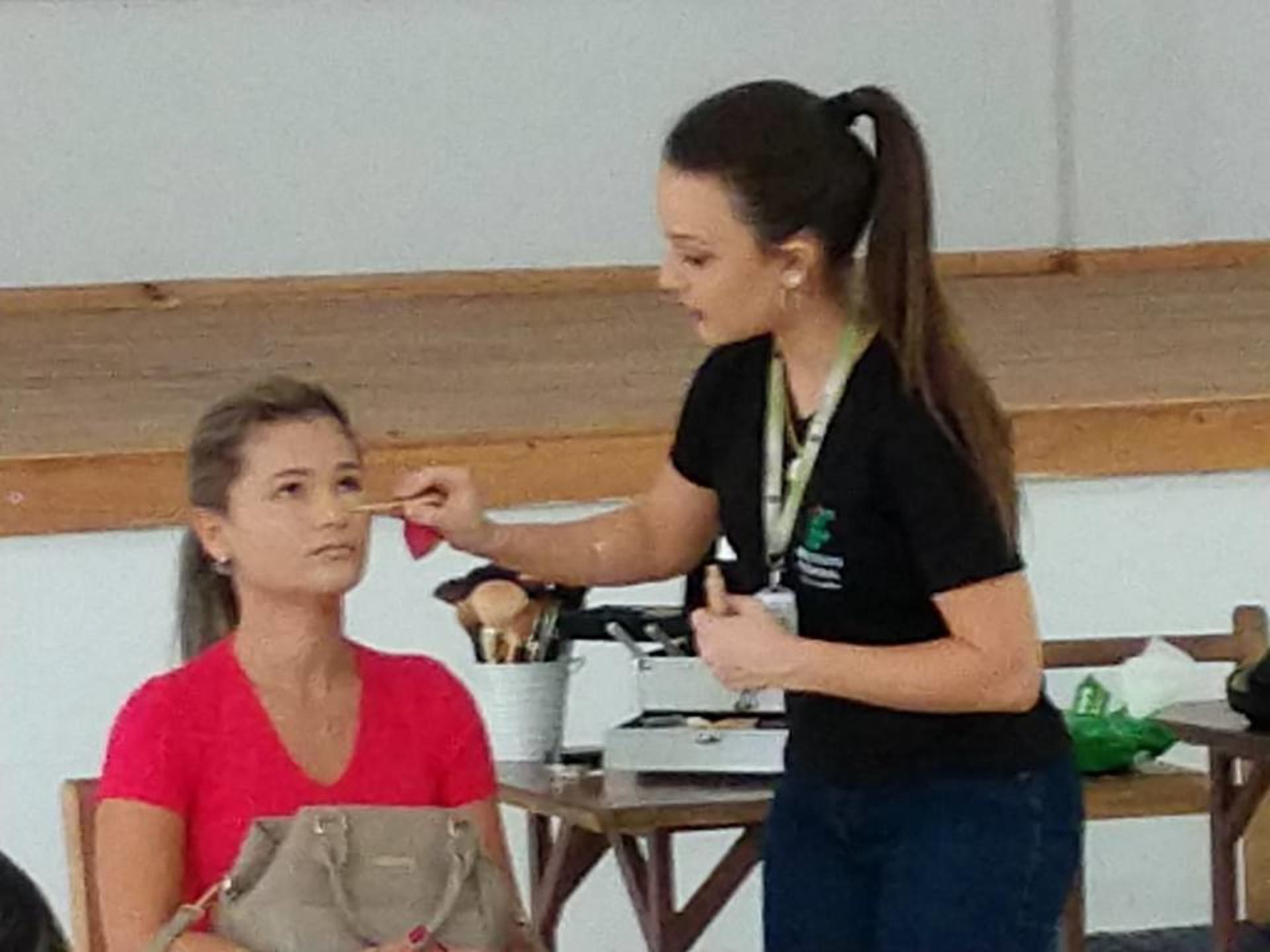 Também, as participantes aproveitaram um Workshop de Maquiagem Social com a professora Maiara Segatto, docente do Curso Técnico em Estética.