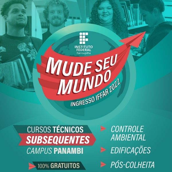 Dúvidas podem ser esclarecidas por telefone (55) 3376 8818 ou em nossas redes sociais. Informações completas nos Editais 070/2022 (Subsequentes) e 071/2022 (Proeja), disponíveis em www.iffar.edu.br/panambi.