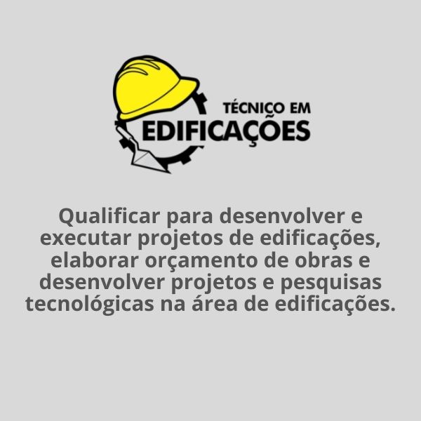 Curso PROEJA Edificações: Destinado a quem tem mais de 18 anos e deseja cursar o Ensino Médio junto com o Curso Técnico em Edificações.