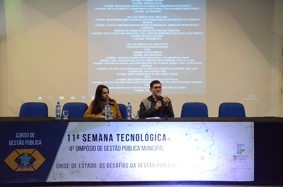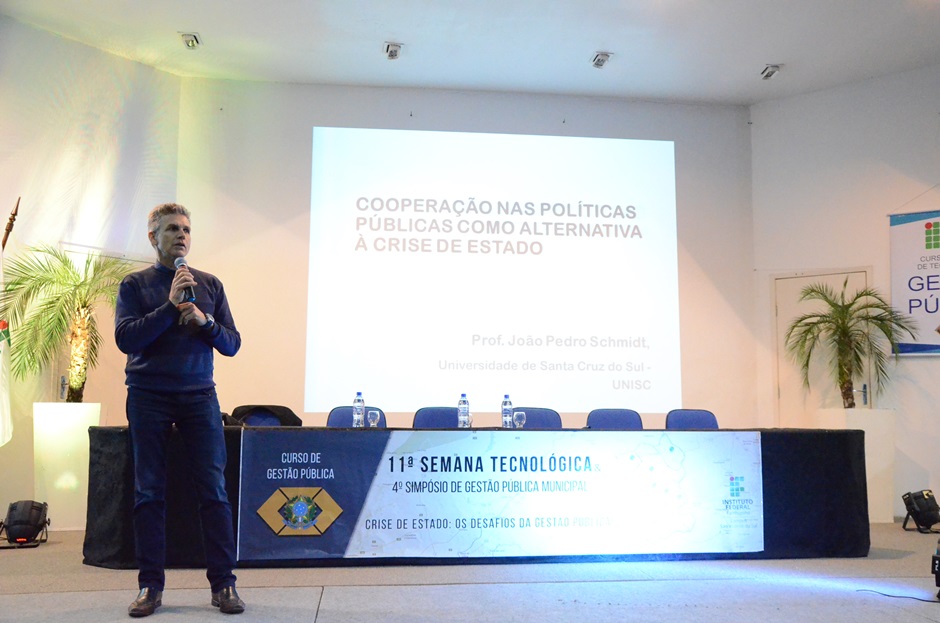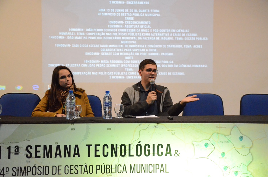 Na tarde do dia 13, dentro da programação do evento, ocorreu a 4ª edição do Simpósio de Gestão Pública Municipal, que expôs e discutiu a colaboração nas políticas públicas como alternativa à crise. A atividade trouxe gestores de municípios do Corede Vale do Jaguari, como João Martins Pinheiro, secretário de Finanças de Jaguari, e Sadi Gioda, secretário de Indústria, Comércio e Turismo de Santiago; além de João Pedro Schmidt, doutor em Ciência Política e professor da UNISC.
