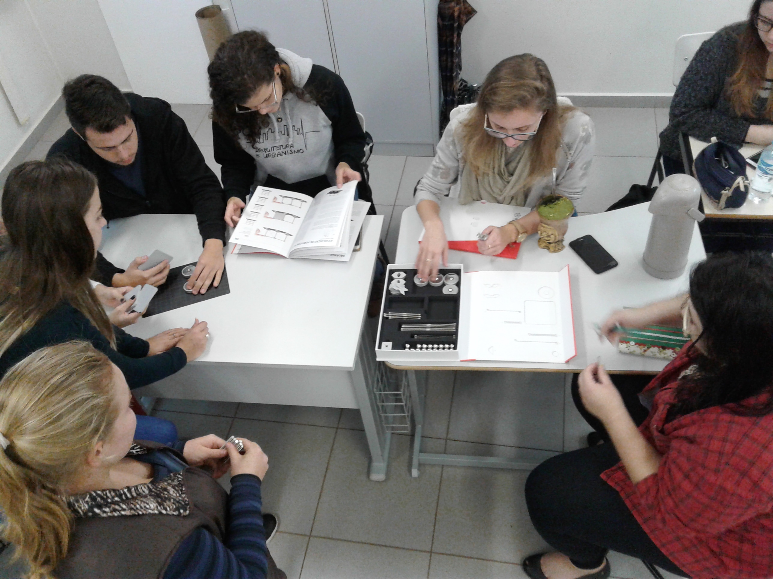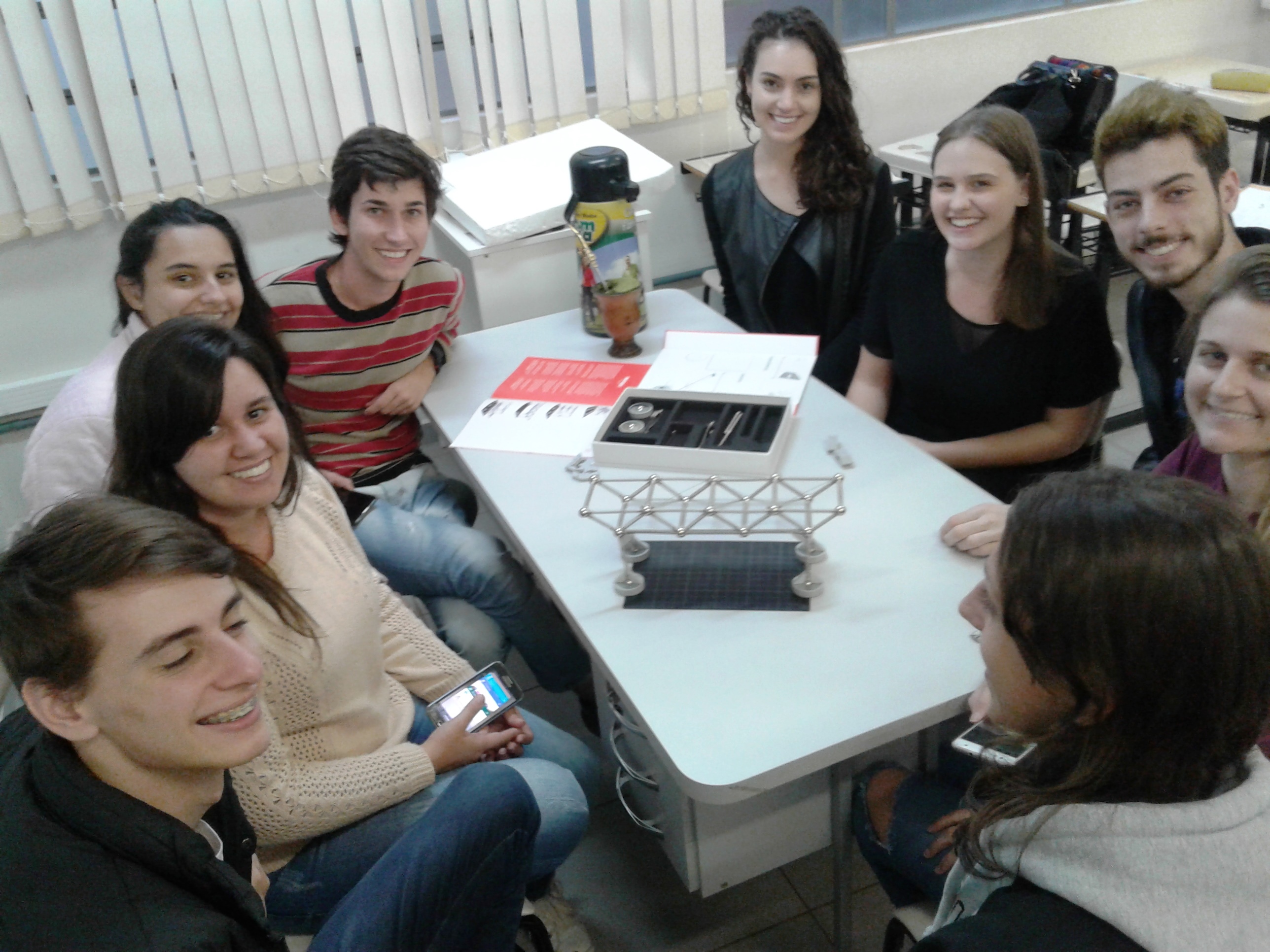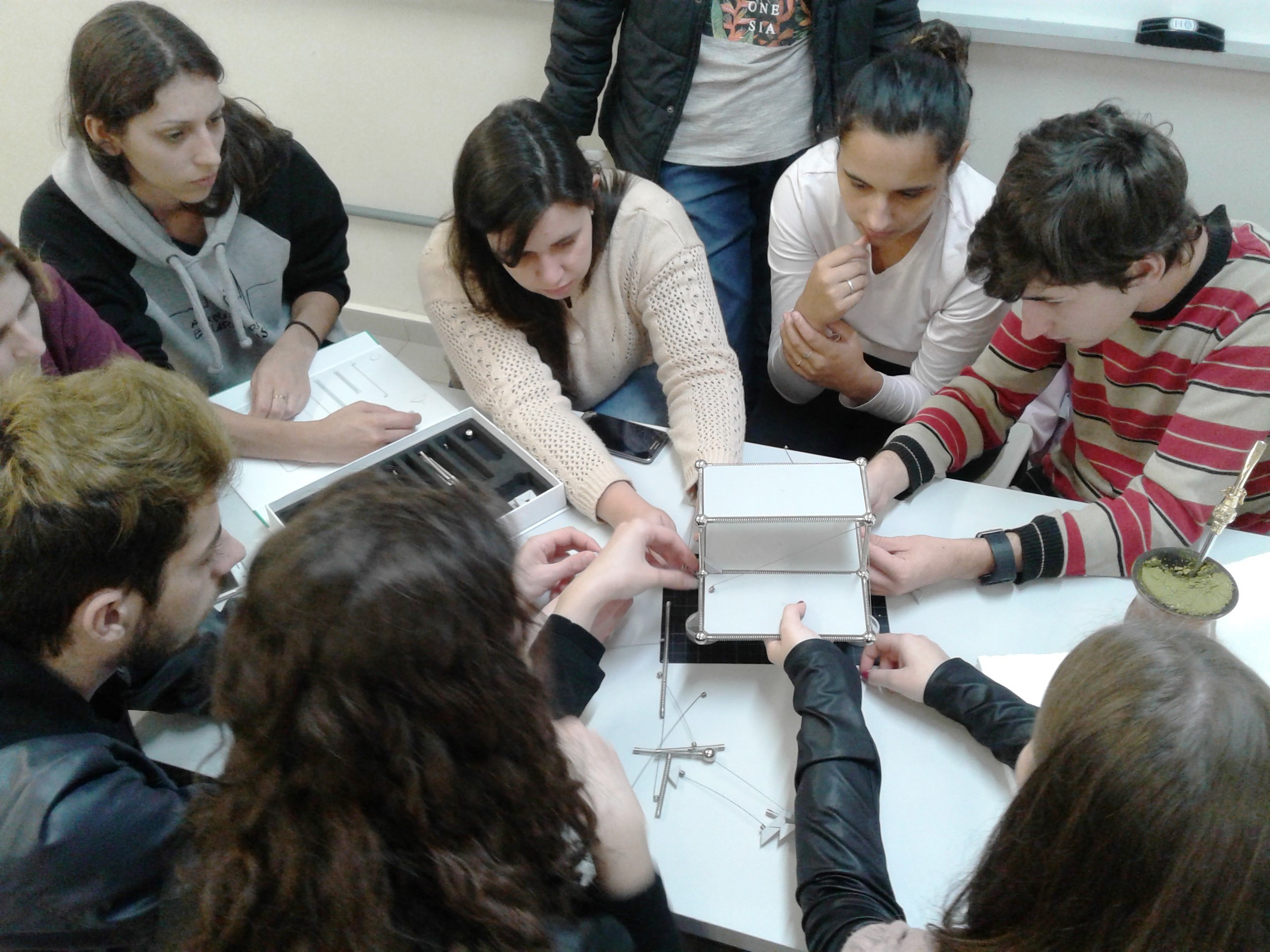 Na manhã de hoje (18), os acadêmicos do bacharelado em Arquitetura e Urbanismo (ARQ T2) puderam aprimorar seus conhecimentos no estudo de estruturas através da experimentação do Kit Mola 1 e 2. A experiência foi orientada pela professora Neidi Kunkel, na disciplina de Sistemas Estruturais IV. O objetivo da atividade foi estruturar uma edificação, fazendo uso do menor número possível de ligações e apoios. O kit mola é composto por molas, fios, ímãs, esferas e placas de aço que ajudam na visualização das construções ao simular o comportamento das estruturas das edificações. O kit utilizado hoje pelos alunos foi doado pelo Diretório Acadêmico do Curso de Arquitetura e Urbanismo.