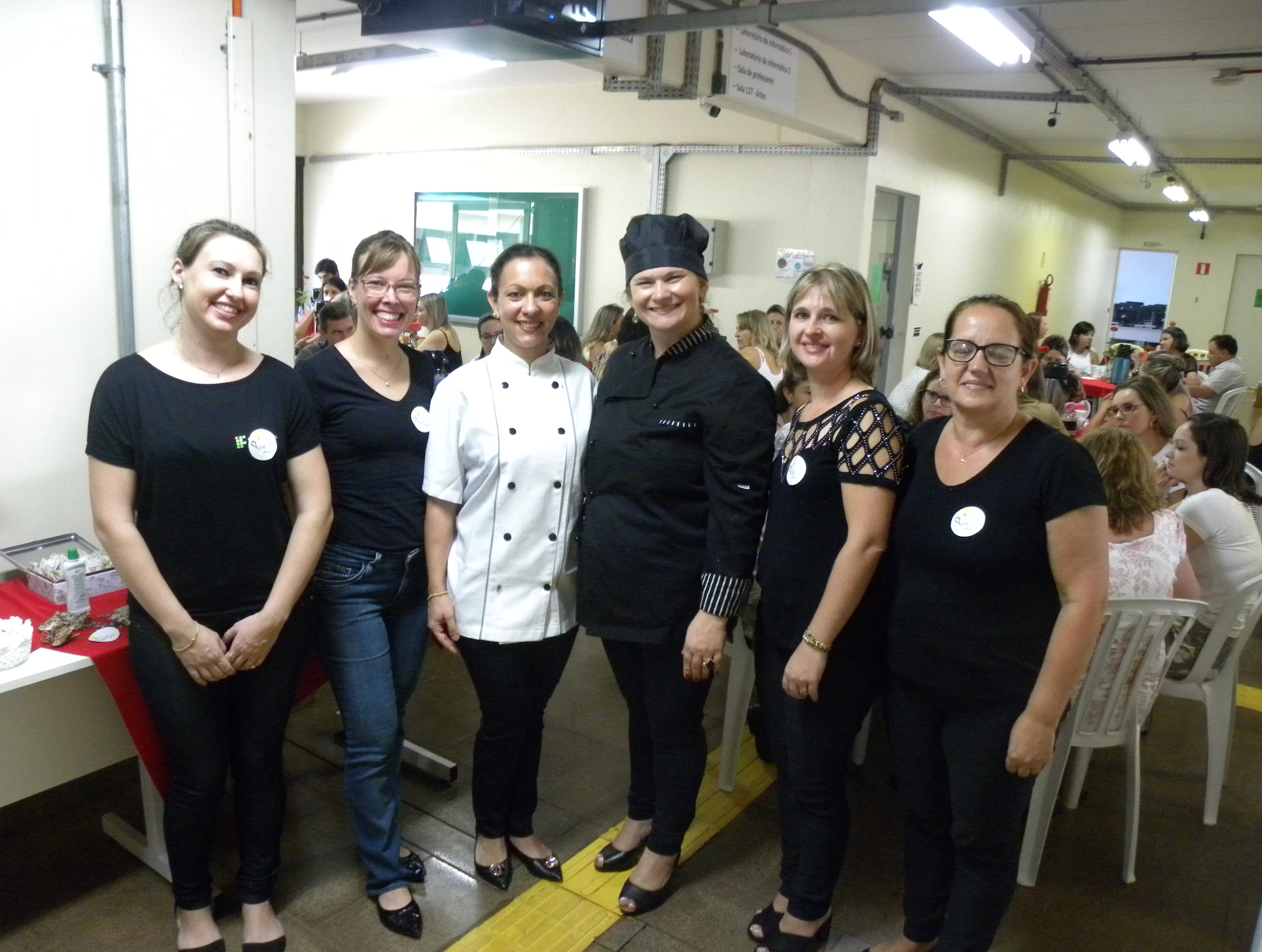 Na manhã da segunda-feira (11), a dinâmica realizada foi o “World Café”, uma técnica utilizada com o objetivo de potencializar diálogos e viabilizar a construção coletiva de proposições em torno do tema Ensino Médio Integrado. Para isso, uma cafeteria fictícia foi montada no corredor do prédio Pedagógico 1, tendo a diretora de Ensino, Analice Marchezan, e a coordenadora de Ensino, Raquel Ghellar Canova, caracterizadas como chefes de cozinha.