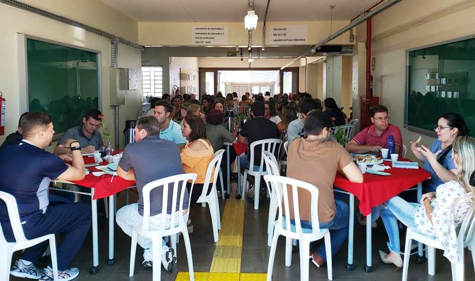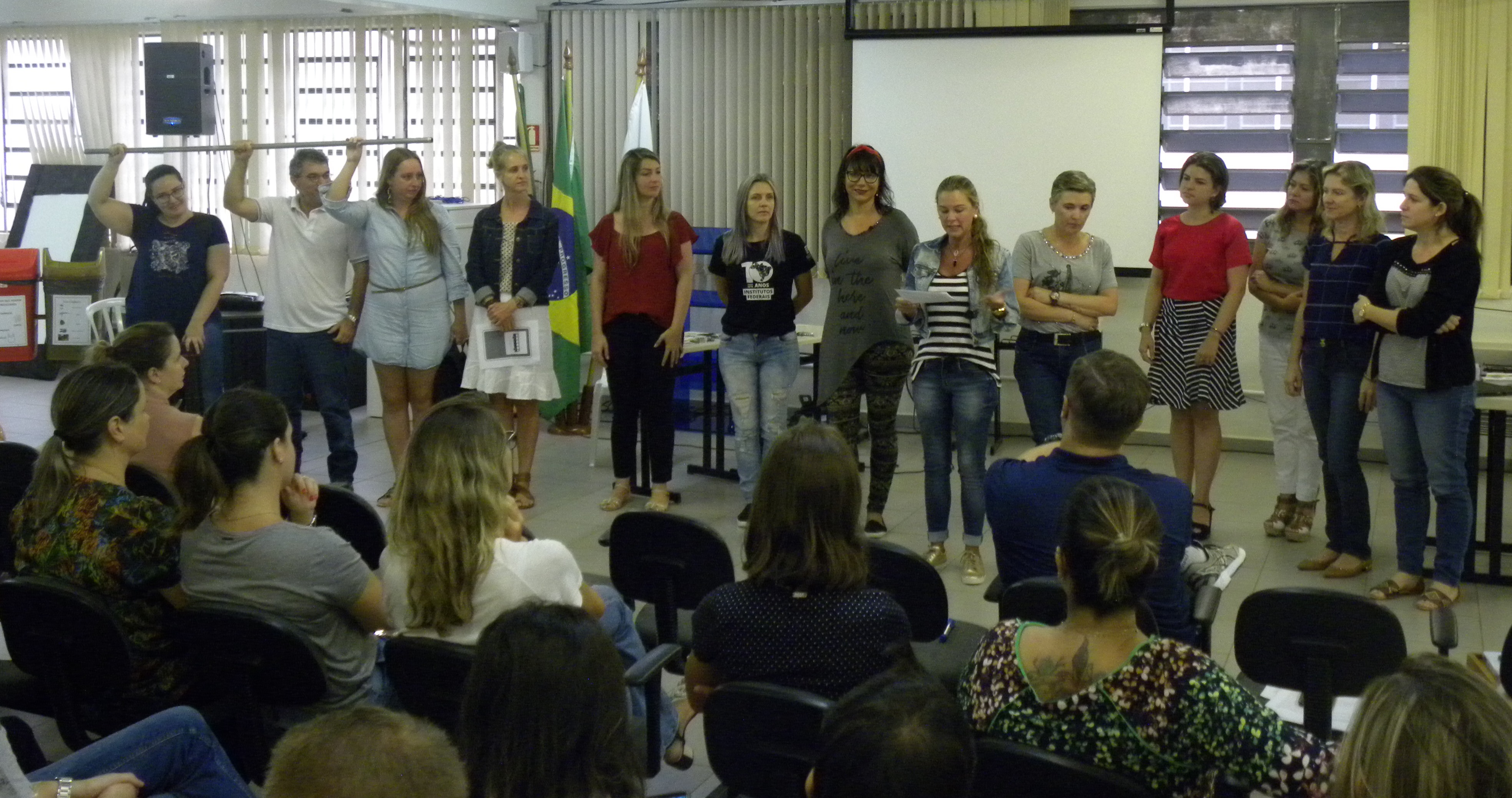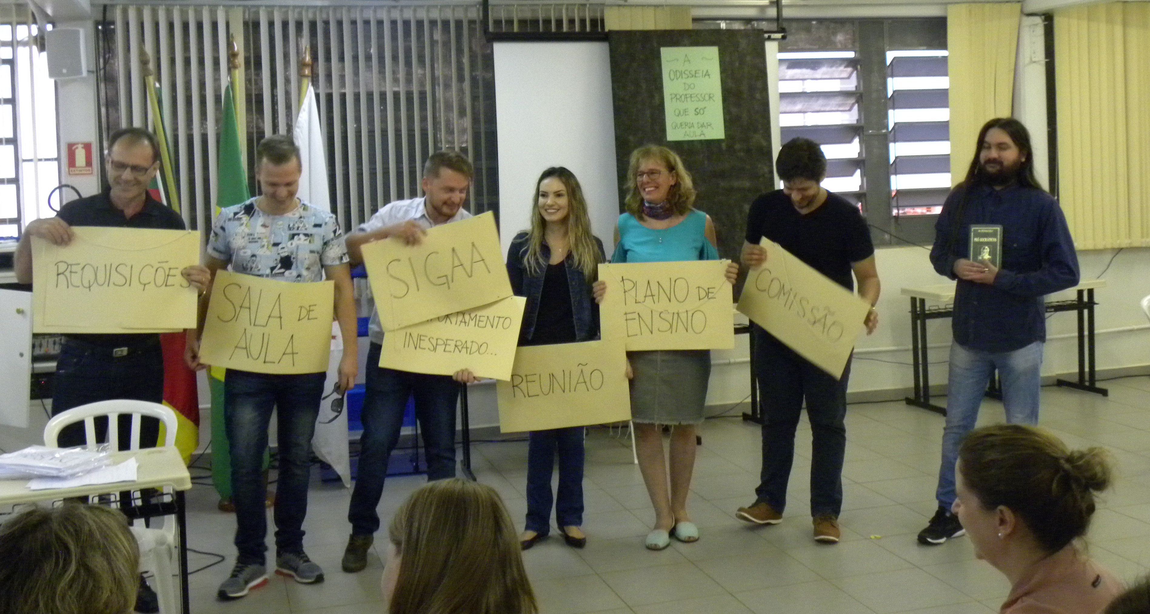 Na parte da tarde, foi realizada reunião geral de acolhida com todos os servidores. Após, o professor Marcelo Eder Lamb formou grupos com os docentes e iniciou uma atividade teatral, na qual os participantes teriam que desenvolver uma encenação a partir de textos com temática pedagógica. “É preciso que haja uma interação, para o reconhecimento de que a troca de saberes entre os próprios colegas é riquíssima e que as confrontações que possam surgir servirão de experiências e de crescimento profissional”, disse a diretora Analice.