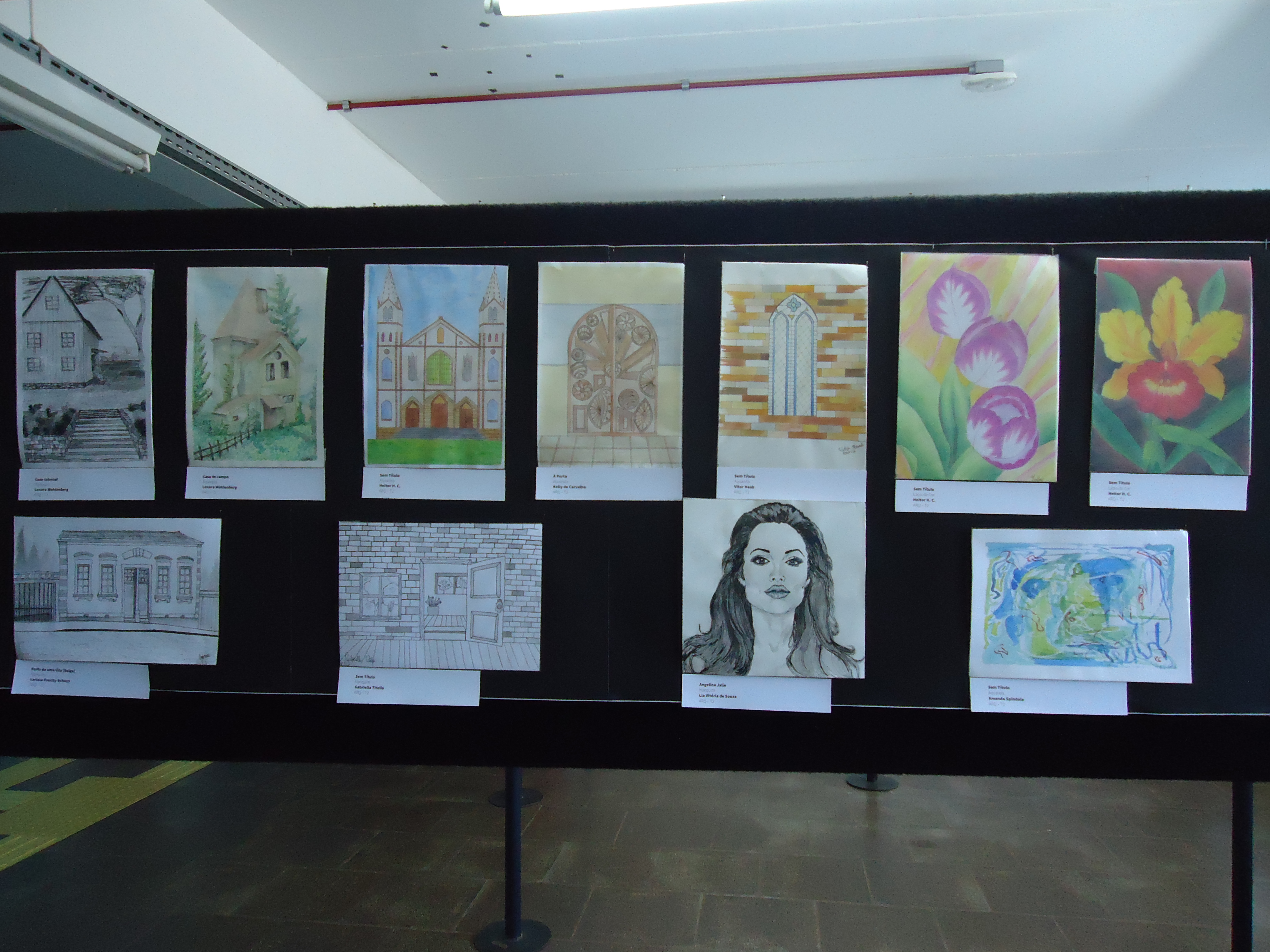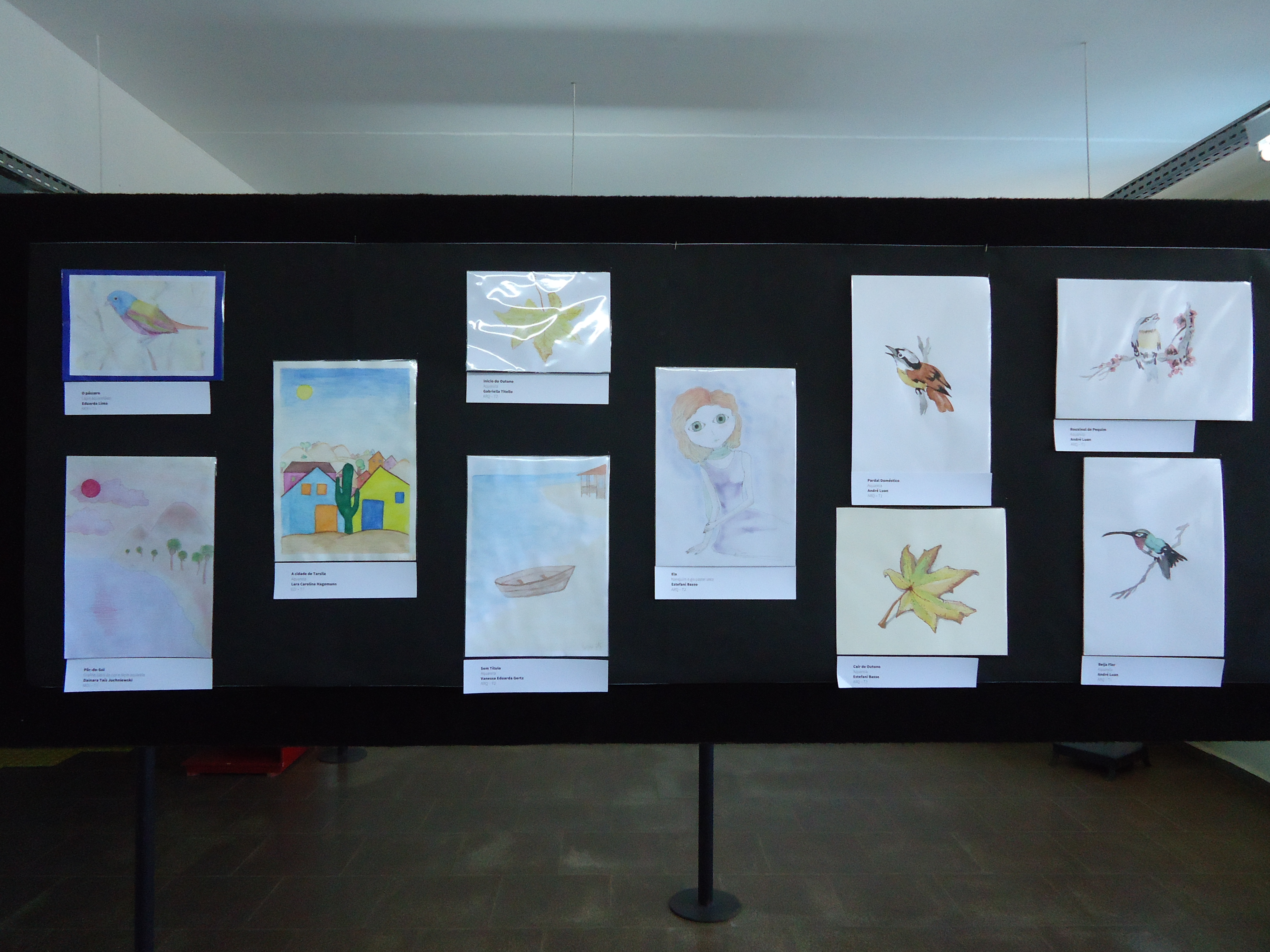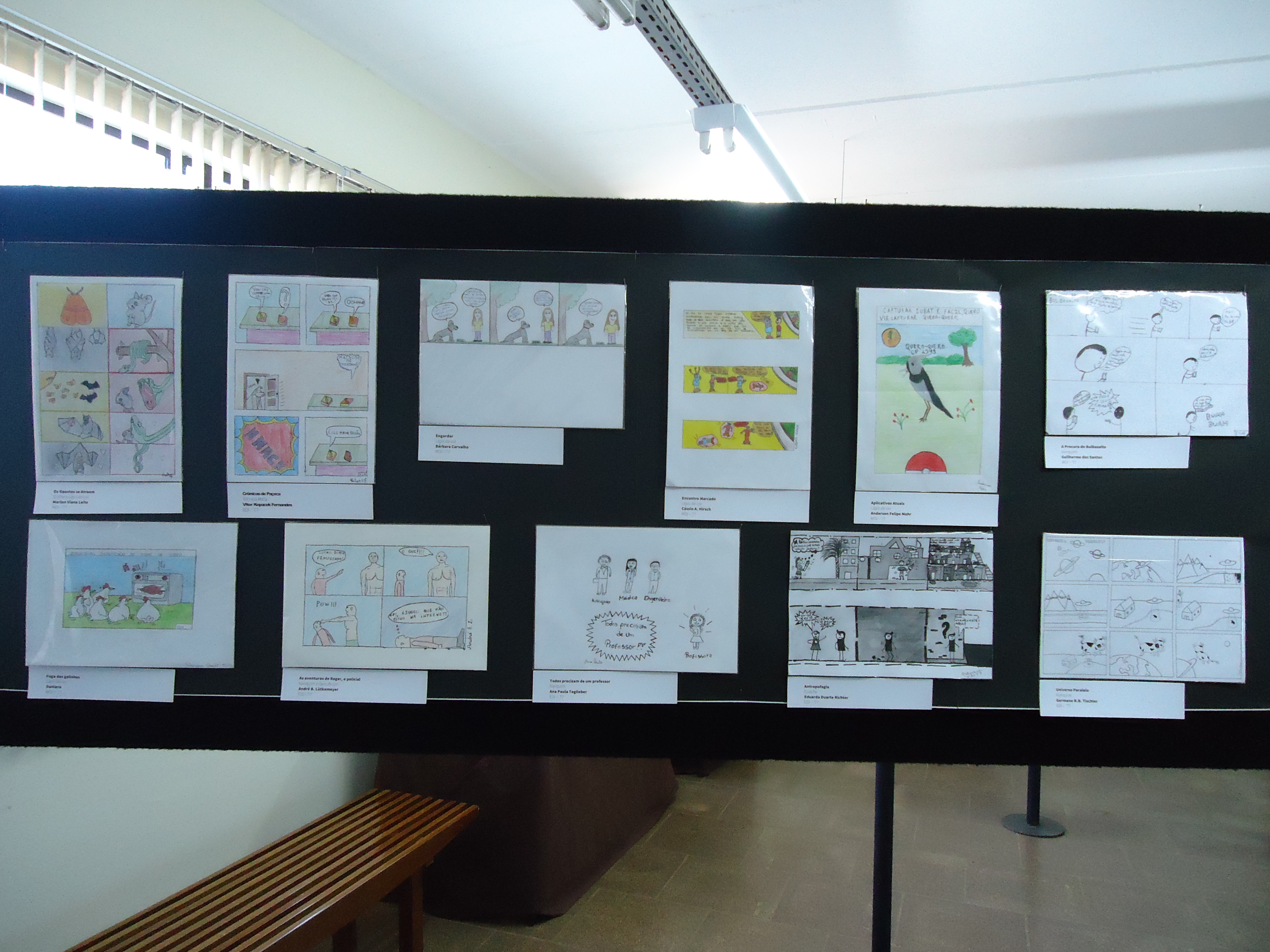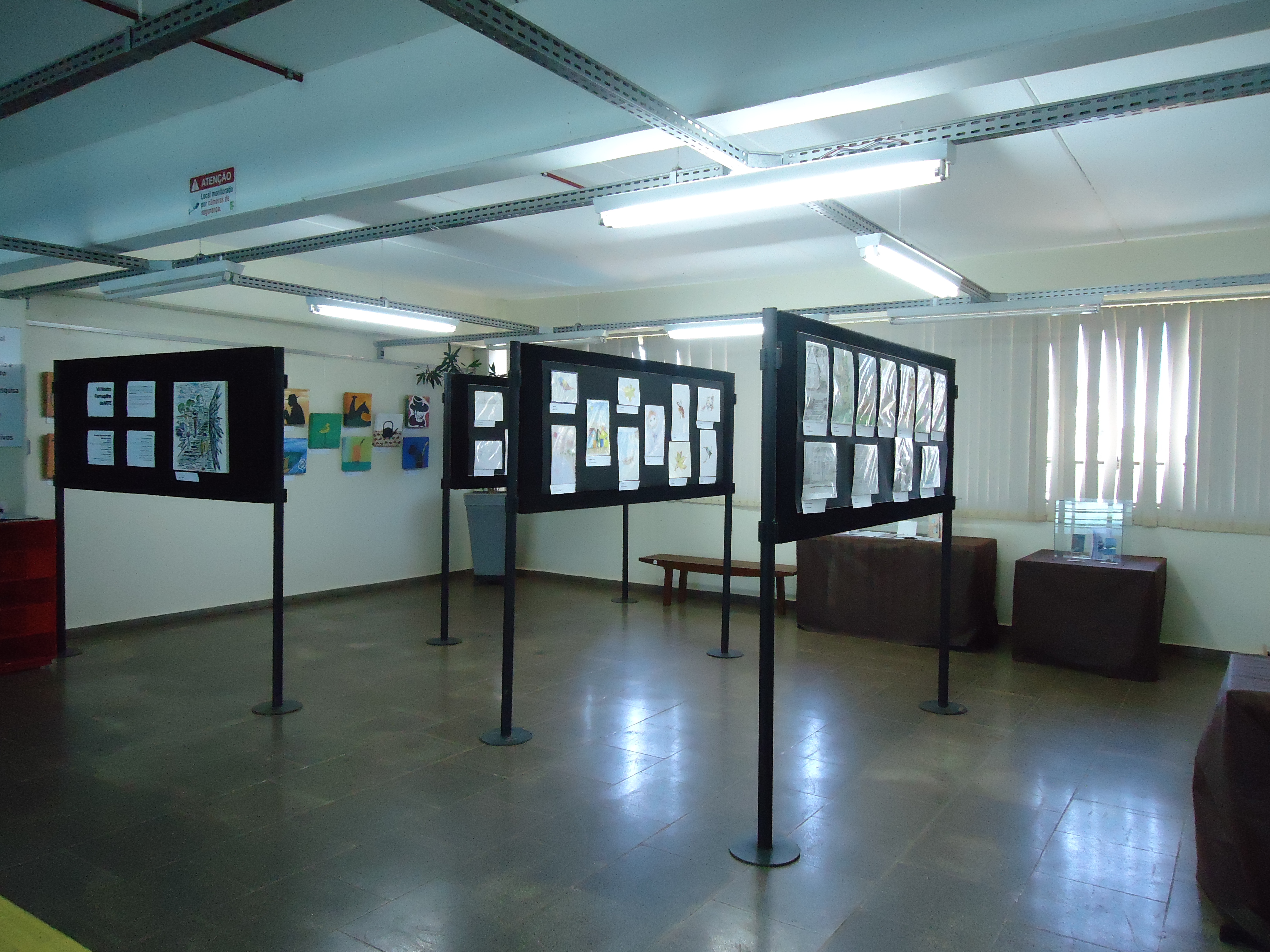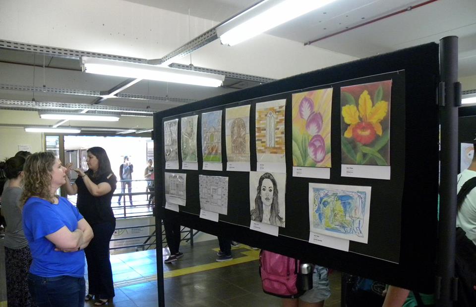 A exposição dos trabalhos foi montada no saguão do prédio F, e no corredor que dá acesso ao prédio H, e contou com a ajuda do auxiliar, João Rosmann.