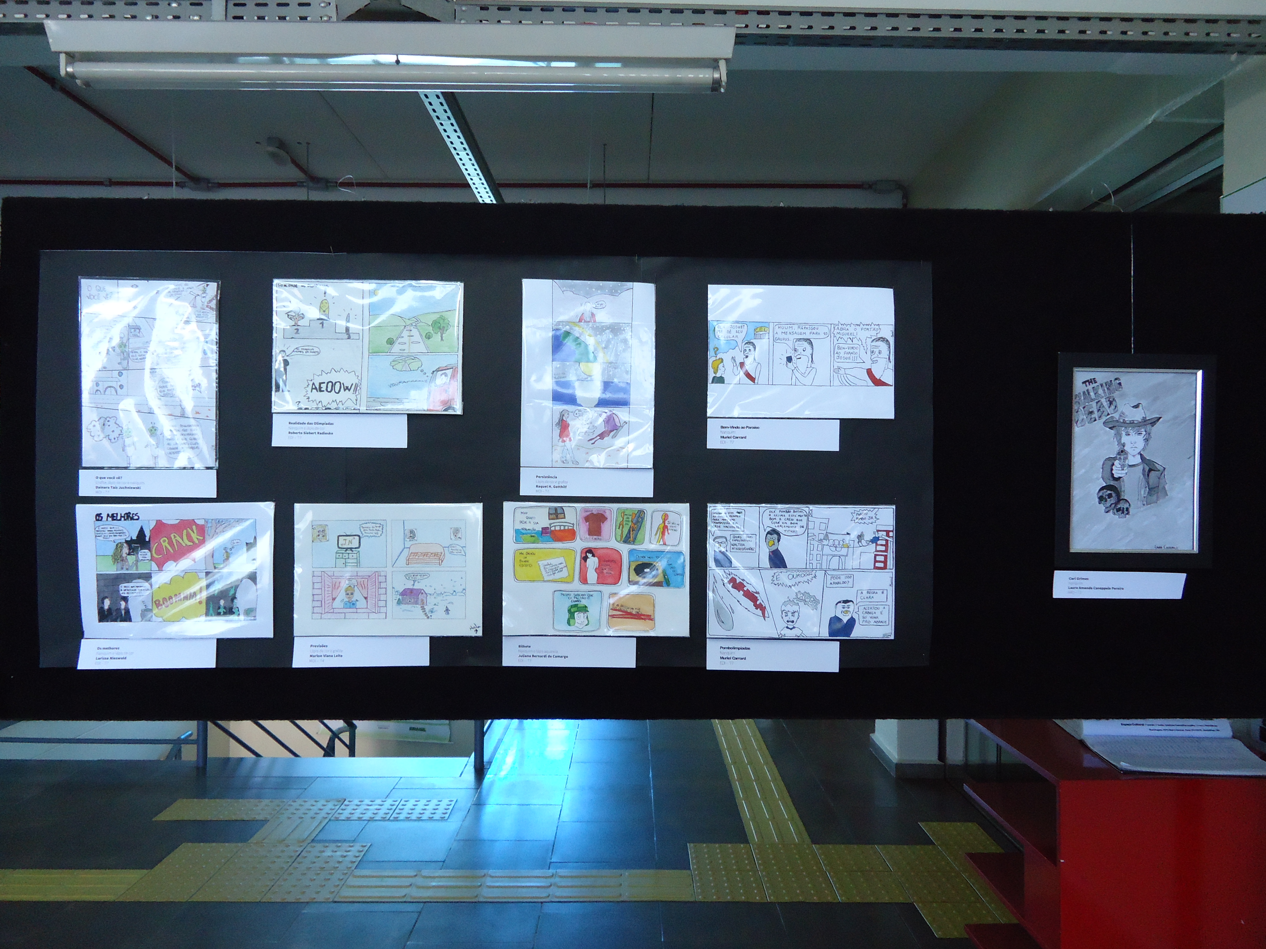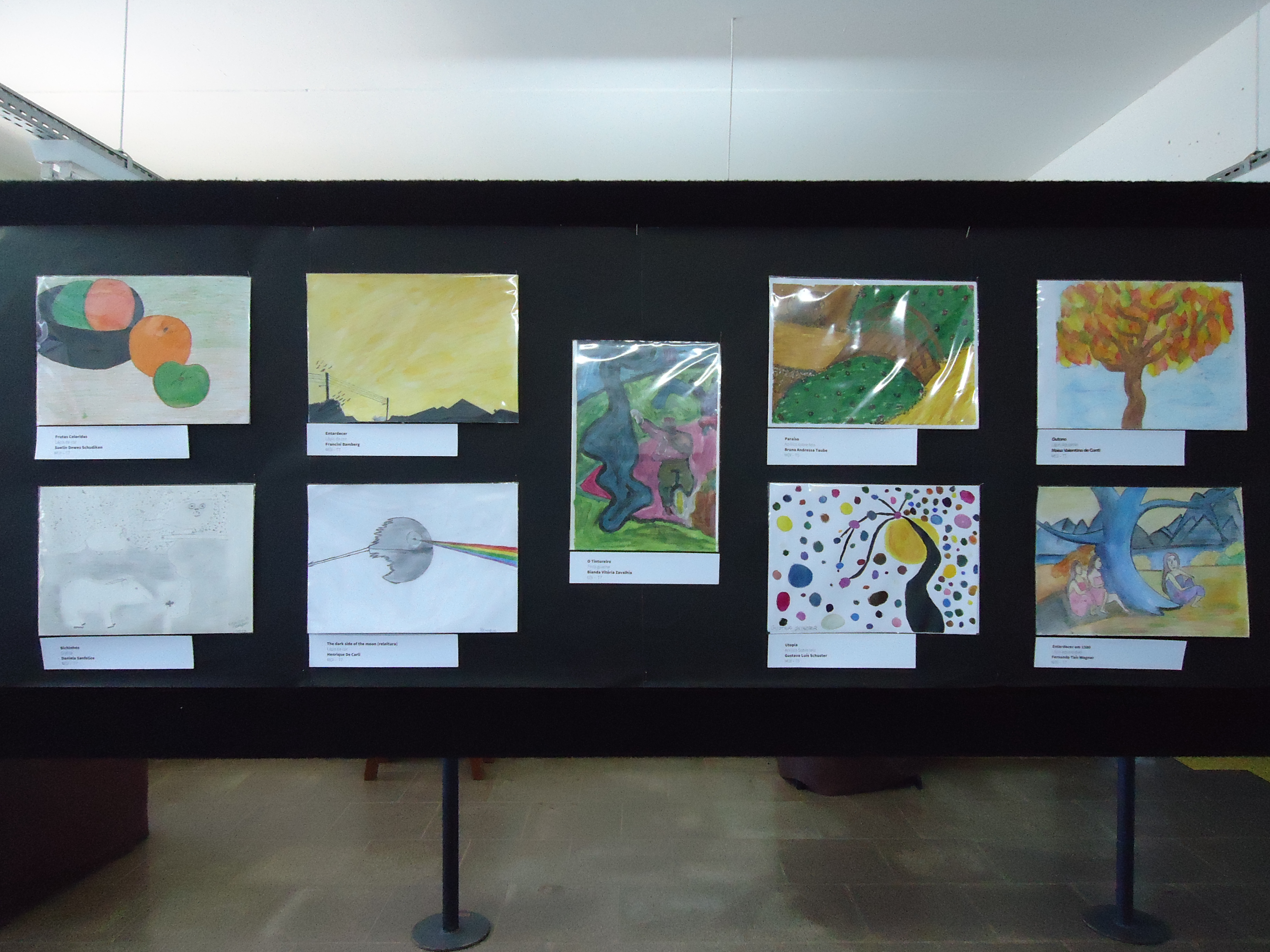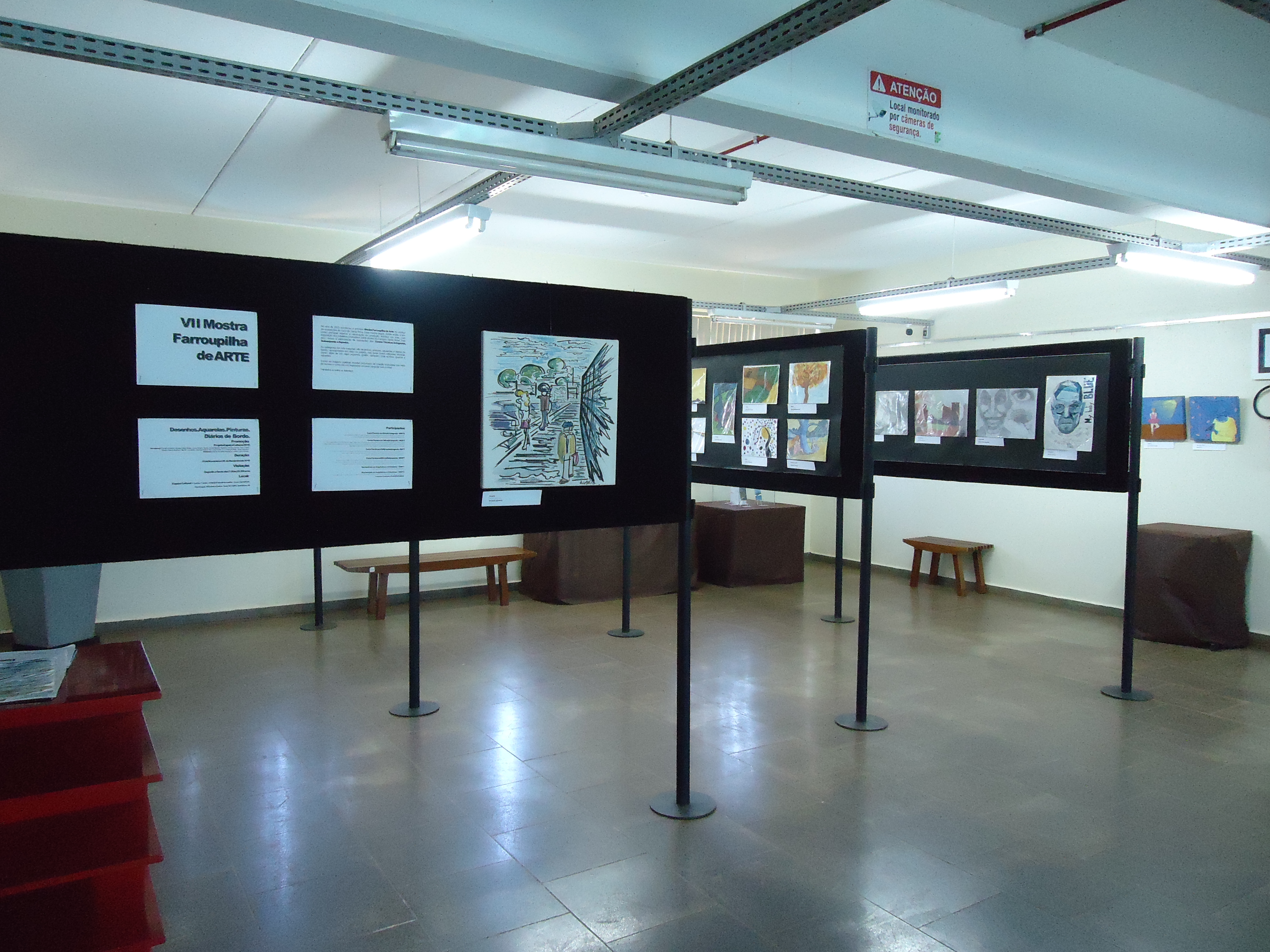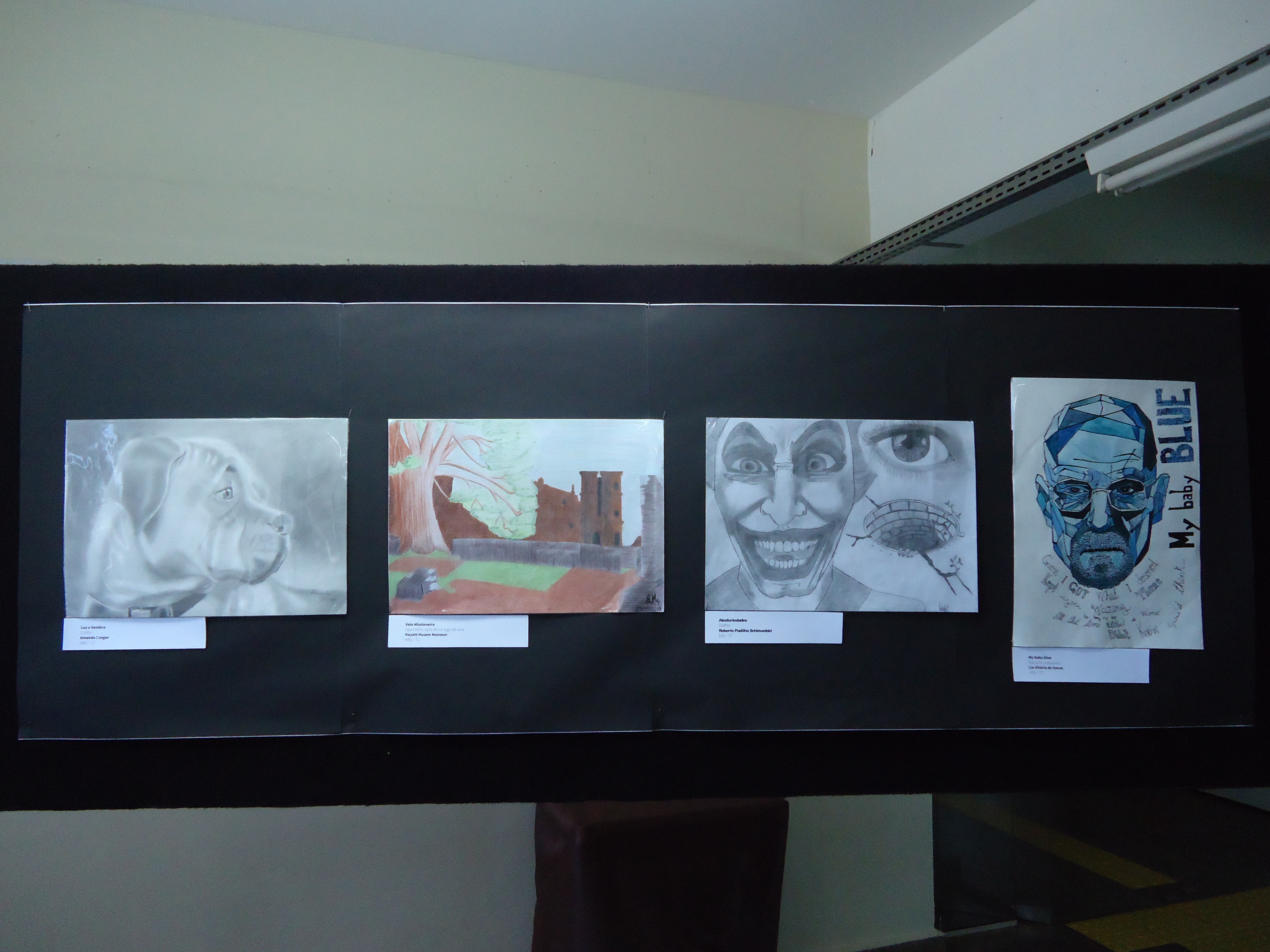 A exposição dos trabalhos foi montada no saguão do prédio F, e no corredor que dá acesso ao prédio H, e contou com a ajuda do auxiliar, João Rosmann.