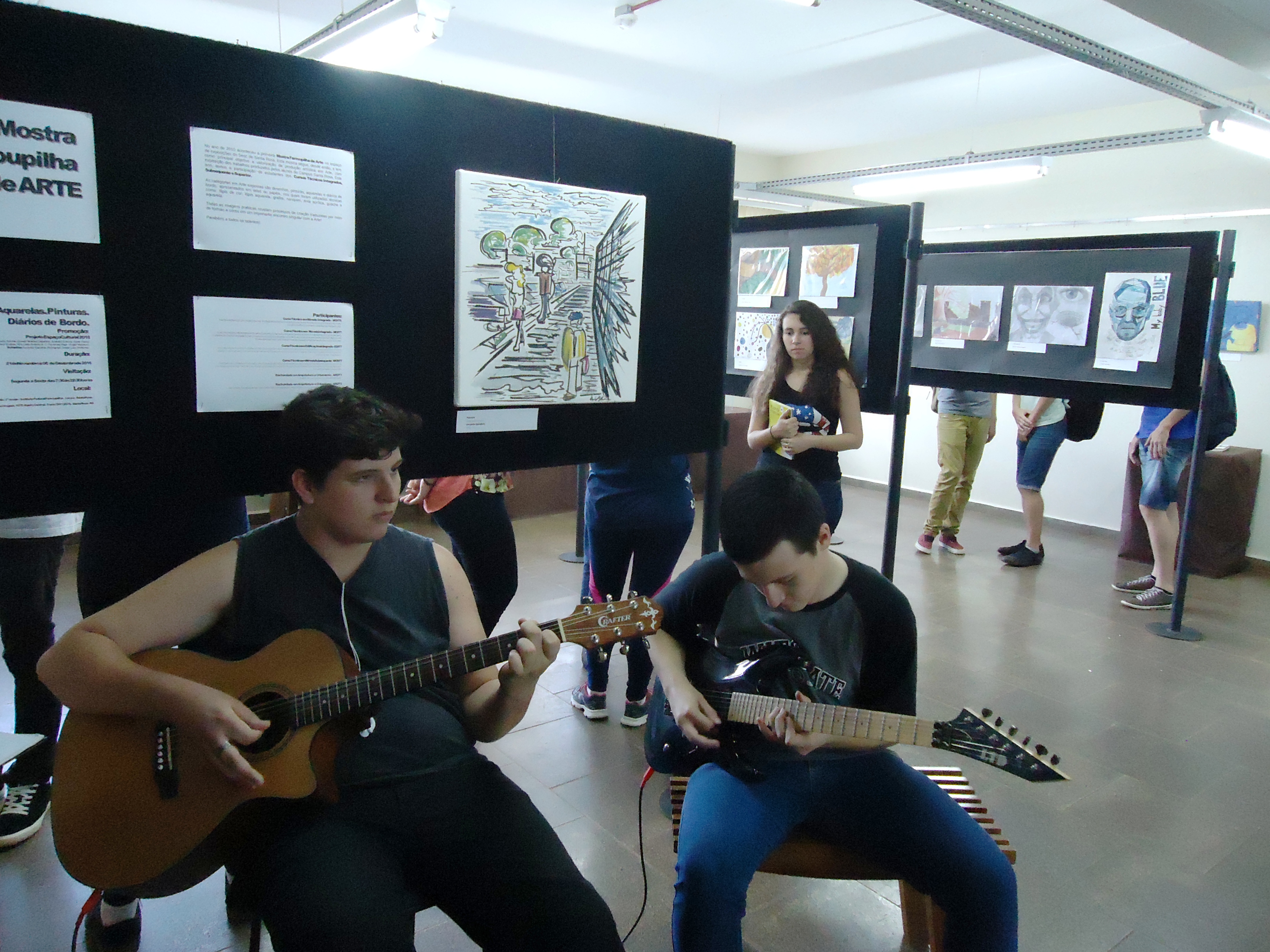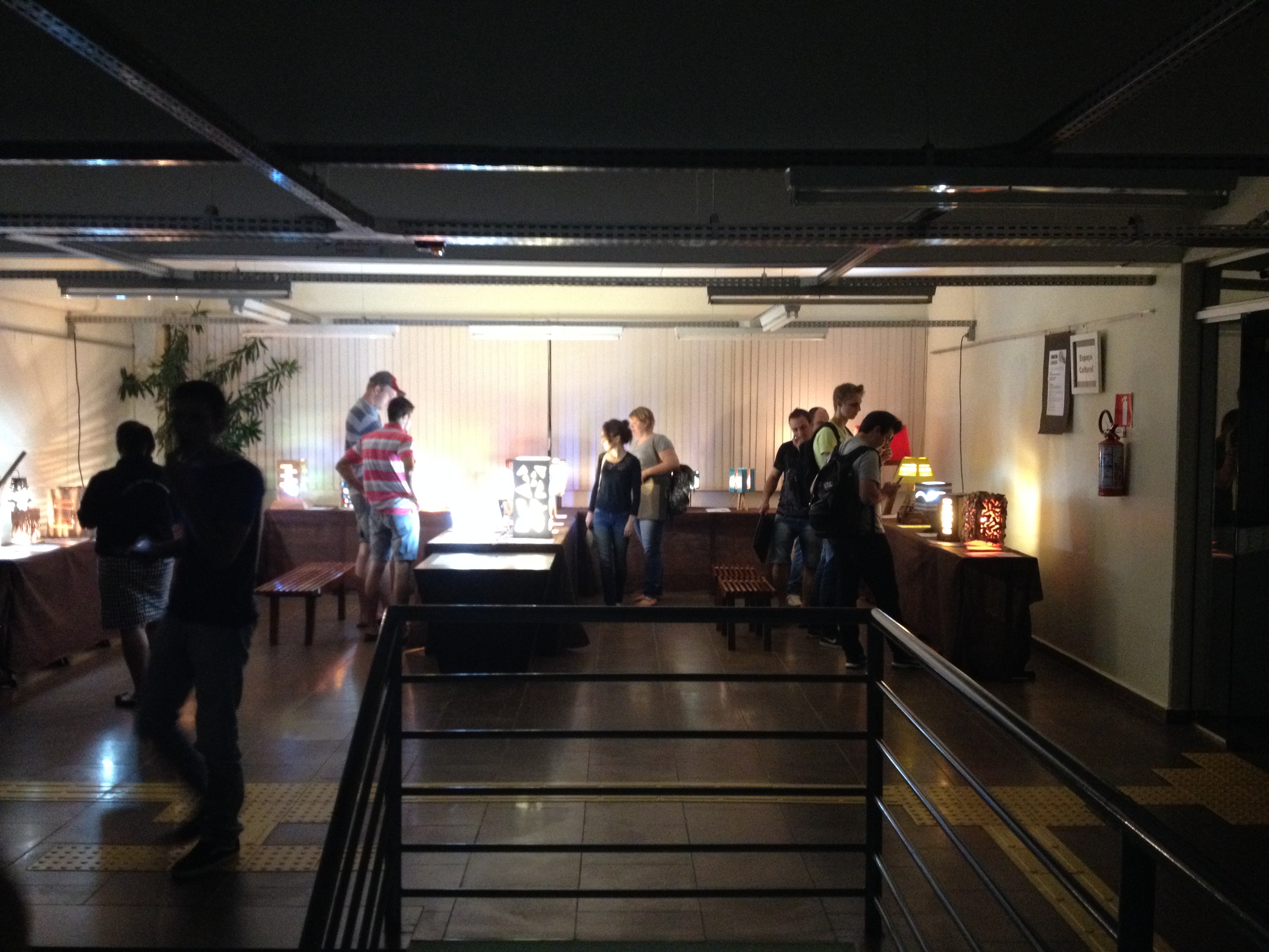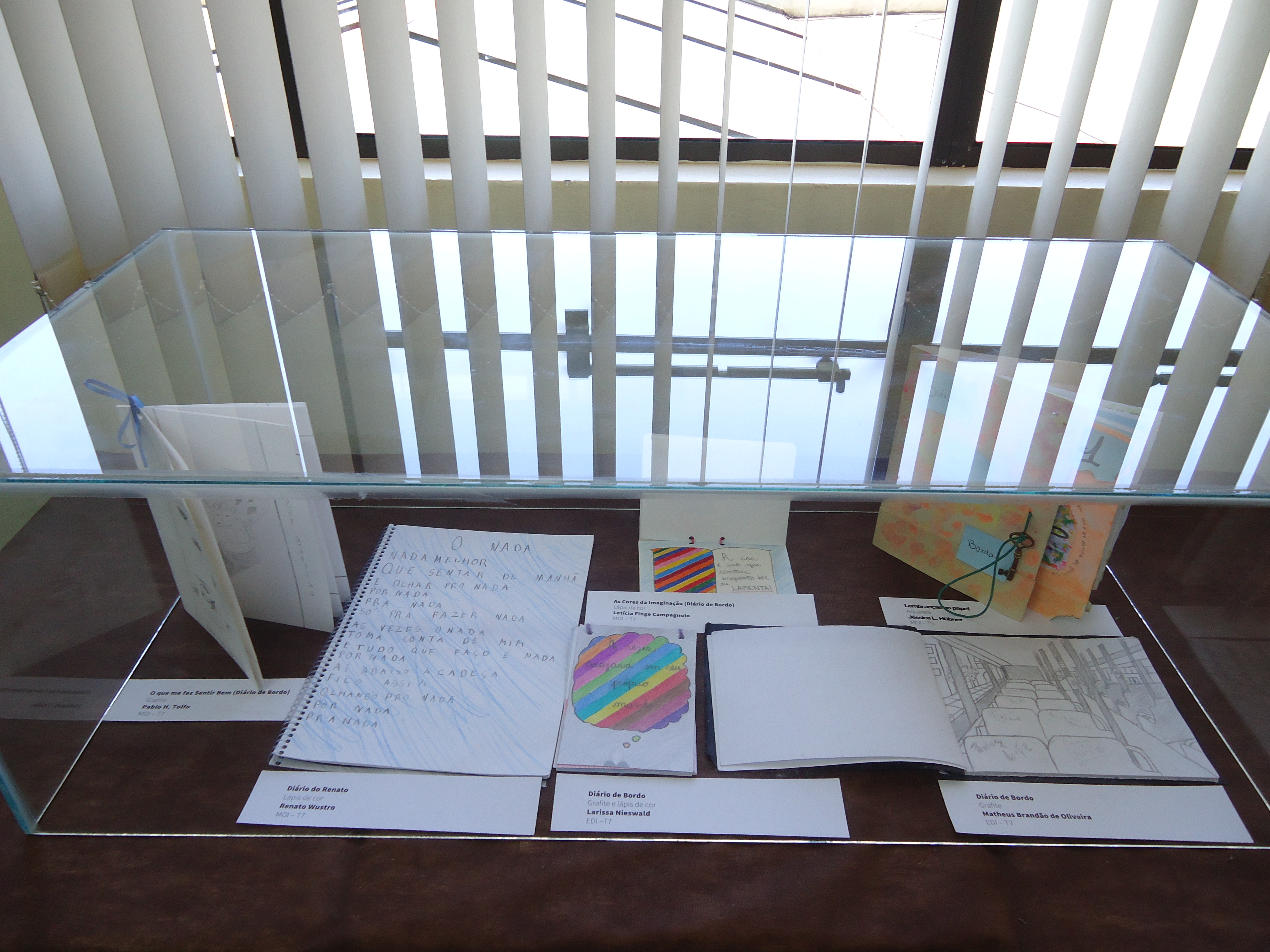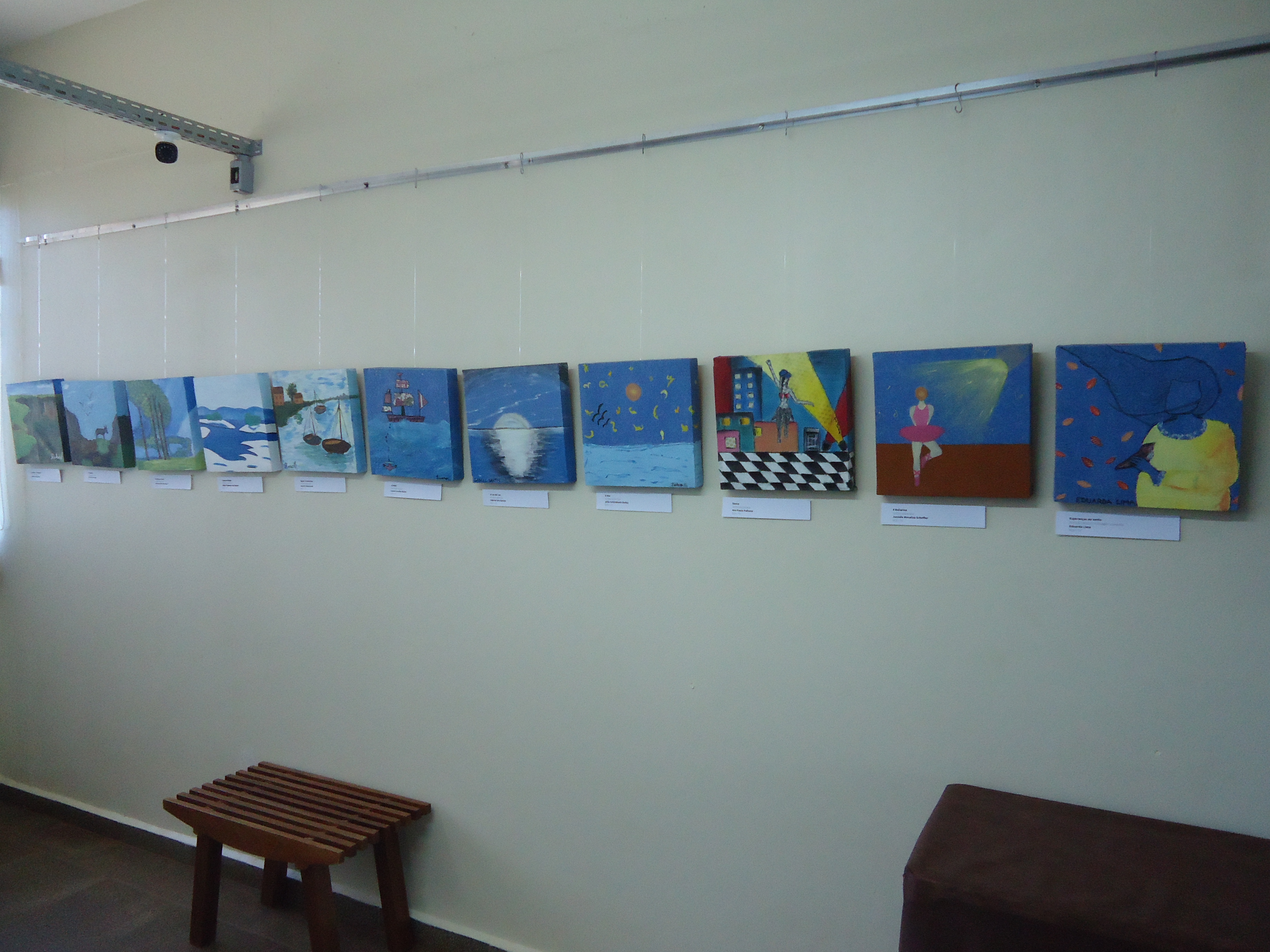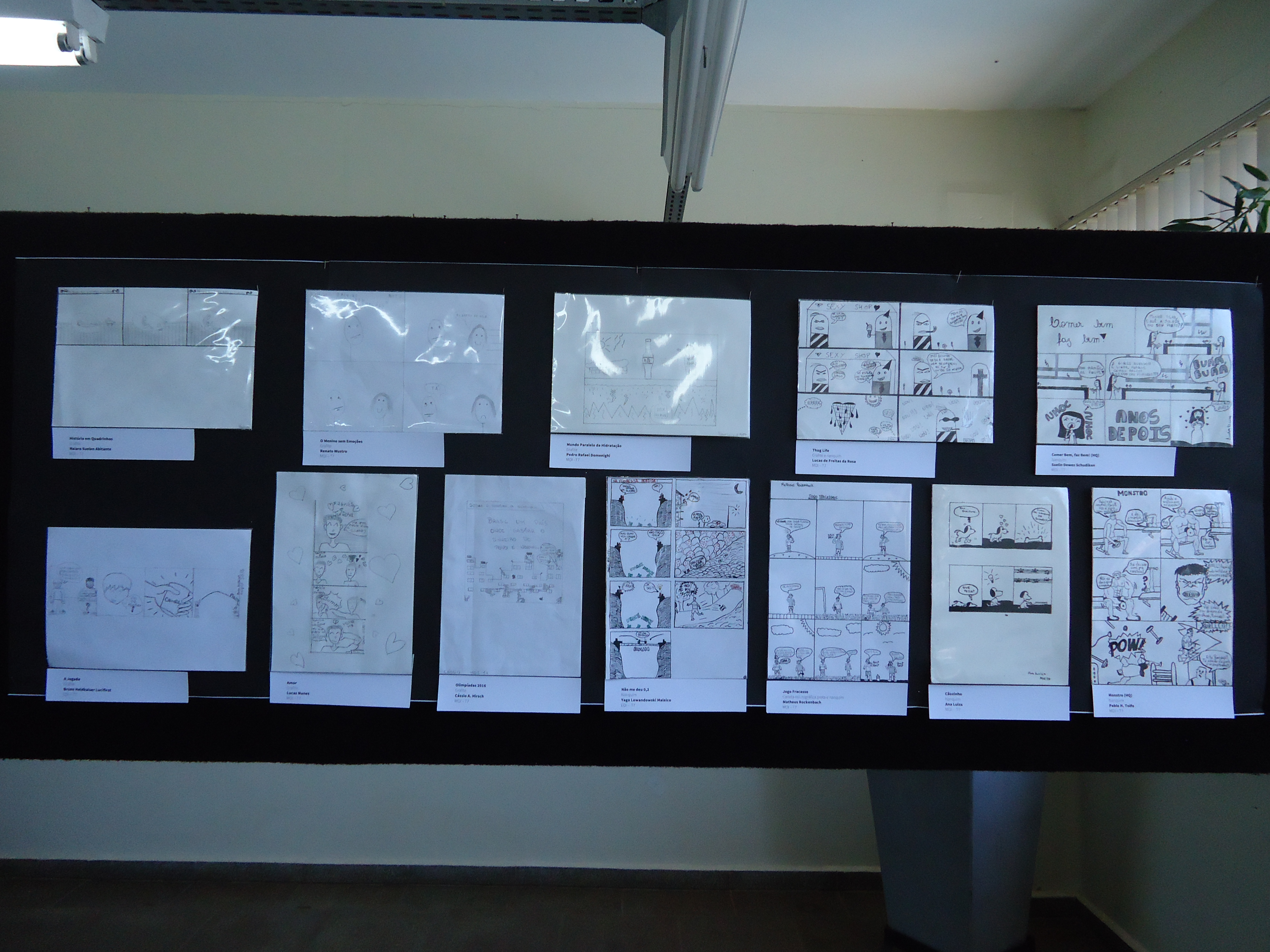 A exposição dos trabalhos foi montada no saguão do prédio F, e no corredor que dá acesso ao prédio H, e contou com a ajuda do auxiliar, João Rosmann.