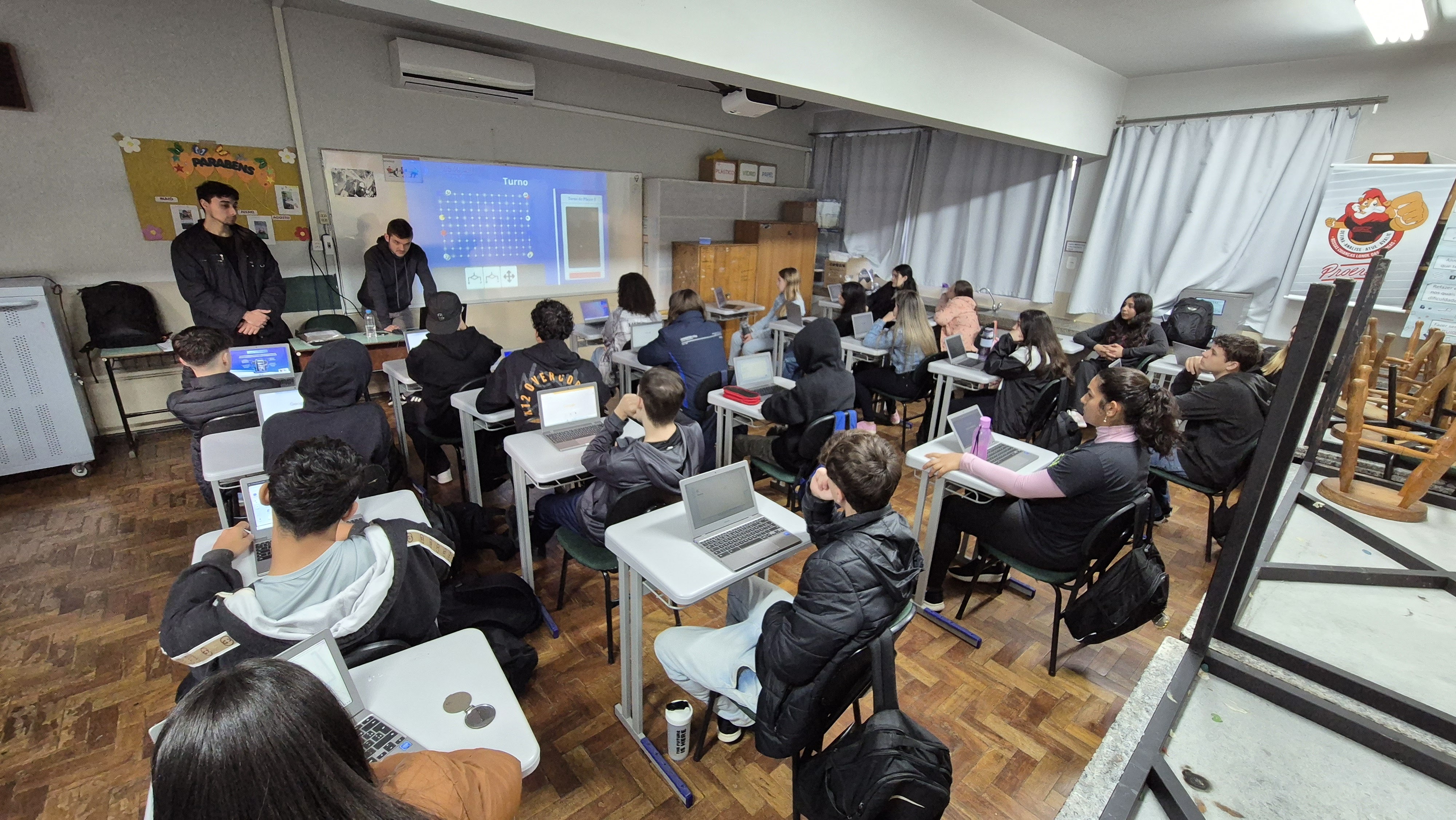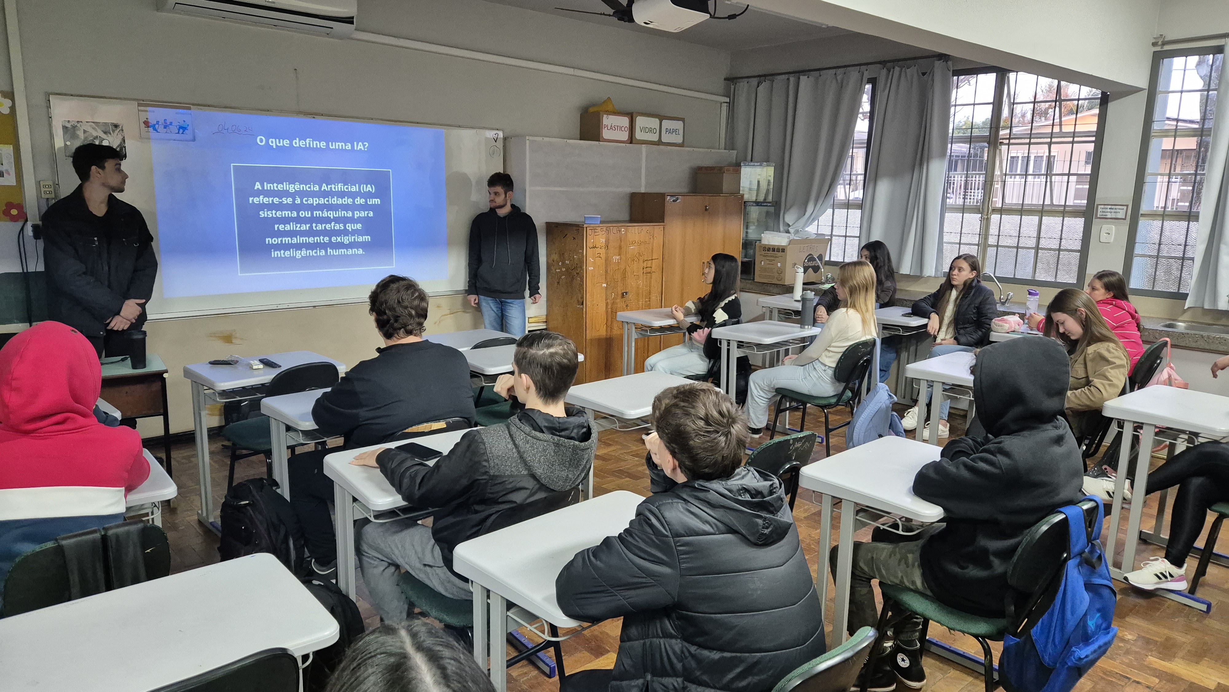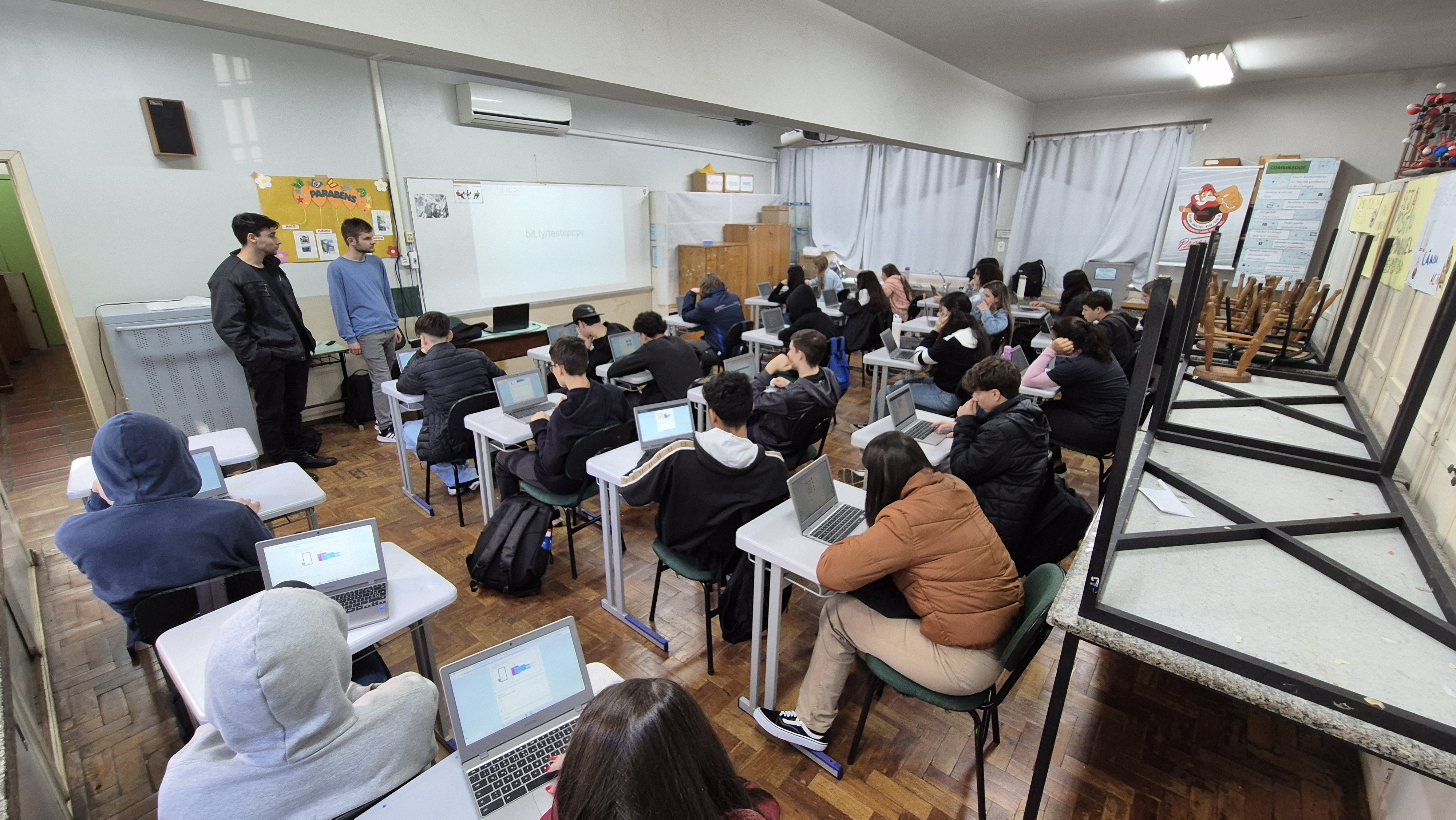 Estamos muito orgulhosos de anunciar que os bolsistas Douglas Erdmann e Gustavo Graffunder e o professor Christian Brackmann, do Instituto Federal Farroupilha (IFFar), estão levando seus conhecimentos de Inteligência Artificial para os alunos do primeiro ano do Colégio Poncho Verde!