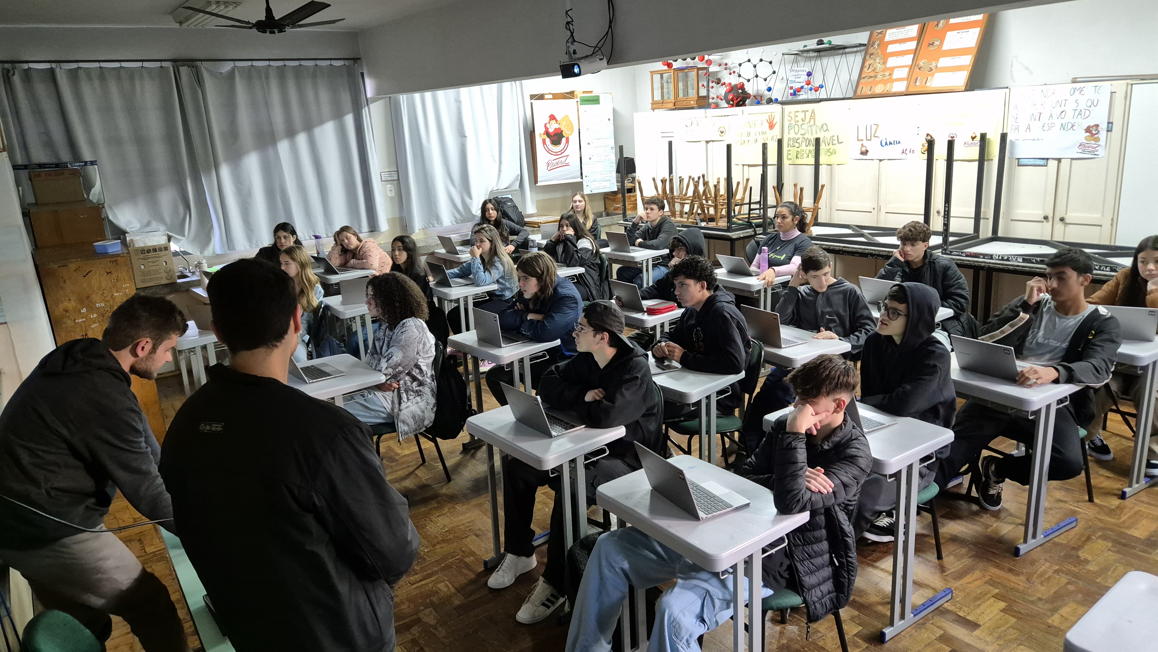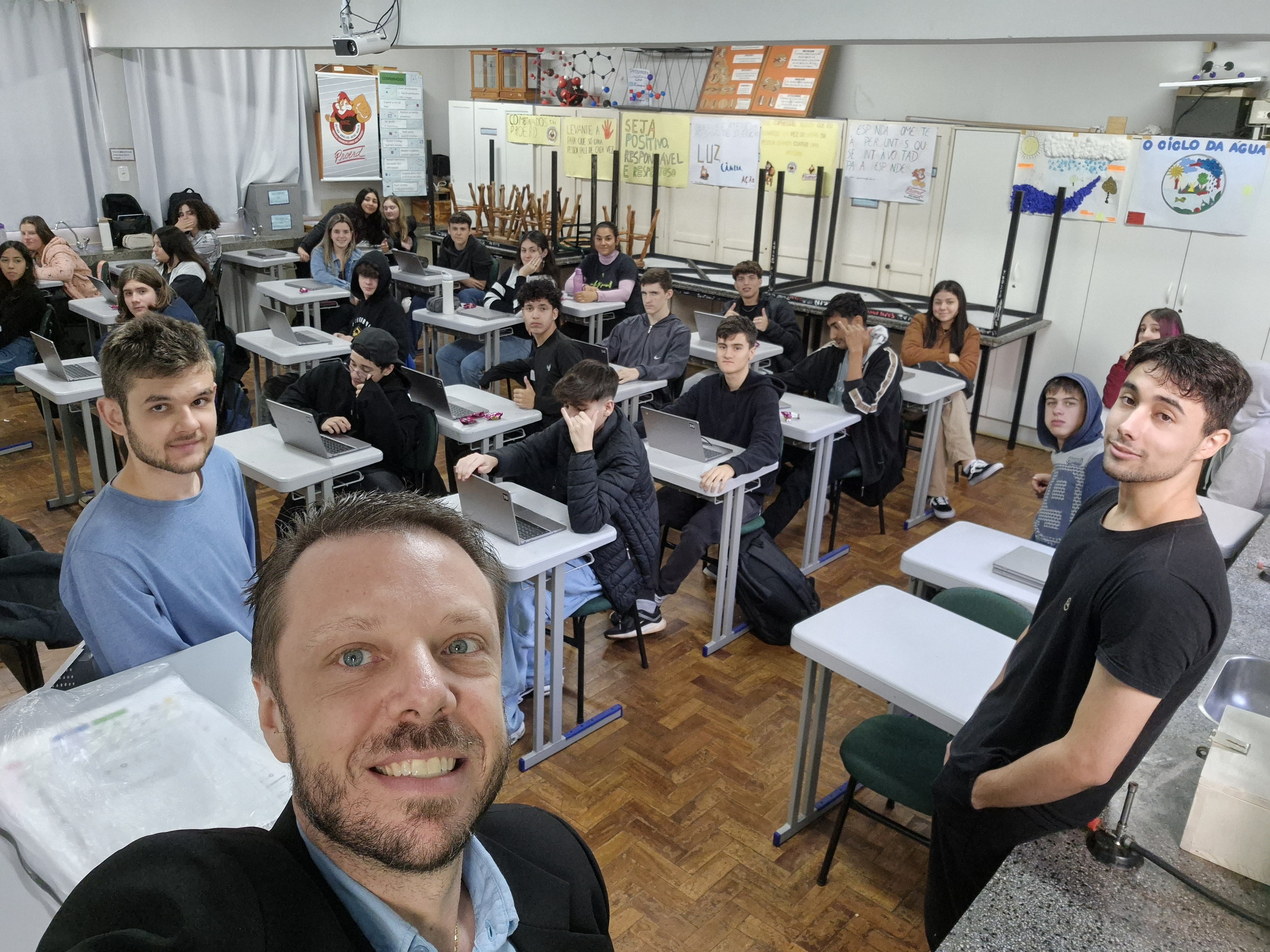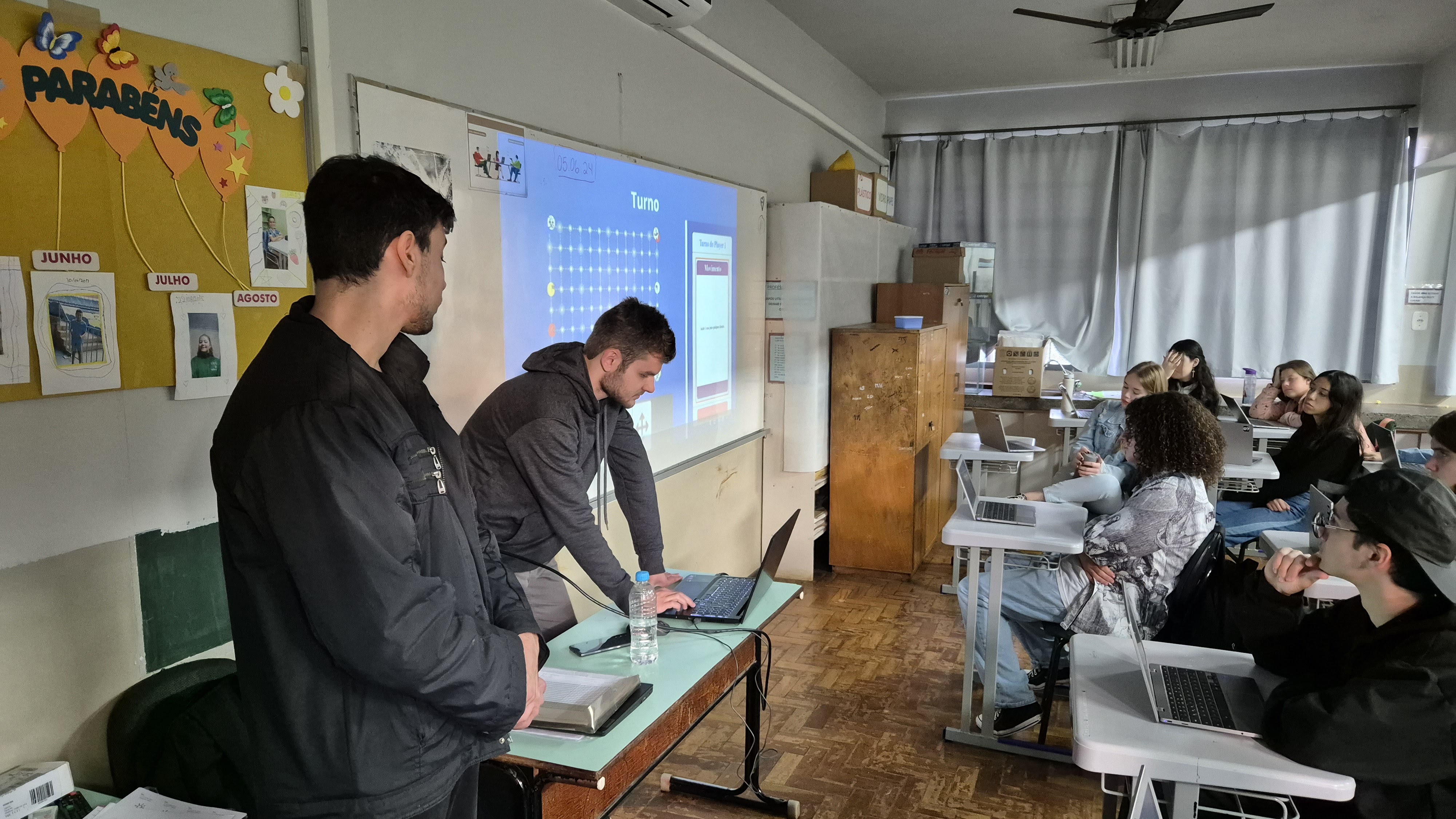 Estamos muito orgulhosos de anunciar que os bolsistas Douglas Erdmann e Gustavo Graffunder e o professor Christian Brackmann, do Instituto Federal Farroupilha (IFFar), estão levando seus conhecimentos de Inteligência Artificial para os alunos do primeiro ano do Colégio Poncho Verde!