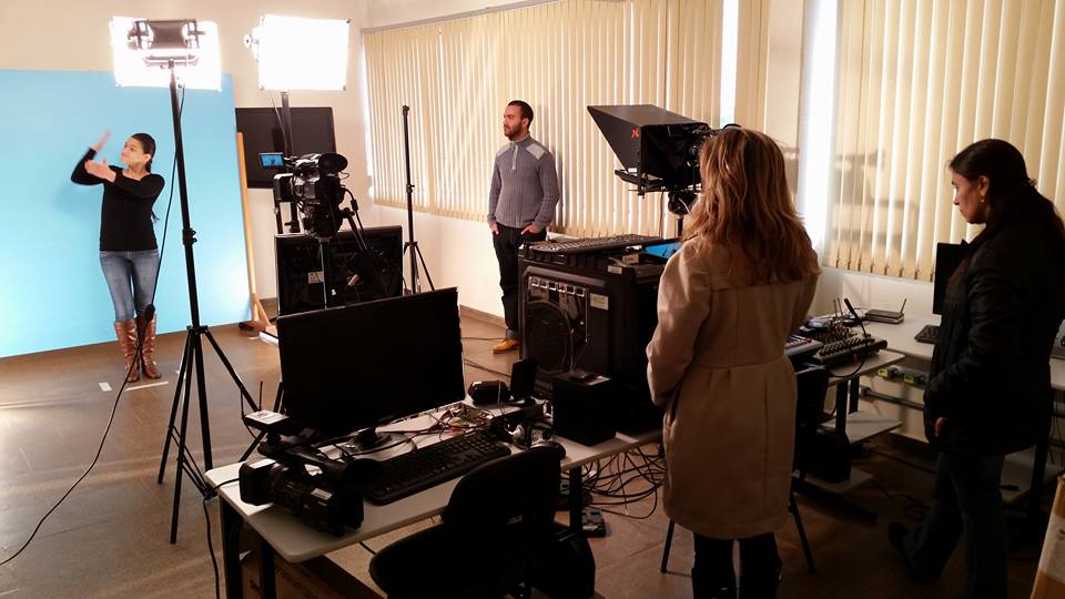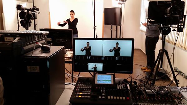 Na sexta-feira (24), a equipe da WebTV do IF Farroupilha esteve no Campus Santa Rosa para a gravação dos hinos nacionais e rio-grandense na Língua Brasileira de Sinais (LIBRAS). A interpretação foi realizada por Bruna Taube, aluna do curso Técnico em Móveis que possui deficiência auditiva. A professora de LIBRAS, Cátia Schemm, e a intérprete de sinais, Juliane Oberoffer, auxiliaram nas filmagens captadas pelos servidores Fabrício Pereira Colvero e Adriano Lima.