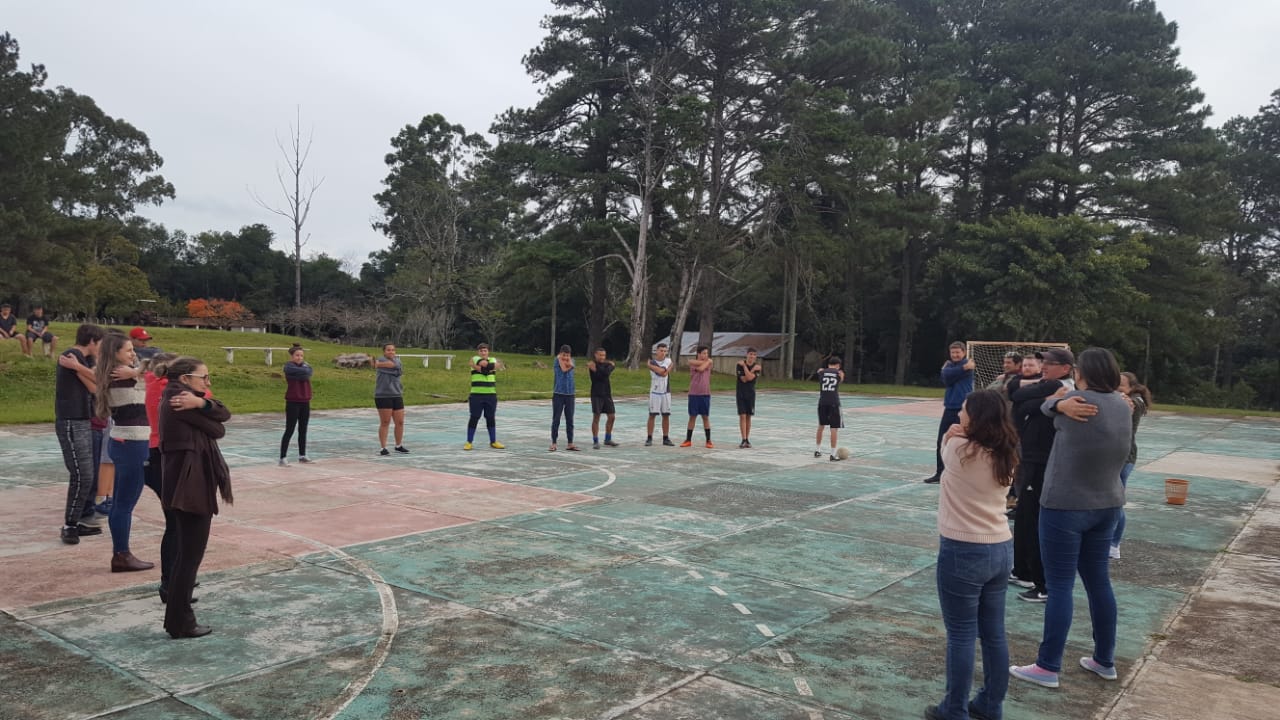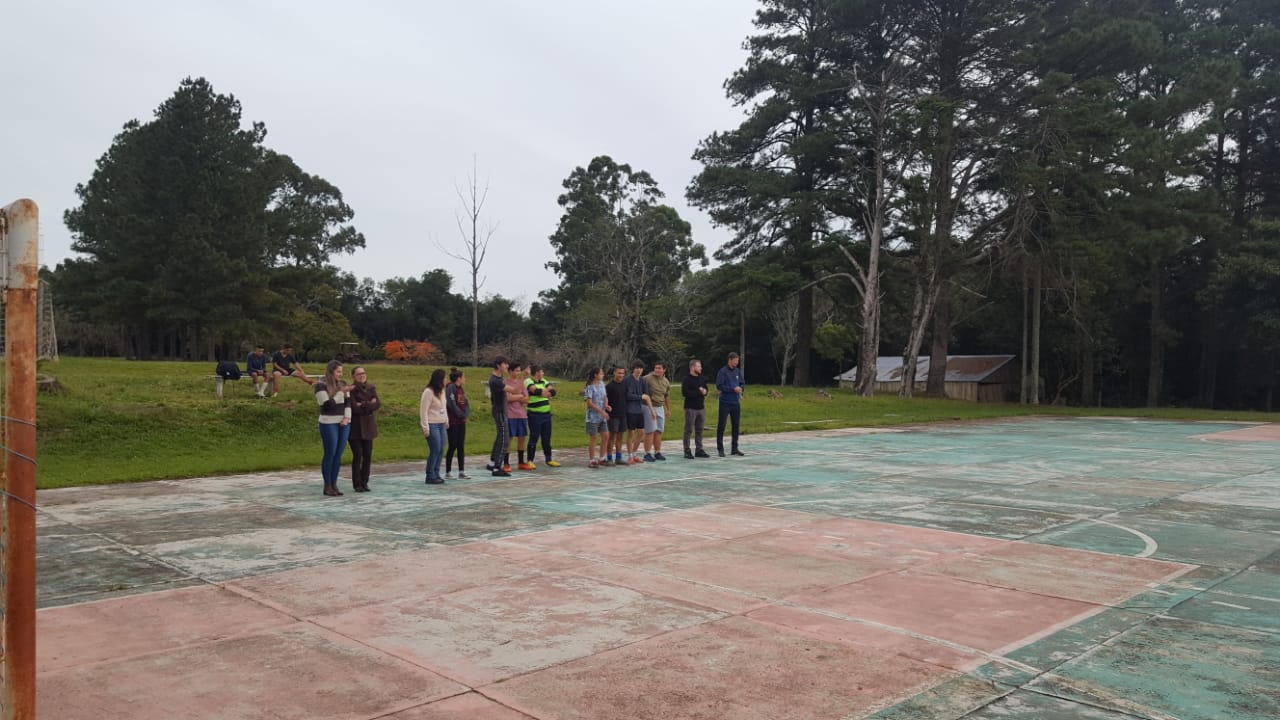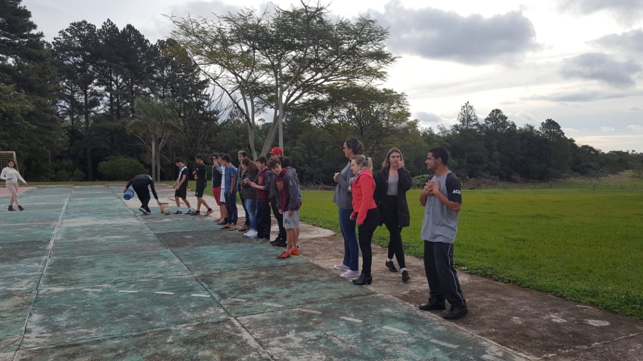 O IFFar Campus Jaguari, a convite da Secretaria Municipal de Turismo, Cultura, Desportos e Lazer de Jaguari e sob coordenação do Prof. Anderson Fetter, odontóloga Fernanda Lavarda e nutricionista Priscila Flores, inseridos no Projeto Roda de Saúde, promoveram atividades de valorização ao bem-estar e movimento físico do DIA DO DESAFIO no campus, reunindo 12 servidores e 47 estudantes, totalizando 59 participantes na oficina de alongamento e jogos cooperativos e esportivos.