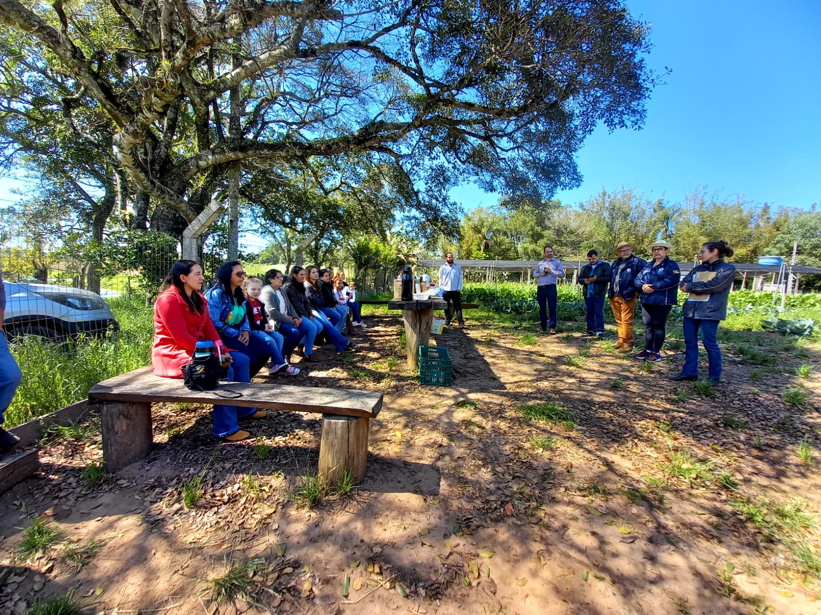 No sábado, 15/10/2022, a sexta turma do curso de Especialização em Educação do Campo e Agroecologia do IFFar Campus Jaguari por meio da disciplina “História Agrária e Desenvolvimento Rural” ministrada pela Professora Carina Rejane Pivetta, realizaram um Dia de Campo com a Mulheres Rurais do Assentamento Santos Reis de Jaguari/RS. As atividades contemplaram práticas de manejo ecológico de cultivos agrícolas, as sementes crioulas, o uso de plantas medicinais e a oficina de bem-estar e autocuidado que contou com a ação voluntária das esteticistas Marcia Azevedo de Jaguari e Andria Fernandes de São Vicente do Sul. Essa ação objetivou promover momentos de sensibilização para valorização e fortalecimento das pessoas que trabalham e vivem na agricultura familiar.
