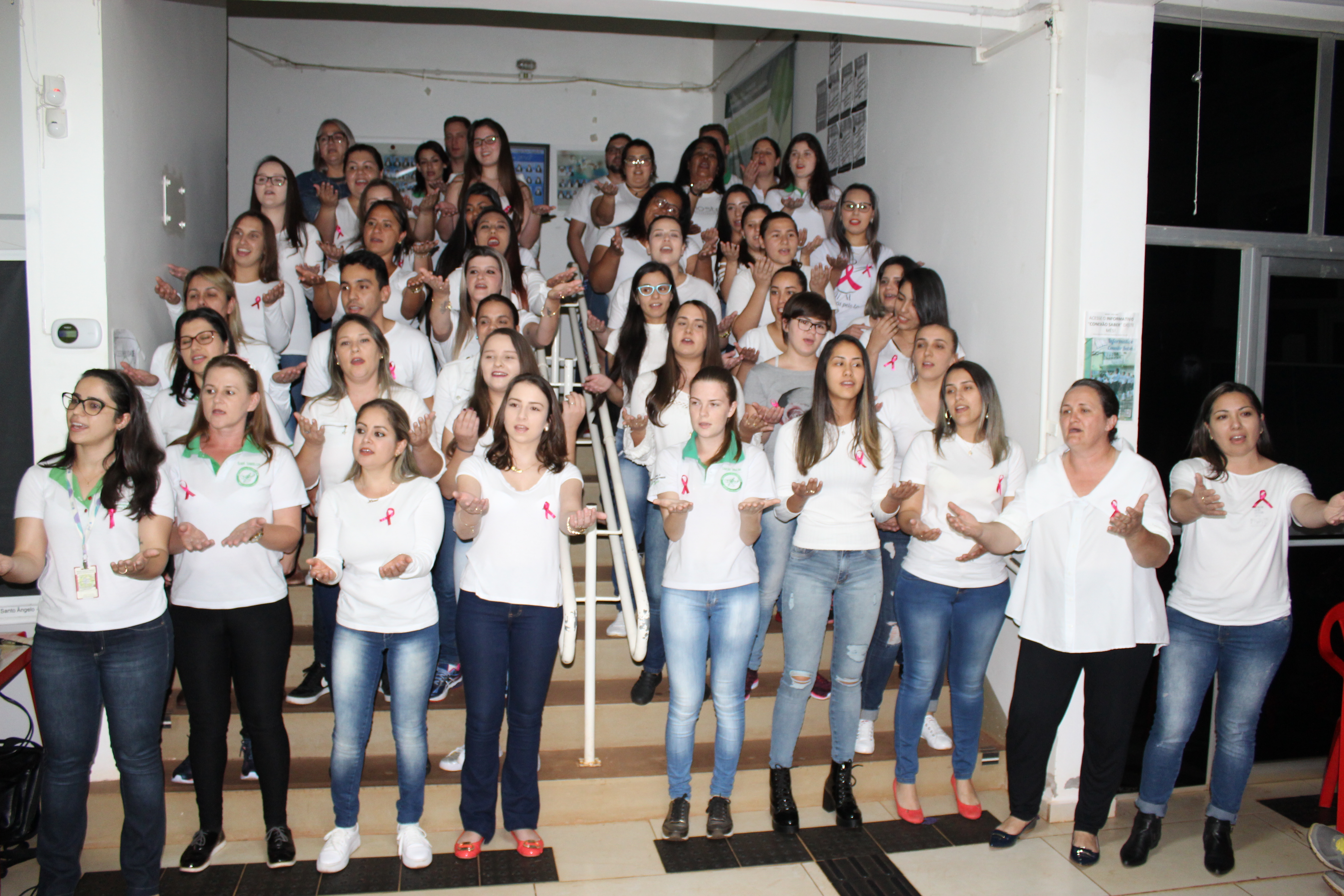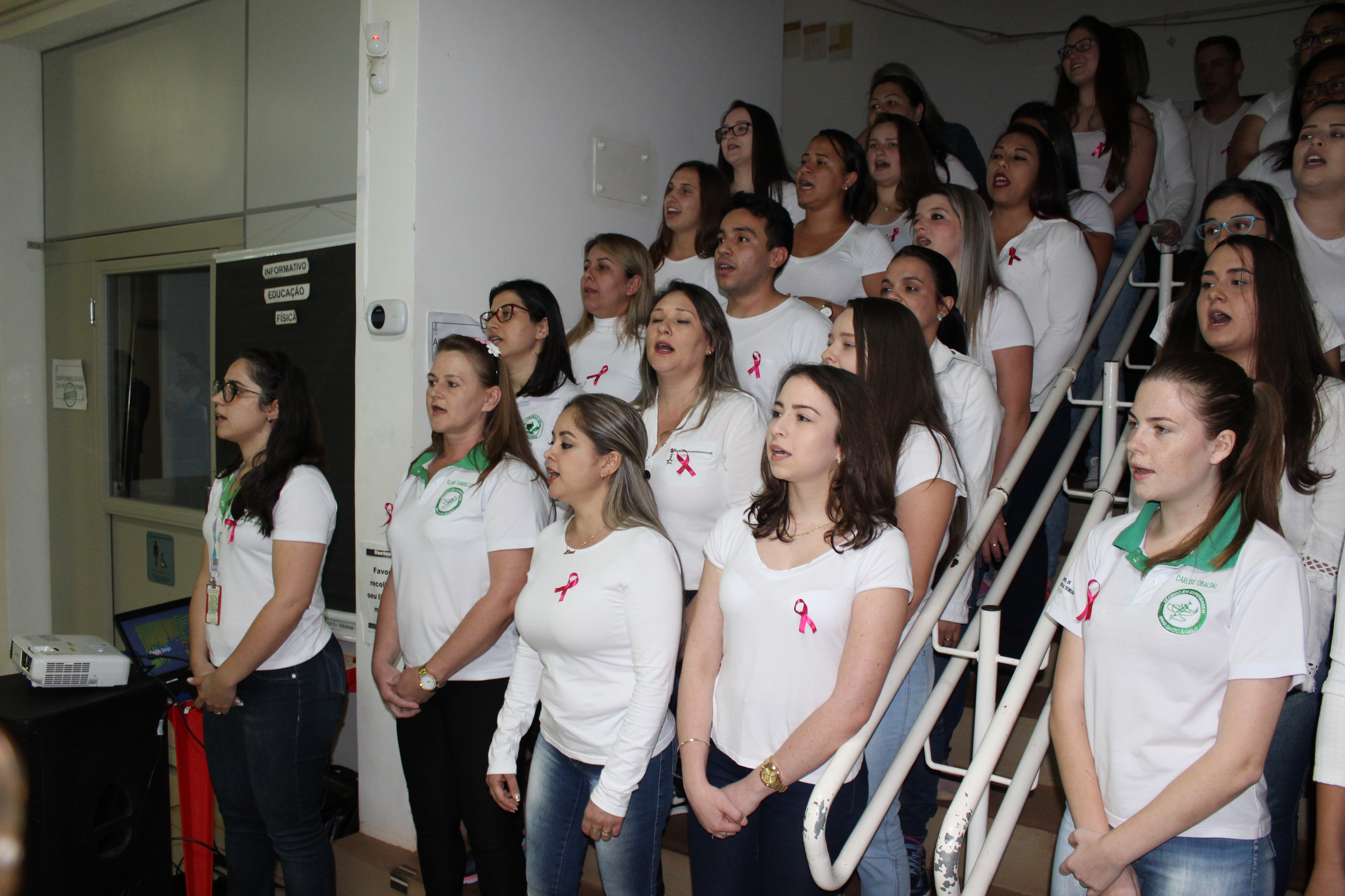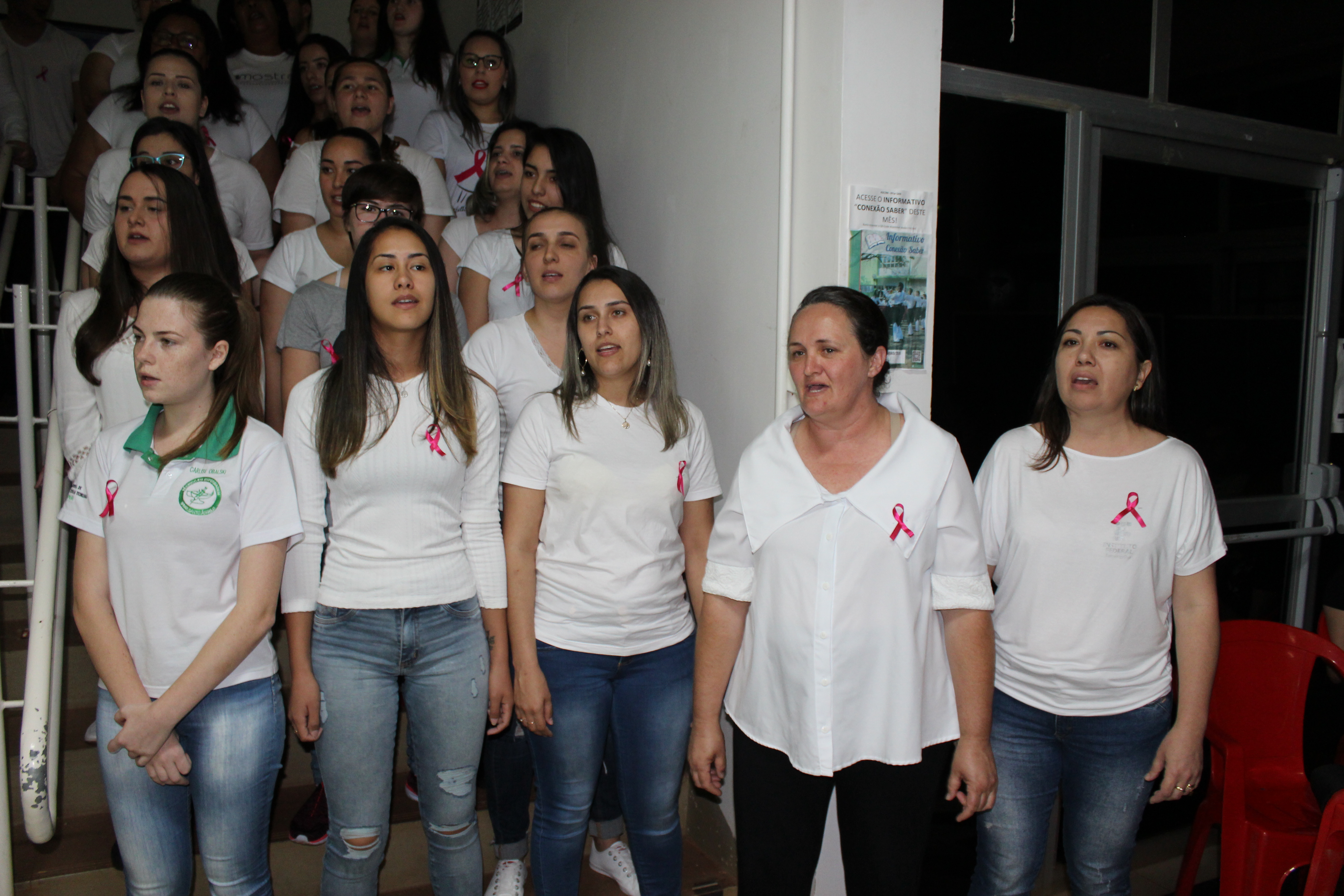 Para o fechamento do Outubro Rosa, servidores e alunos do Curso Técnico em Enfermagem cantam para sensibilizar sobre a importância da prevenção do Câncer de Mama e de Colo de Útero.