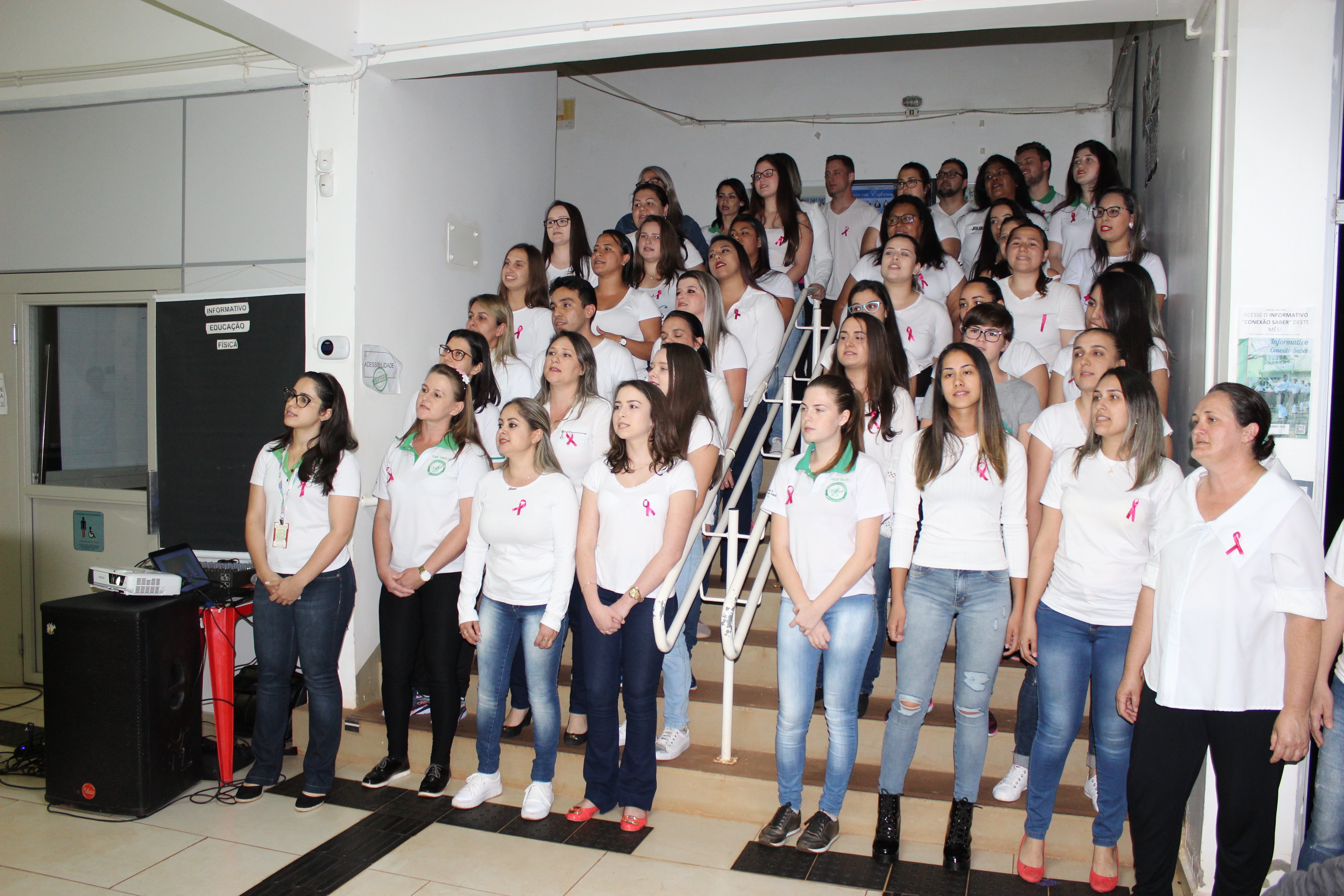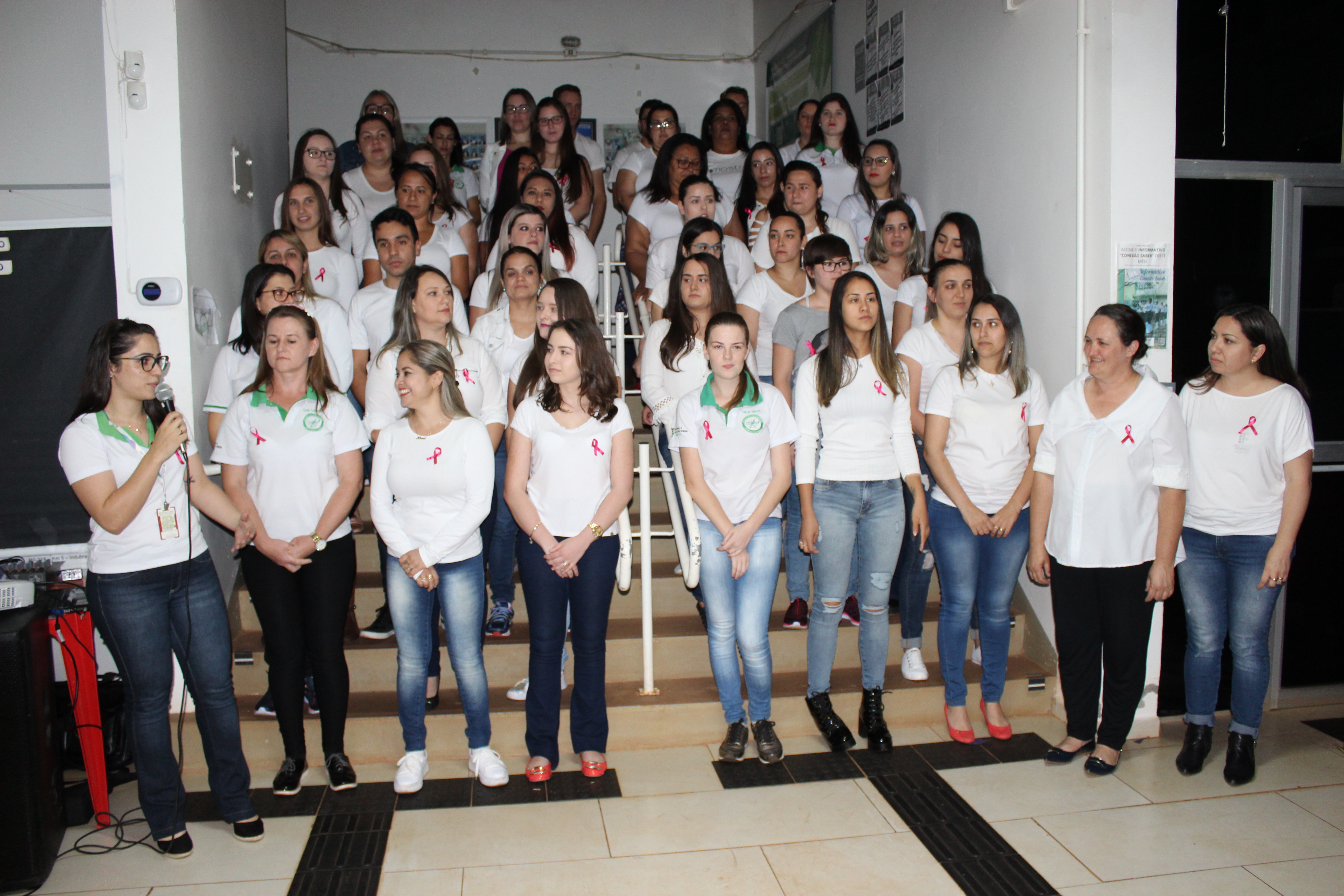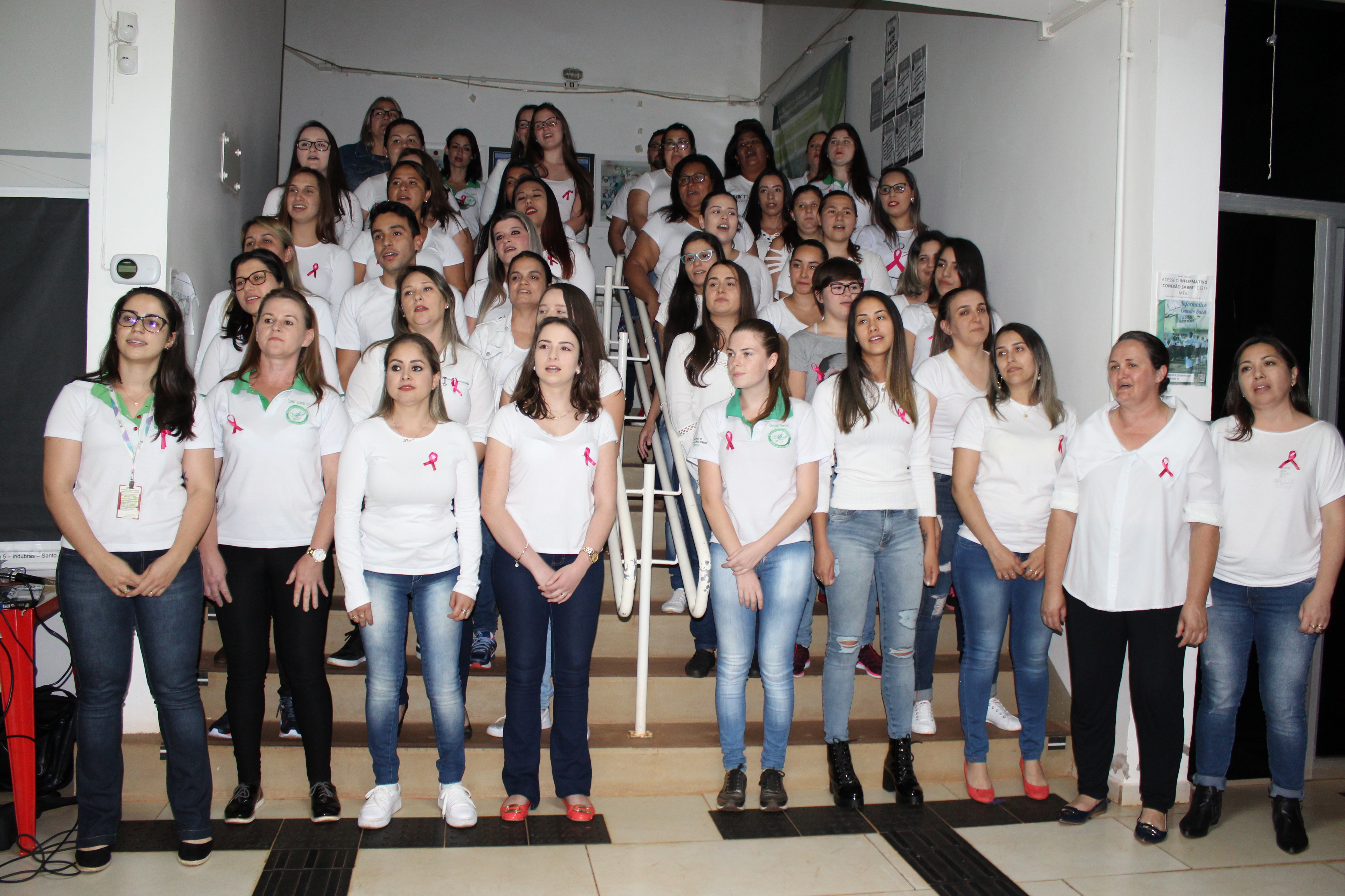 Para o fechamento do Outubro Rosa, servidores e alunos do Curso Técnico em Enfermagem cantam para sensibilizar sobre a importância da prevenção do Câncer de Mama e de Colo de Útero.