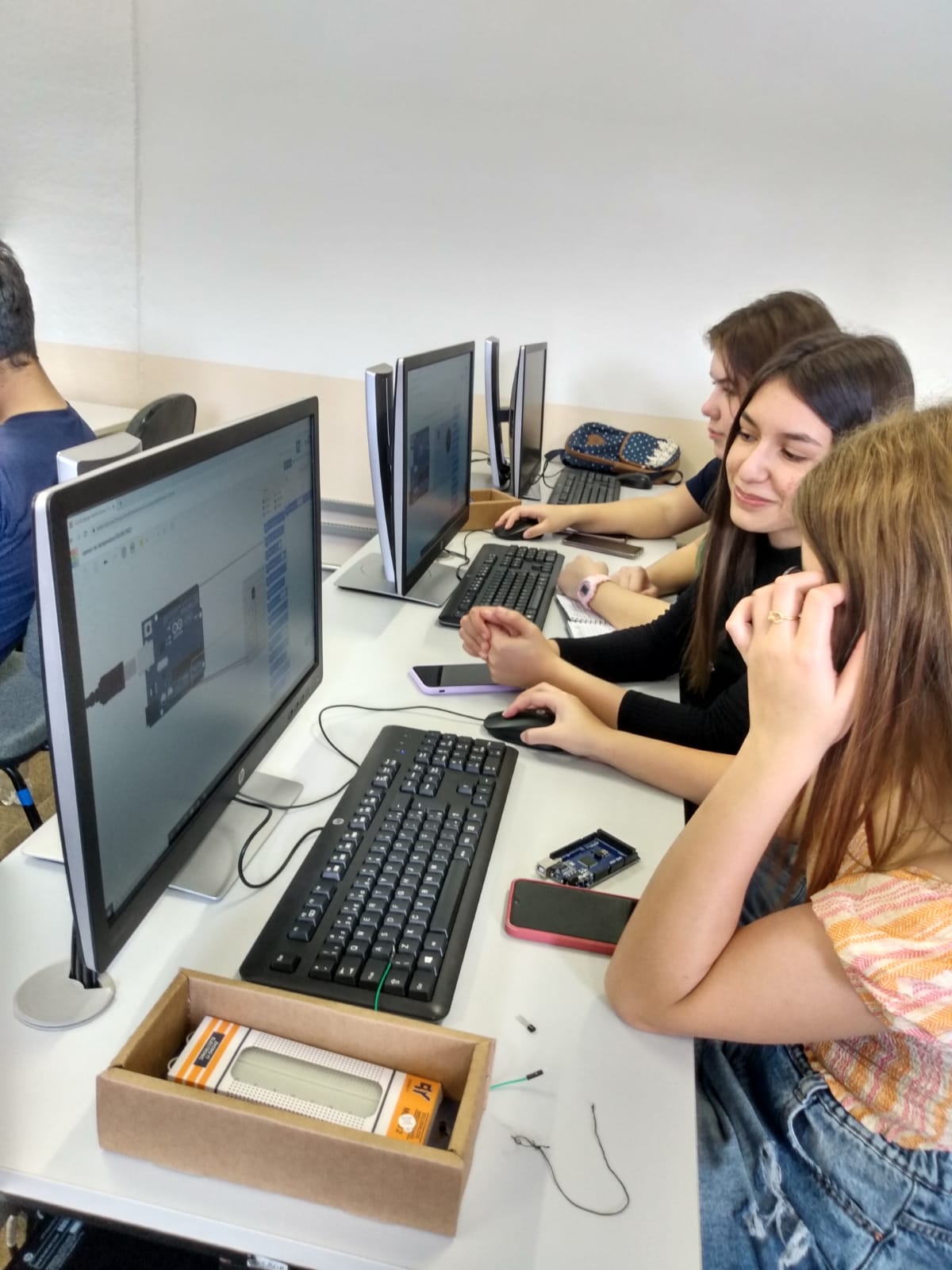 No mês de junho iniciará o curso destinado aos estudantes da escola, com 20 horas de duração. Nos cinco encontros, os participantes aprenderão sobre conhecimentos de componentes básicos de eletricidade (resistor, led, protoboard, sensor ultrassônico, etc.), que integrarão protótipos com Arduino, tais como: pisca led, semáforo simples, semáforo duplo, sensor de estacionamento, entre outros.
