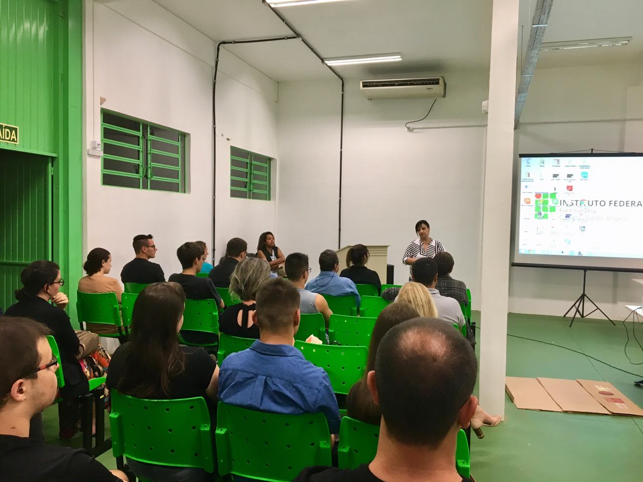 Também os alunos foram recebidos com a fala dos servidores da Coordenação Geral de Ensino, Setor de Apoio Pedagógico, Biblioteca, Coordenação de Registros Acadêmicos, Coordenação de Ações Inclusivas e Coordenação de Ações Inclusivas.