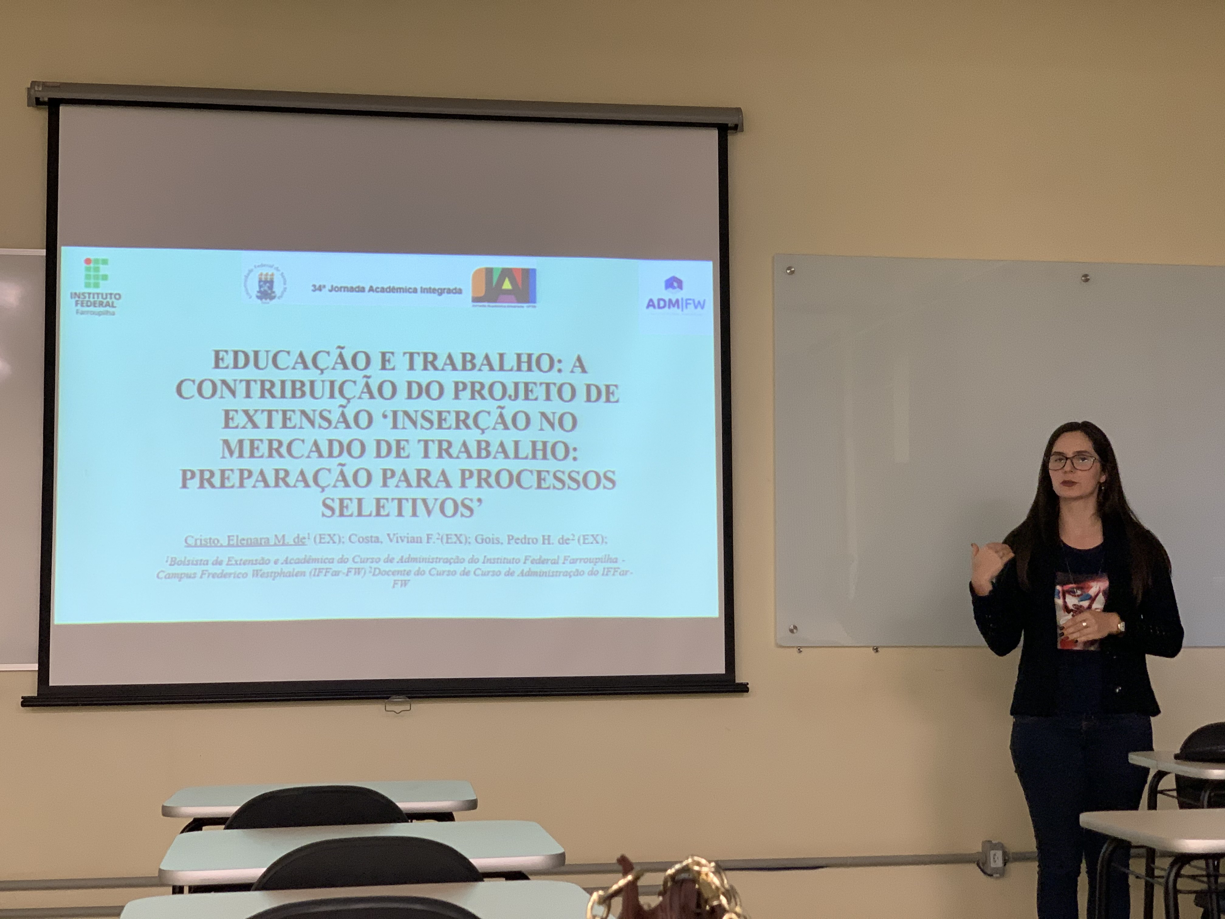 - Educação e Trabalho: a contribuição do projeto de extensão “inserção no mercado de trabalho: preparação para processos seletivos”. Acadêmica: Elenara Milena de Cristo.