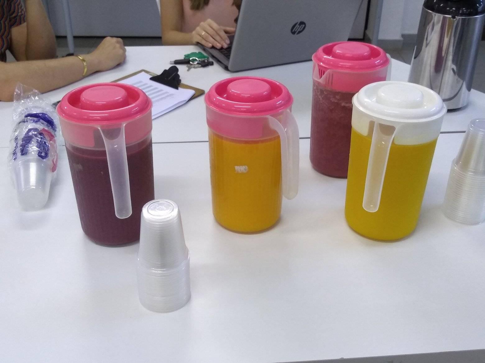Ao longo do projeto “Elaboração de néctar e caracterização de polpas de butiá provenientes da cadeia de frutas nativas do Noroeste do RS”, iniciado em 2017, foram desenvolvidas diferentes formulações de néctar de butiá para testes prévios de aceitação do produto. No dia 17 de junho, foi realizada a análise sensorial de quatro fórmulas de néctar de butiá, com 50 provadores. “O néctar é o produto elaborado a partir de diversas concentrações de polpa, açúcares e ácido cítrico. A partir dos resultados das pesquisas e análises poderemos caracterizar e obter uma formulação de néctar com aceitabilidade para o público da nossa região, podendo orientar os produtores sobre qual formulação seria mais aceita”, explica a professora Joseana Severo.