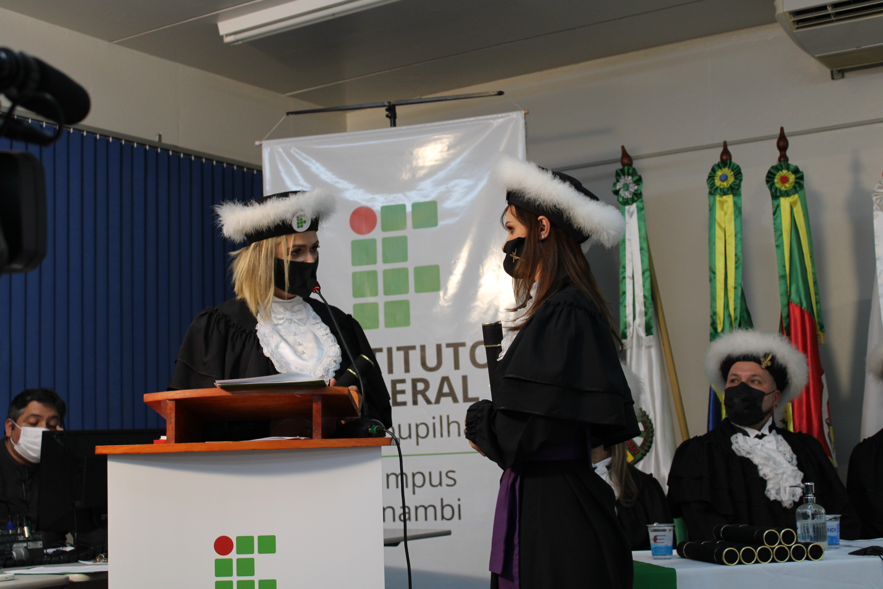 Na manhã de hoje (27), a diretora-geral substituta e diretora de Ensino, professora Analice Marchezan, outorgou o grau em cerimônia de gabinete a duas acadêmicas concluintes das licenciaturas.