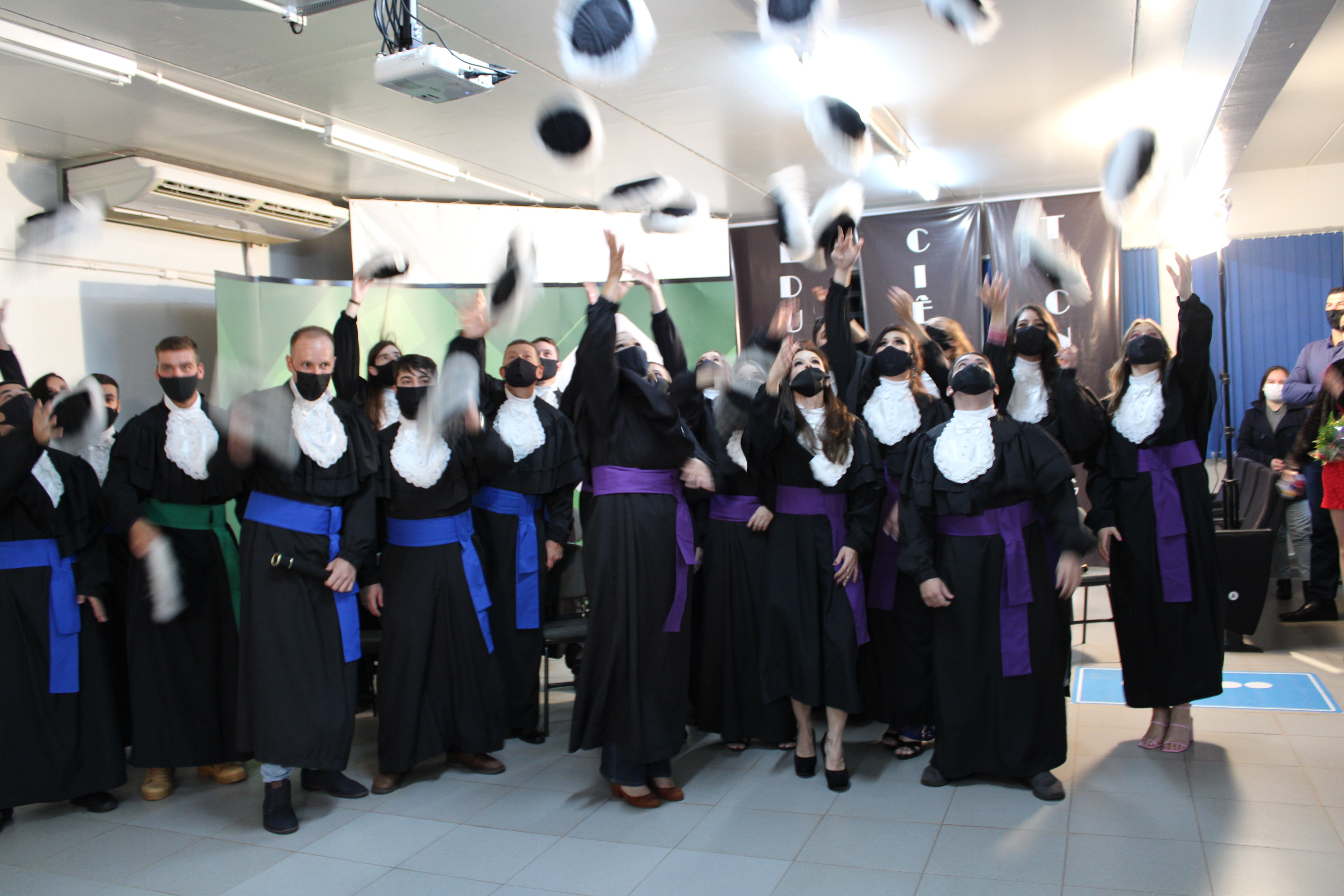 Durante a solenidade, após entrega do certificado de conclusão, eles assinaram formalmente a ata de colação de grau, oficializando o encerramento das suas etapas de formação. O evento aconteceu às 14h00min, na Sala 14, miniauditório do CIET.