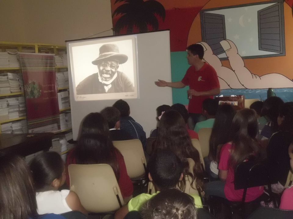 Na oportunidade, Márcio falou sobre a temática afro-brasileira, fruto de suas pesquisas, para os alunos do 4º, 5º e 7º ano, além de seus professores.
