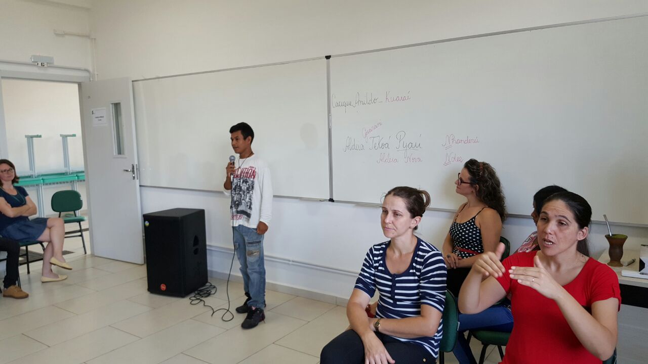 O Instituto Federal Farroupilha Campus Santo Ângelo, por meio do Núcleo de Estudos Afro-brasileiros e Indígenas (NEABI), realizou uma palestra com o Cacique Anildo, da aldeia guarani Tekoa Pyau. A atividade faz referência ao dia do índio, comemorado no dia 19 de abril. Participaram da atividade os alunos ingressantes dos cursos diurnos. Na oportunidade, o Cacique Anildo falou sobre a sua cultura, seus ritos, sobre a relação com a natureza e com a sociedade.