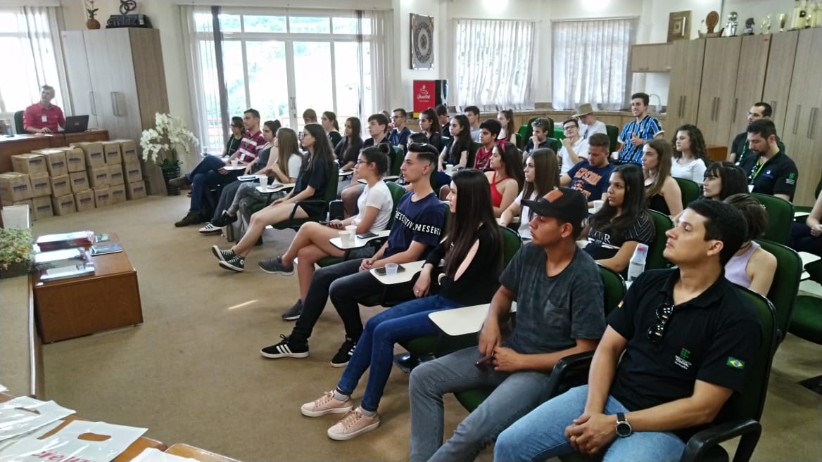 Na oportunidade, conheceram diferentes departamentos administrativos e prestigiaram uma palestra com o Diretor de Recursos Humanos da Cooperativa, Sr. Douglas da Luz.