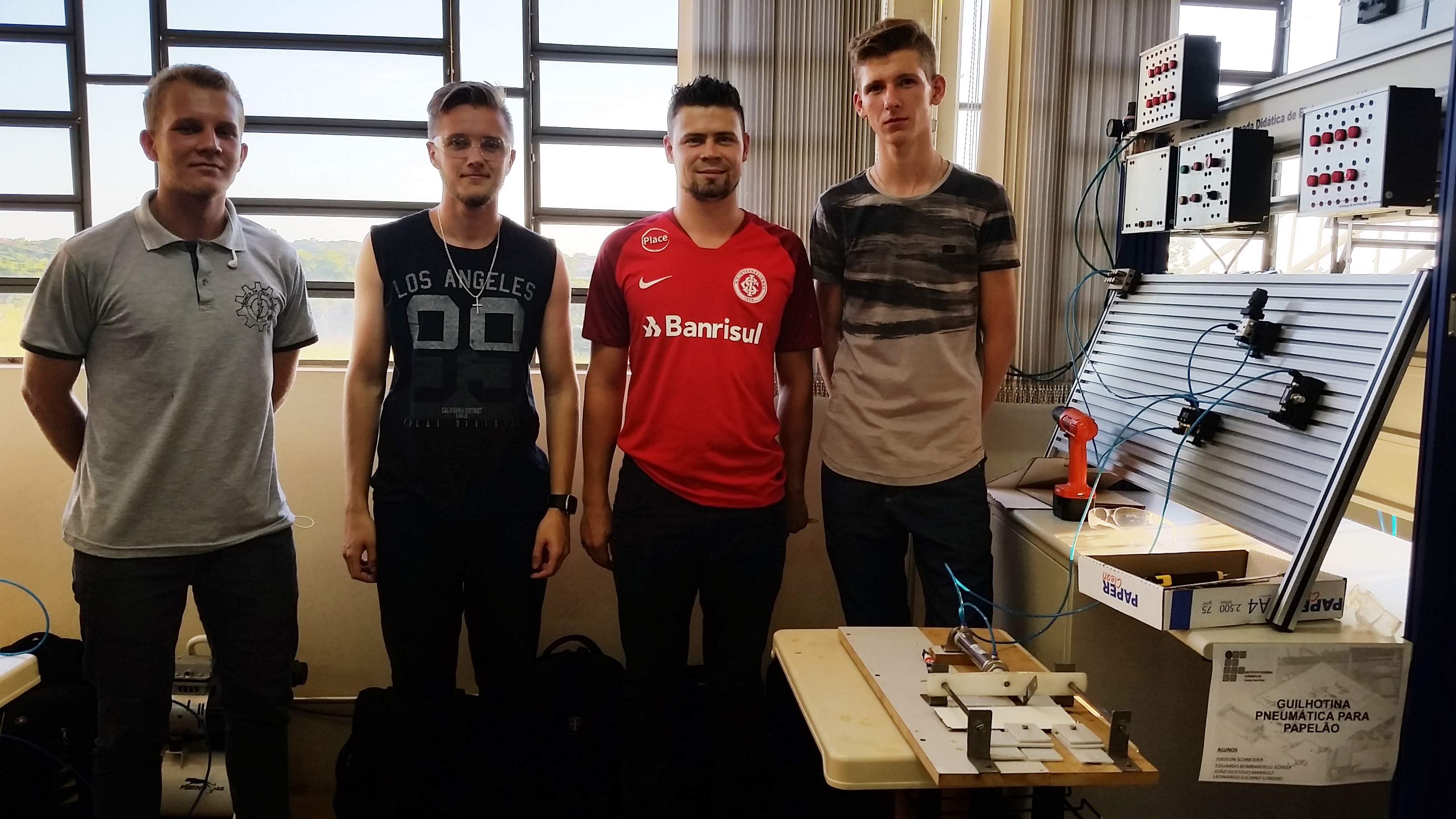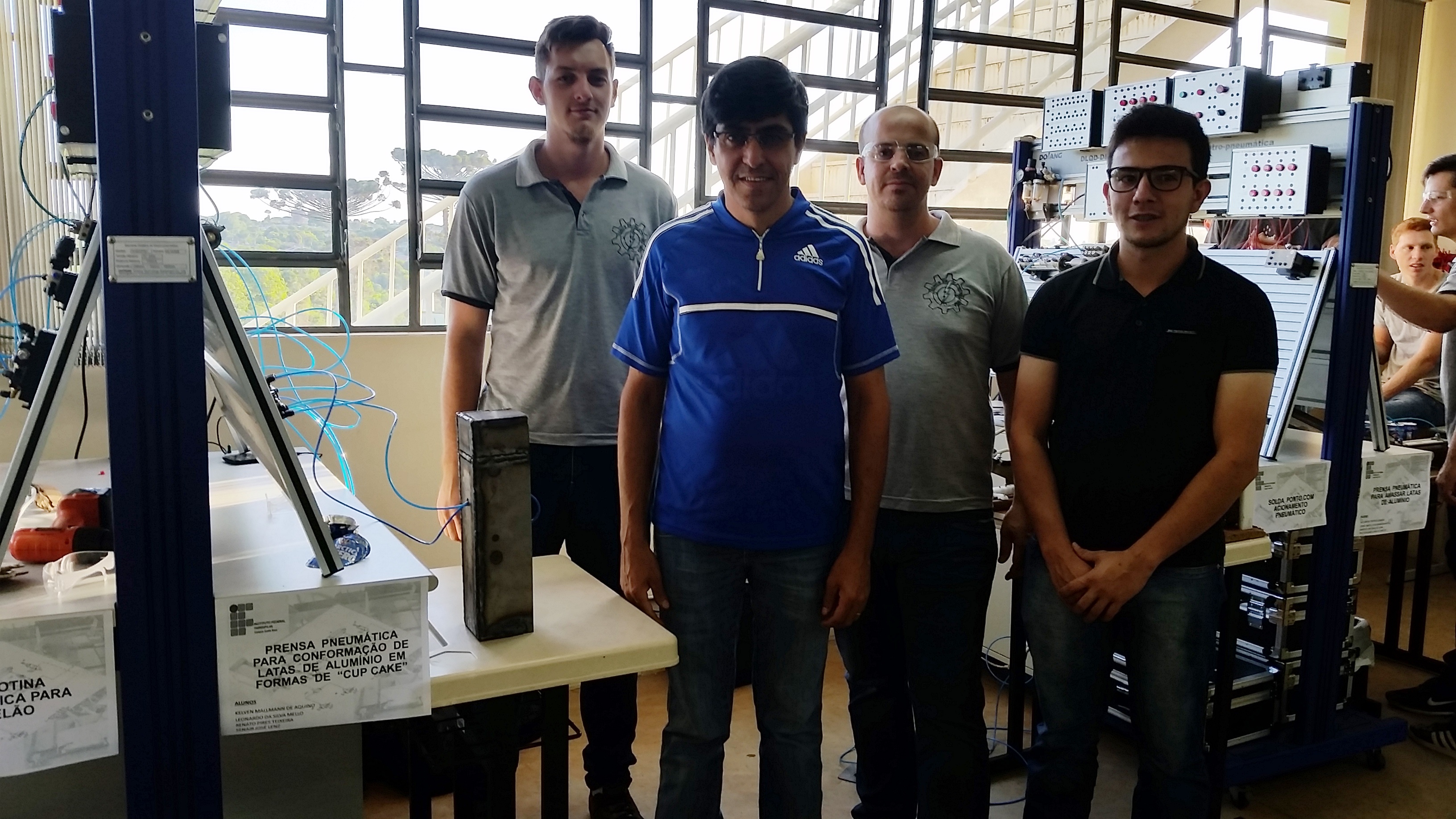 Os alunos do curso Técnico em Eletromecânica realizaram nesta quinta-feira, 13 de dezembro, a I Mostra de Protótipos para marcar o encerramento das disciplinas Sistemas Pneumáticos, Processos de Fabricação e Usinagem, ministradas pelo professor Vagner Flores de Almeida.