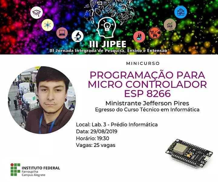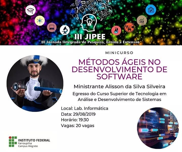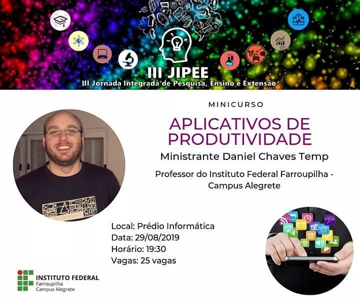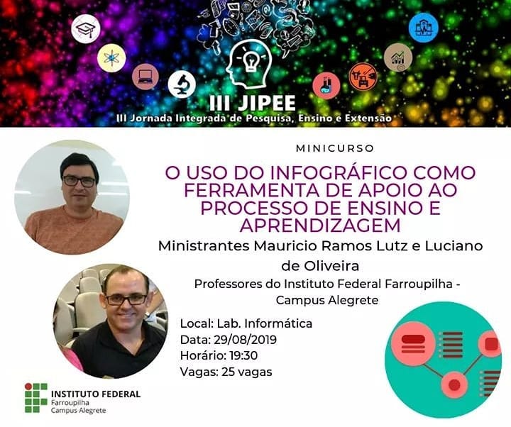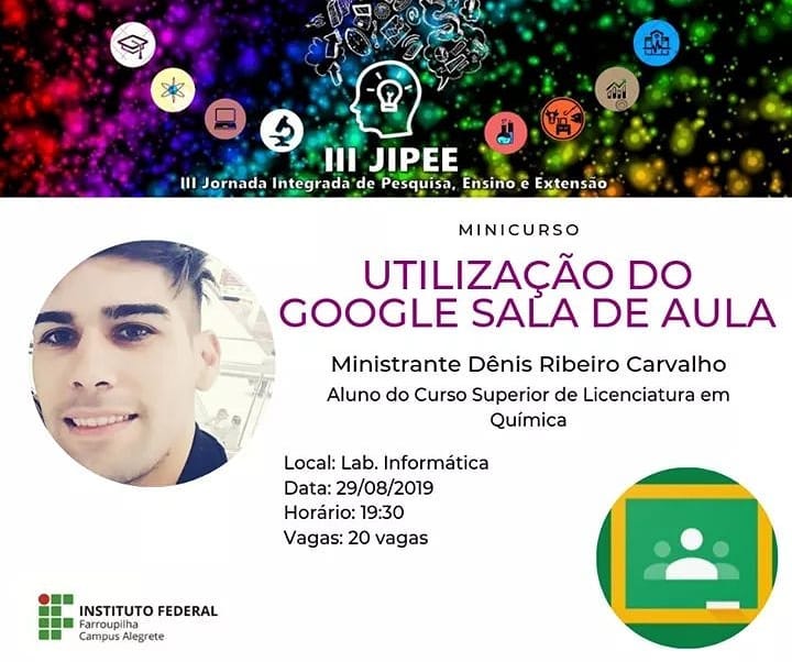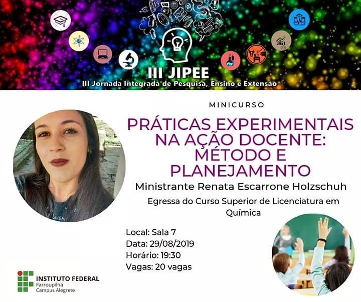 Com atividades desenvolvidas através de 8 módulos, o curso conta com uma carga-horária de 40h entre atividades presencias e a distância. Os encontros ocorrerão aos sábados na E.M.E.I. Gente Miúda e eventualmente no Campus Alegrete do IFFar, entre os meses de agosto e dezembro.