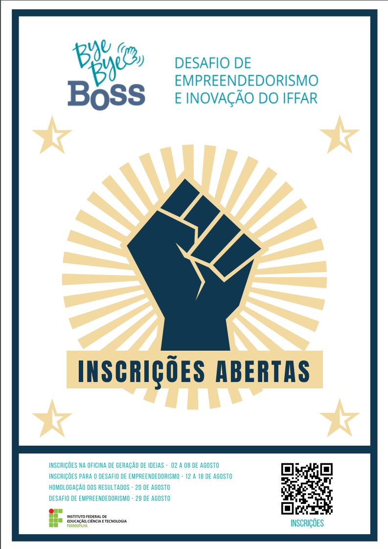 O Bye Bye Boss - Desafio de Empreendedorismo e Inovação do IFFar, é uma ação conjunta dos Campi do Instituto Federal Farroupilha, por meio do Núcleo de Inovação e Transferência de Tecnologia (NIT) que tem como intuito principal impulsionar as atividades que se relacionam.