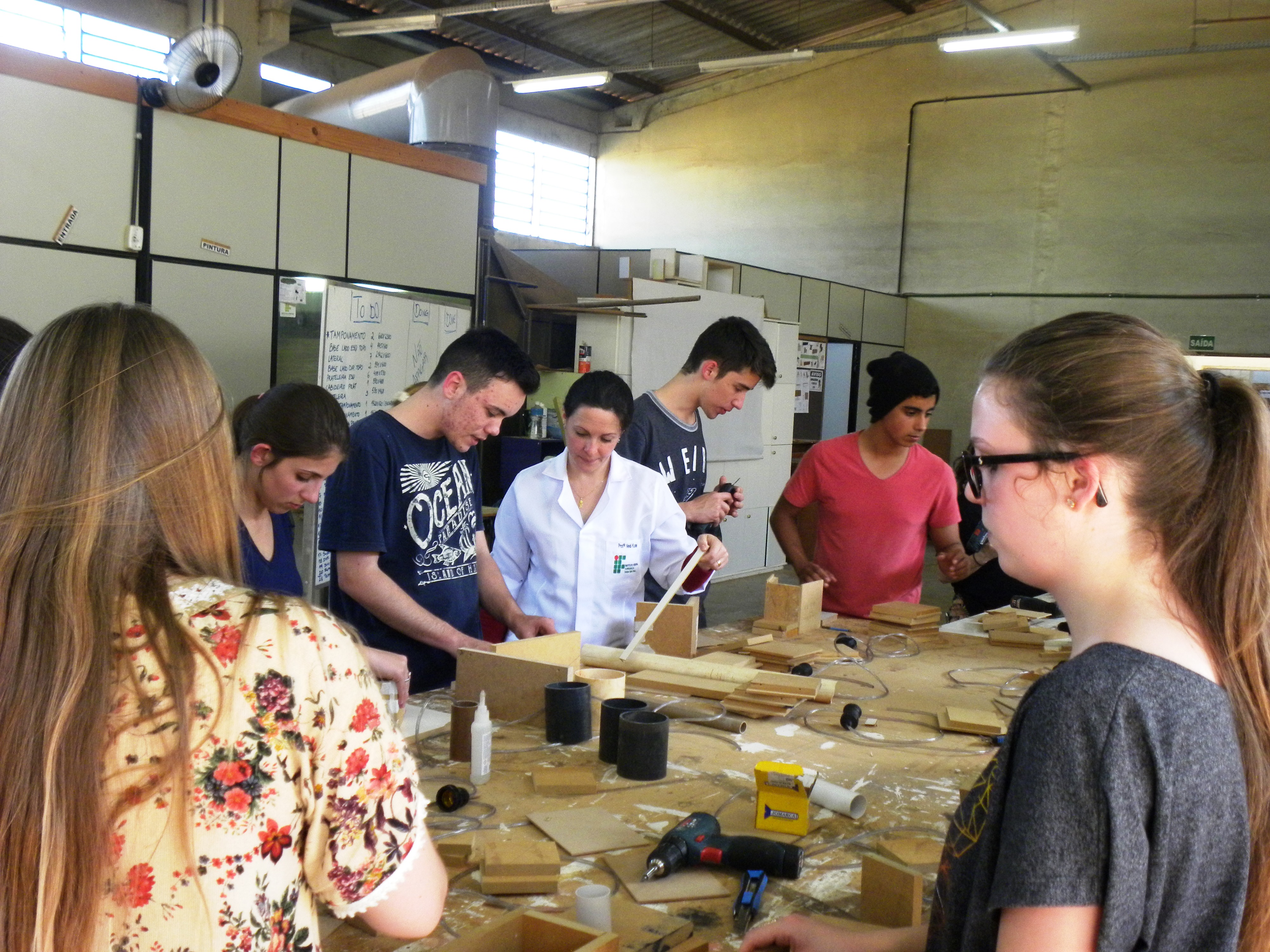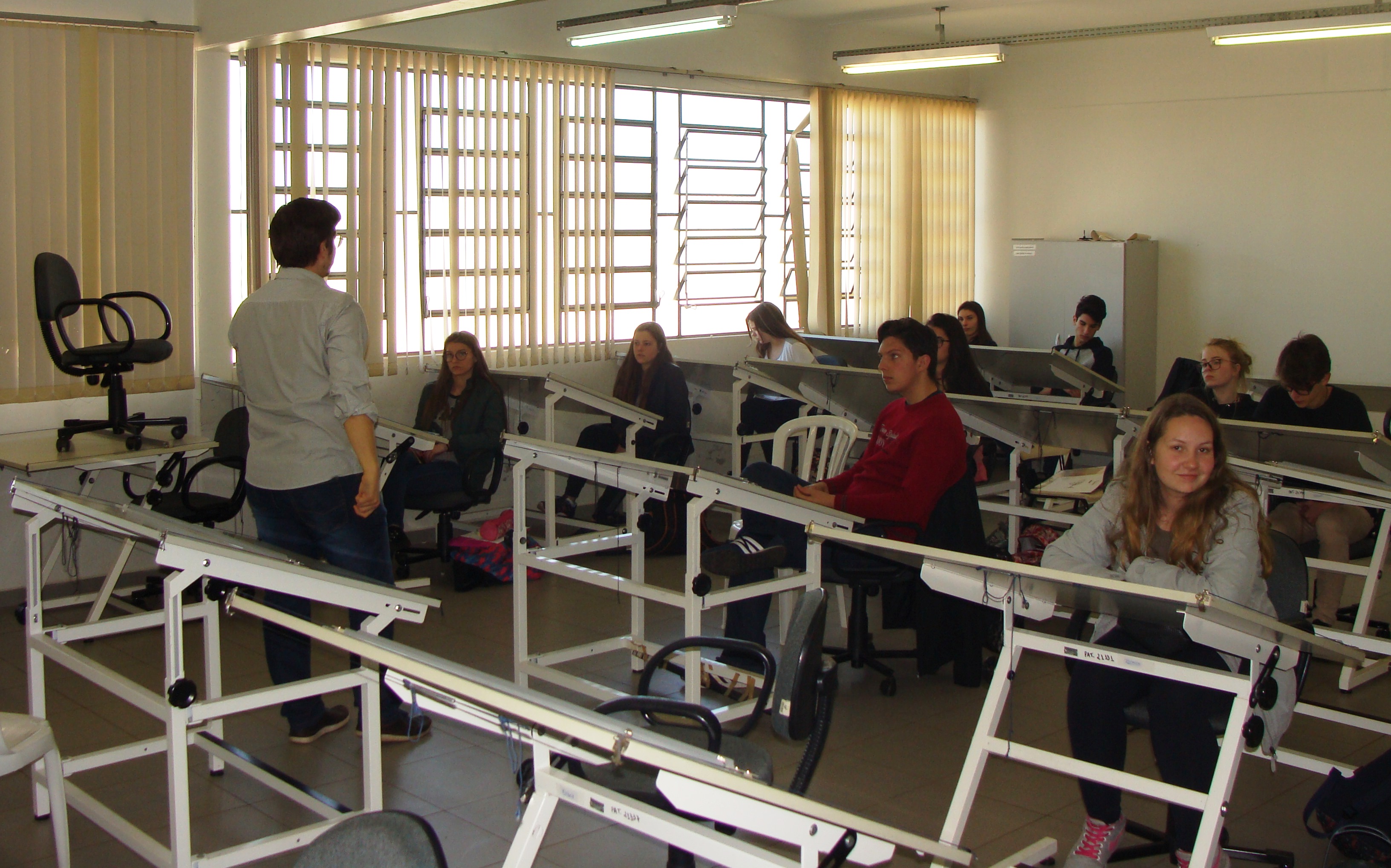 A oficina de Aquarela, ministrada pela professora Cornelia Kudiess, aconteceu no laboratório de Artes, enquanto a professora Silvie Jobim coordenava a oficina de "Introdução ao Promob" no Laboratório de Informática.