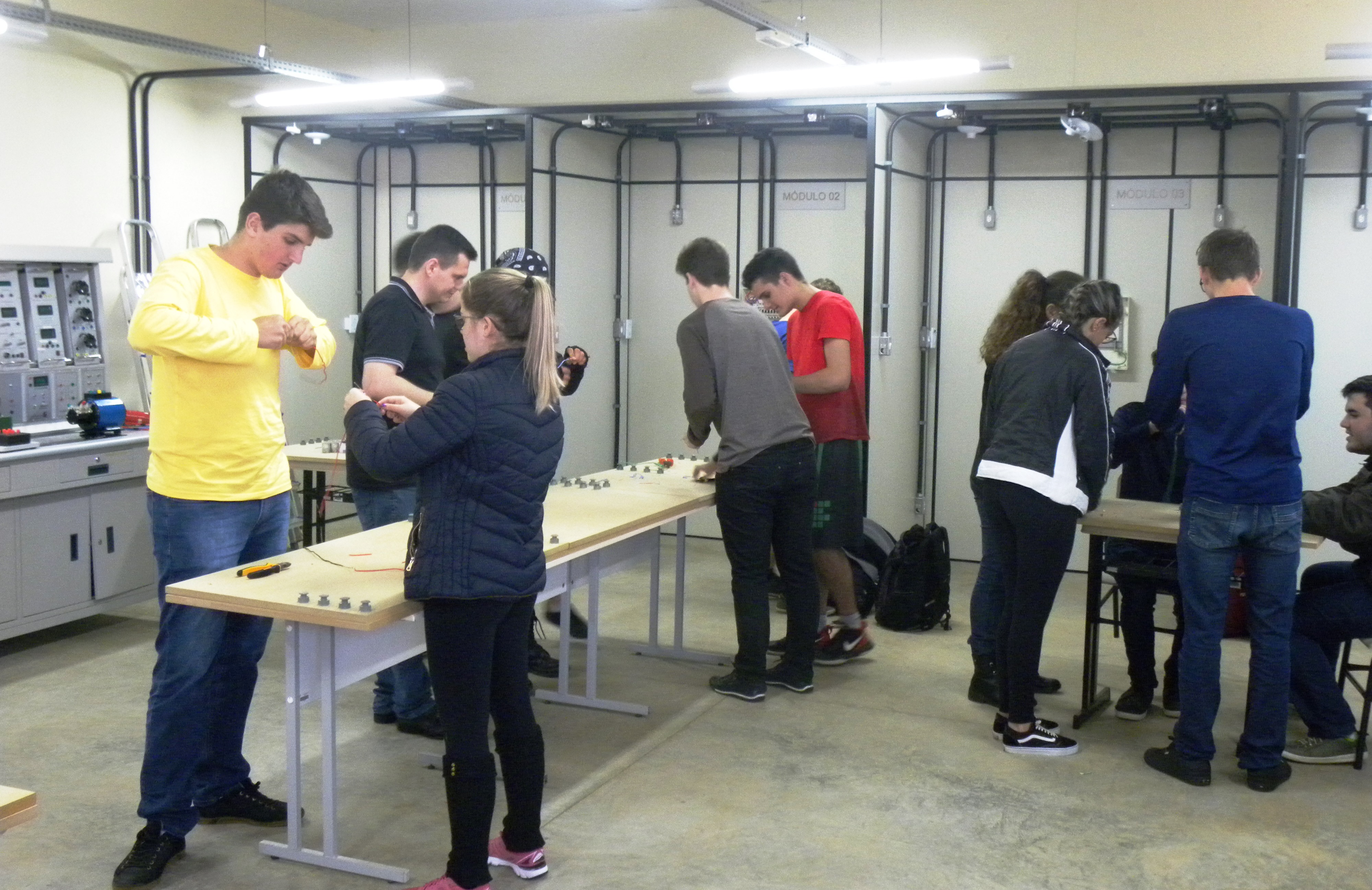 O professor Alcedir Finkler ministrou a oficina de Instalações Elétricas, no Laboratório de Eletromecânica. No Laboratório de Edificações, aconteceu a oficina de Instalações Prediais, com o técnico e ex-aluno do IFFar Campus Santa Rosa, Anderson Brum.