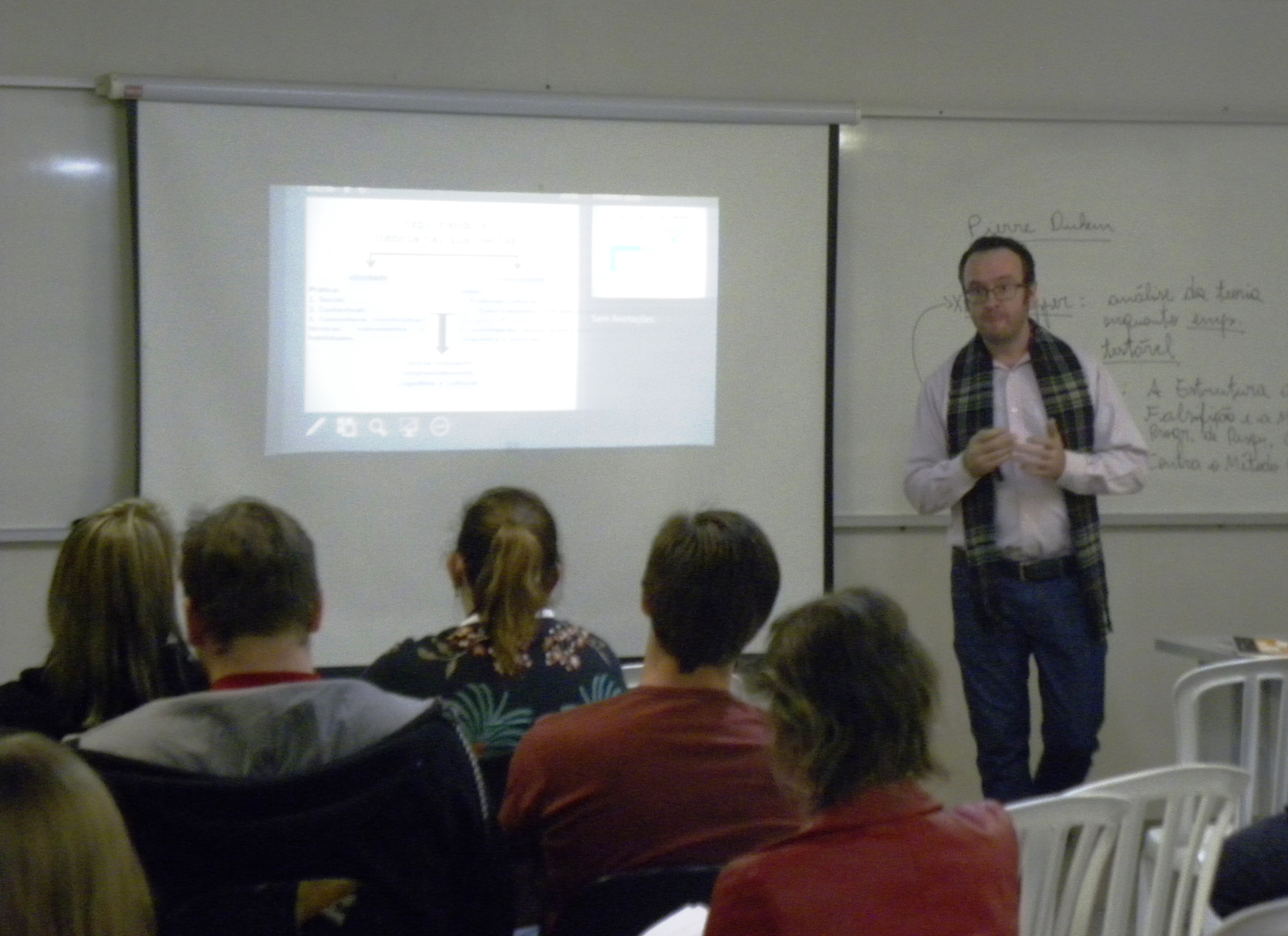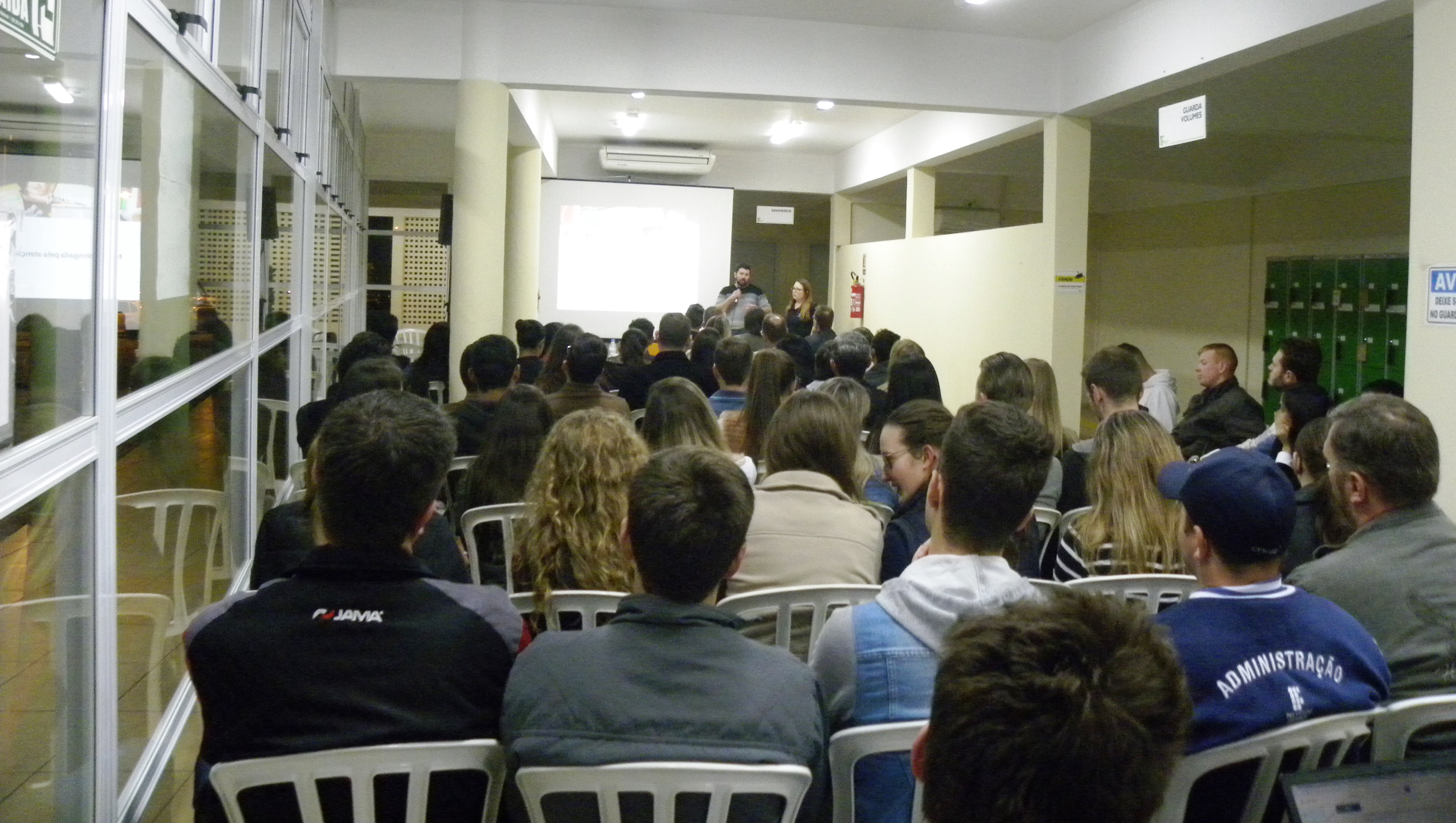 Os acadêmicos das licenciaturas conferiram a palestra com o professor Miguel Flach, intitulada "A tecnociência contemporânea, a produção do conhecimento e o ser professor".
