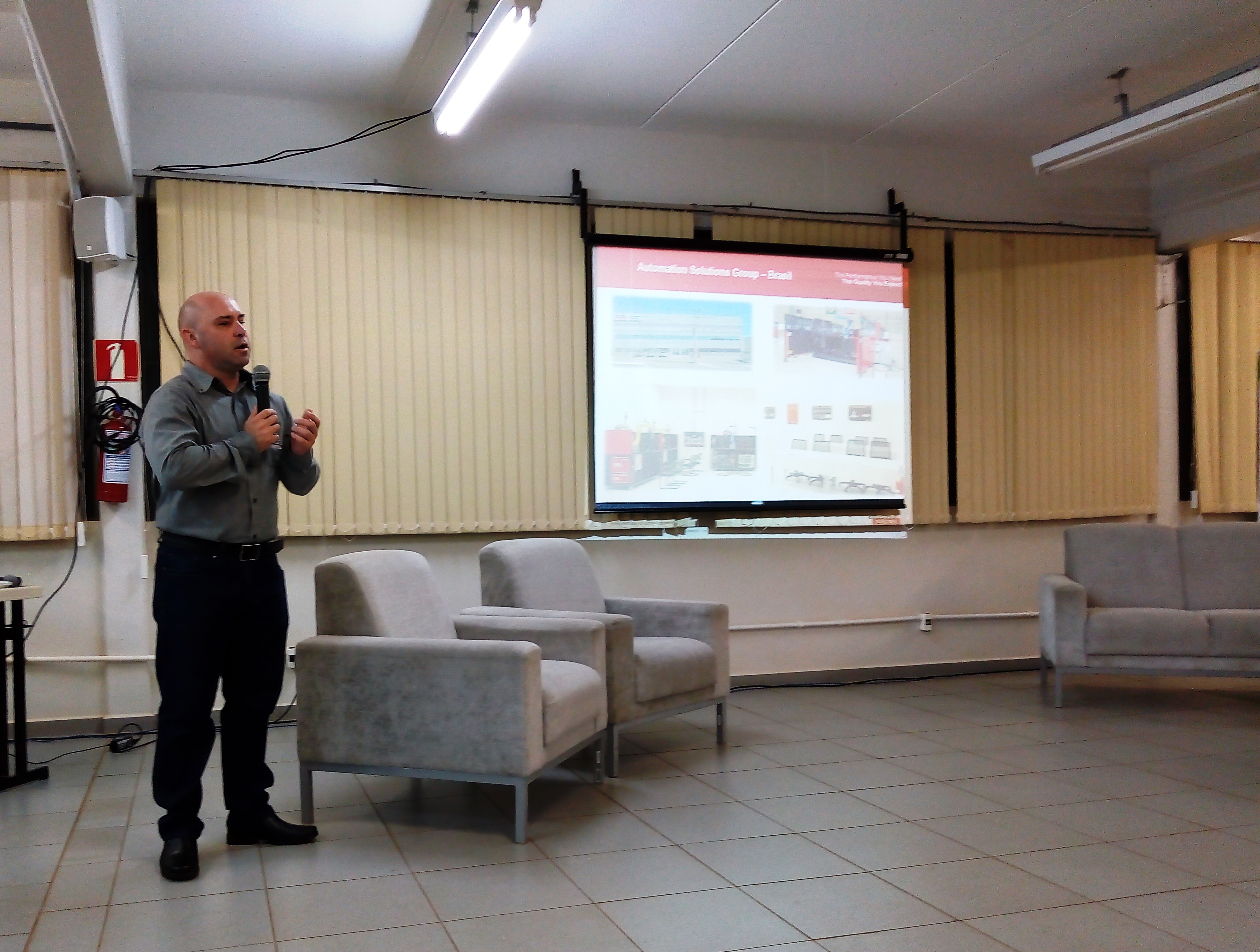 No auditório, aconteceu uma das palestras mais esperadas da MEPT, a "Solda voltada para a indústria 4.0", com o engenheiro da Lincoln Eletric, André Lohmann. Ele falou sobre automação, soldagem robotizada e produtividade para profissionais do setor metalmecânico da região e os alunos do curso Técnico em Eletromecânica.