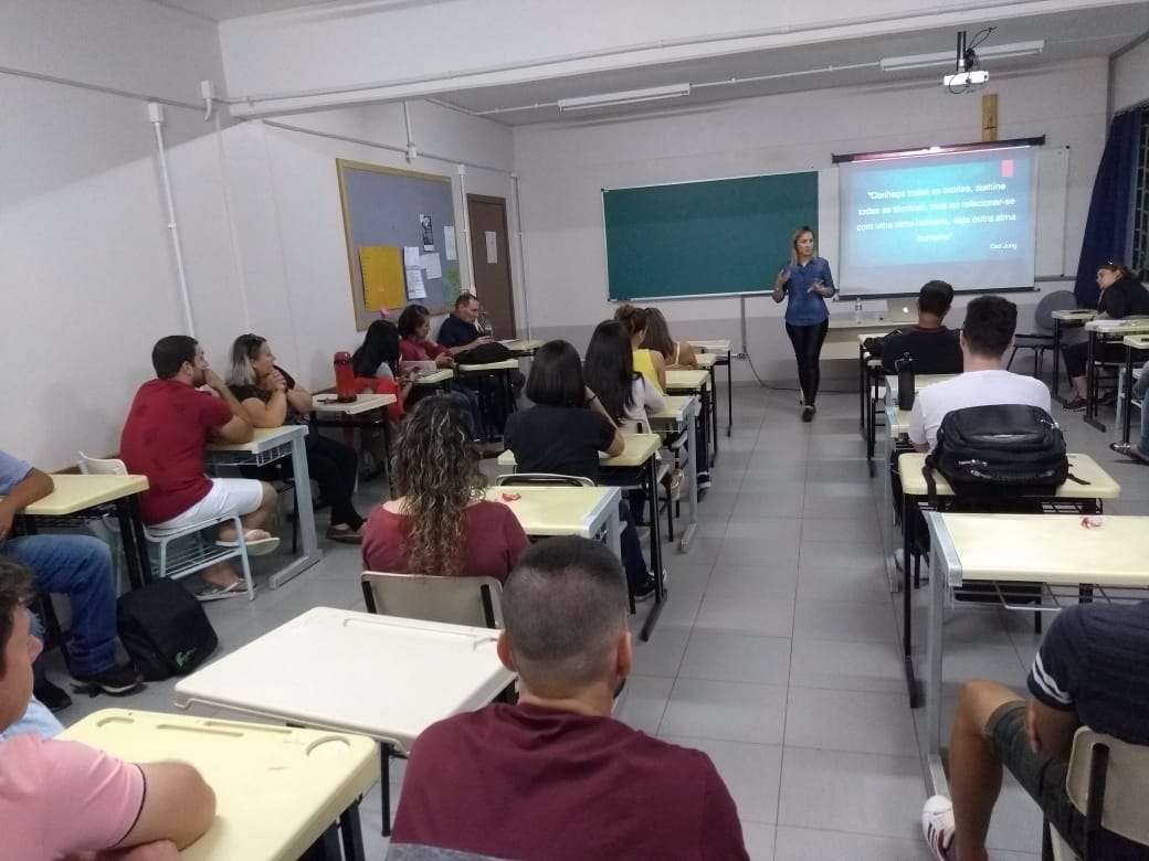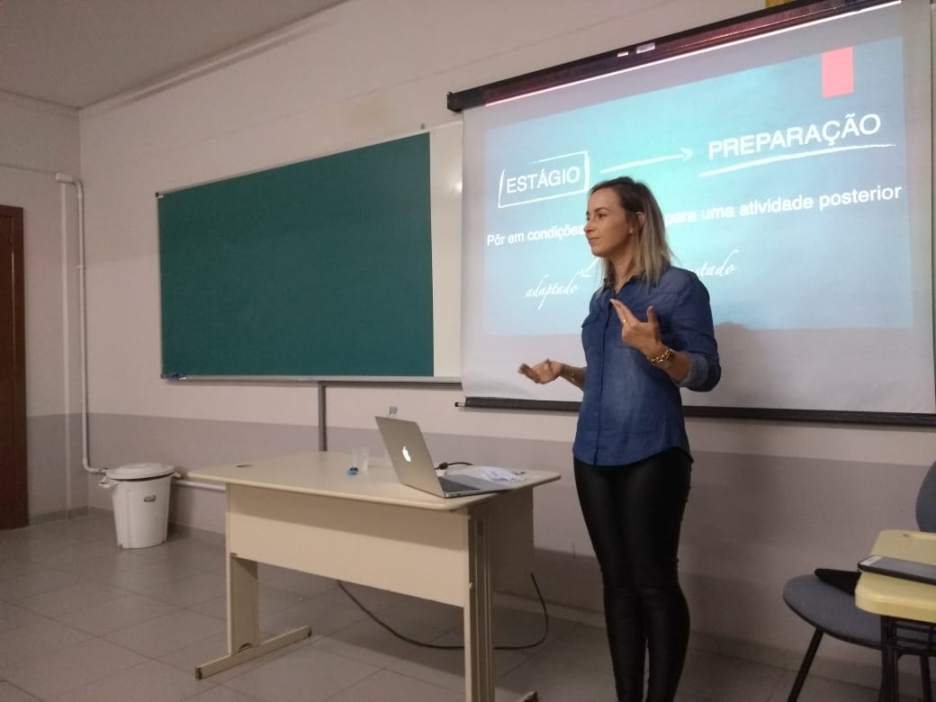 Lidiane realizou uma reflexão sobre a mudança de lugar que o processo de estágio vai ocasionar nos alunos, uma vez que “o desafio do estágio possibilita a elaboração de um novo lugar simbólico, necessário ao processo de transição aluno-estagiário”. Segundo a palestrante, os sentimentos de angústia, desamparo, ansiedade e insegurança durante o período de estágio é algo inerente ao processo de autonomia dos alunos que, muito em breve, passarão a ser profissionais da área.