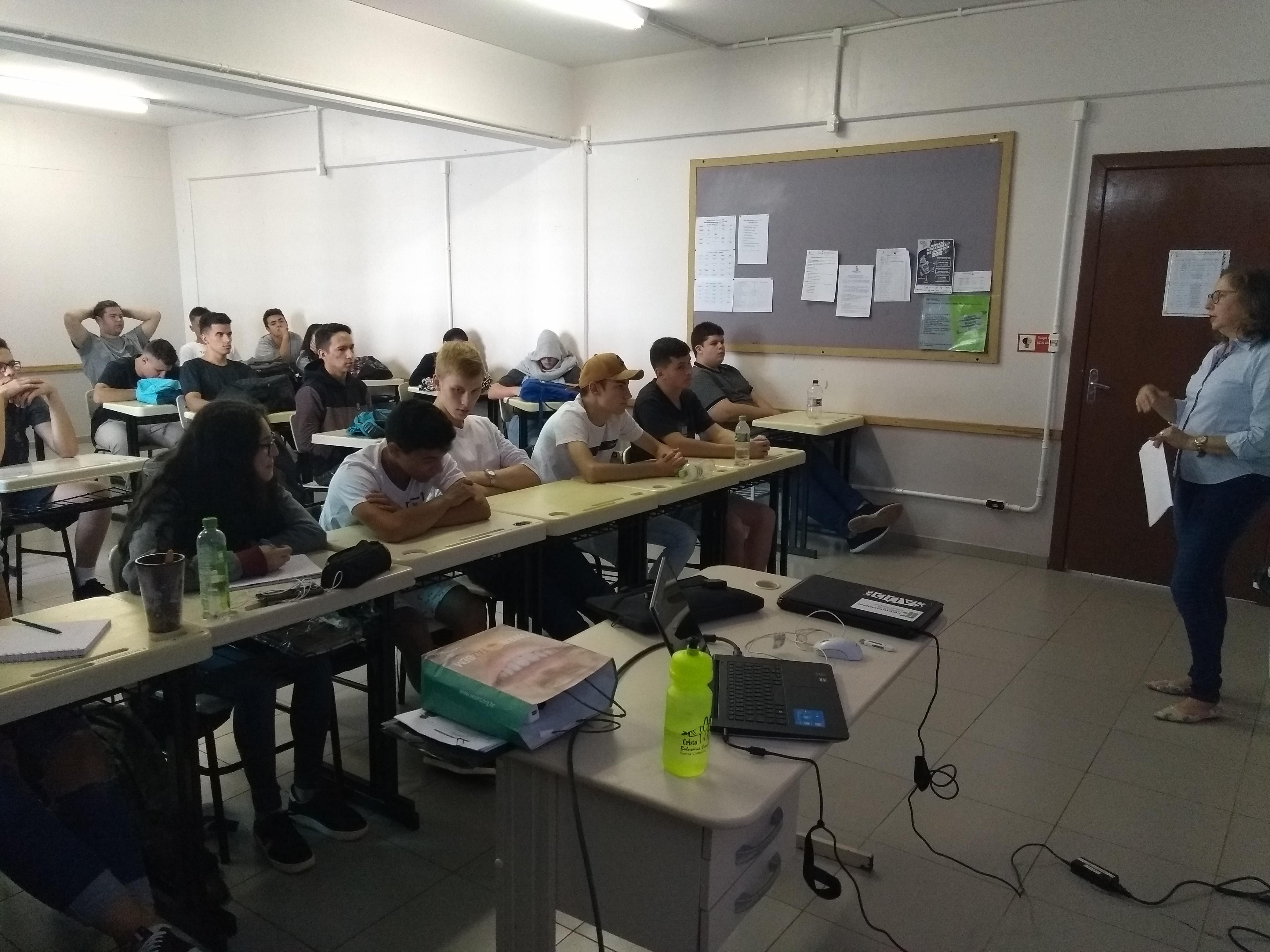 Na atividade realizada, a Sra. Margit Edelgard Zillmer, Supervisora de Recursos Humanos da Hidropan, trouxe aos estudantes contribuições acerca da sua vivência nos processos de recrutamento e seleção da empresa. Falou sobre postura no momento de uma entrevista, elaboração de currículos, inserção no mundo do trabalho. Por fim, realizou uma dinâmica de grupo com os estudantes para que eles pudessem vivenciar na prática uma das etapas de seleção de emprego.