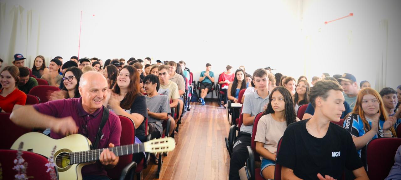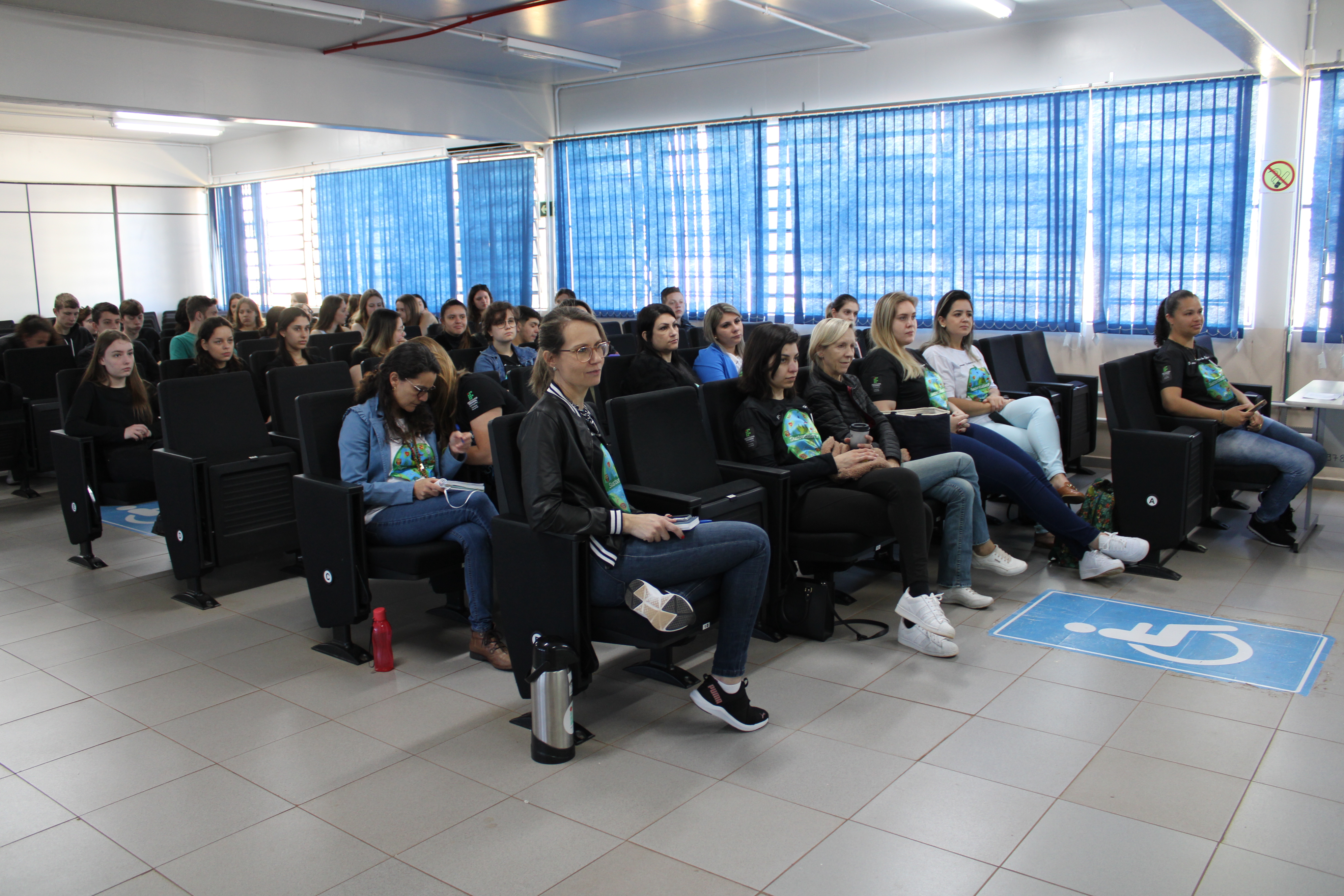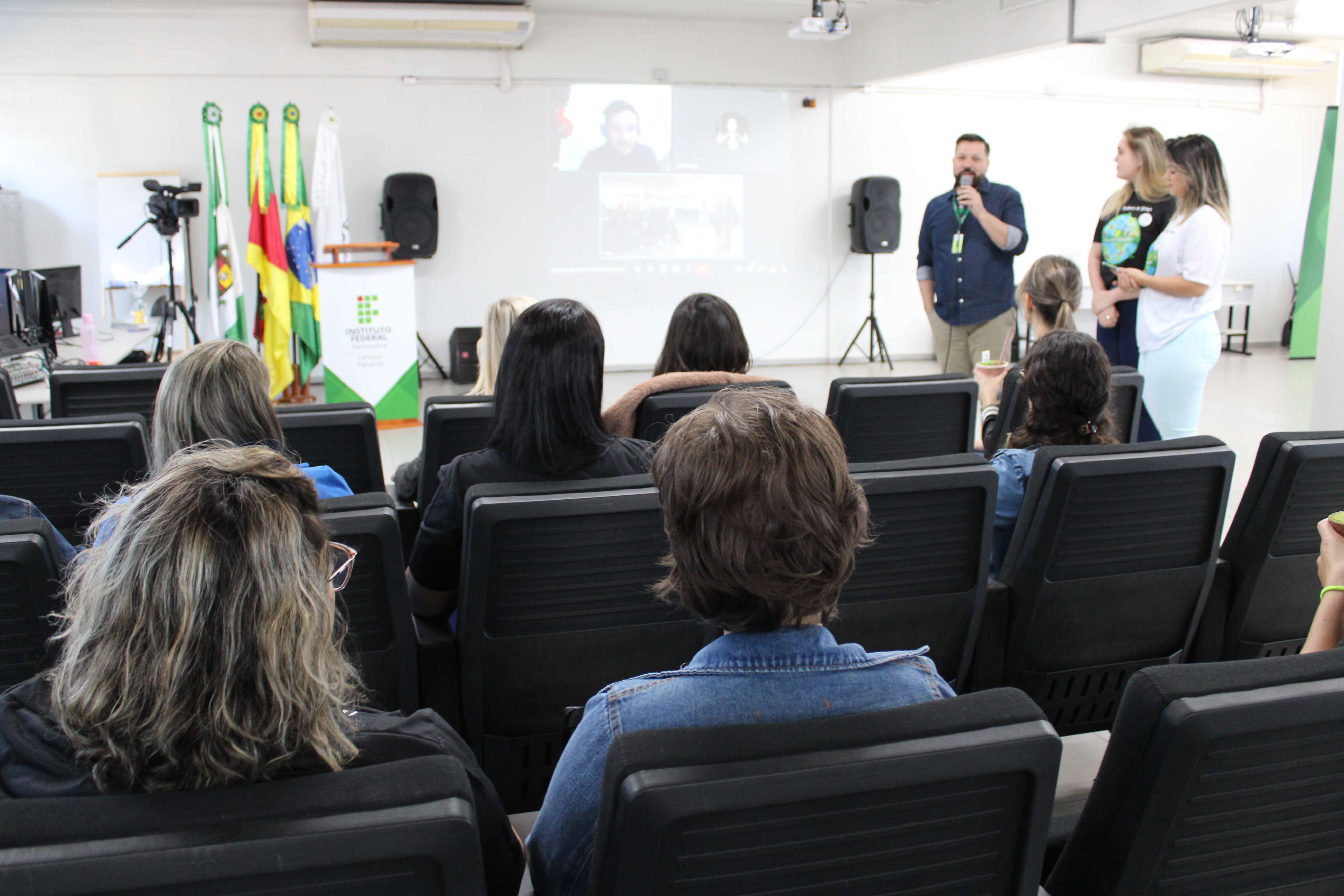 A segunda atividade da manhã foi uma palestra presencial com o farmacologista Gilvani Alves Martins, sobre o tema “Medicamentos alopáticos, fitoterápicos e interação medicamentosa”, realizada no auditório do IFFar – Campus Panambi.