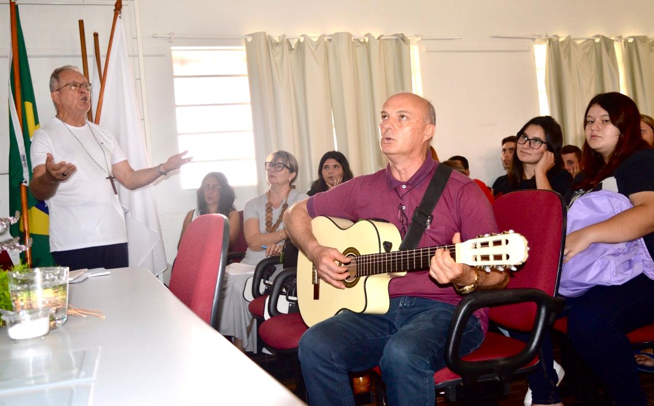 No dia 24 de fevereiro de 2025 teve início, no Campus do IFFar em Jaguari, a primeira atividade do projeto de Ensino “Jardim de conhecimento: Educação ambiental e sustentabilidade”. Nesta oportunidade, o bispo emérito de São Gabriel da Cachoeira – Amazonas, Dom Edson Damian, acompanhado pelo pároco da Paróquia Imaculada Conceição de Jaguari, Saulo Faccin, conduziram uma conversa sensibilizadora e motivacional com os estudantes do Campus sobre a importância do cuidado com o meio ambiente e nossa casa comum. Além disso, foi apresentada a Campanha da Fraternidade 2025 que tem como tema “Fraternidade e Ecologia Integral”.