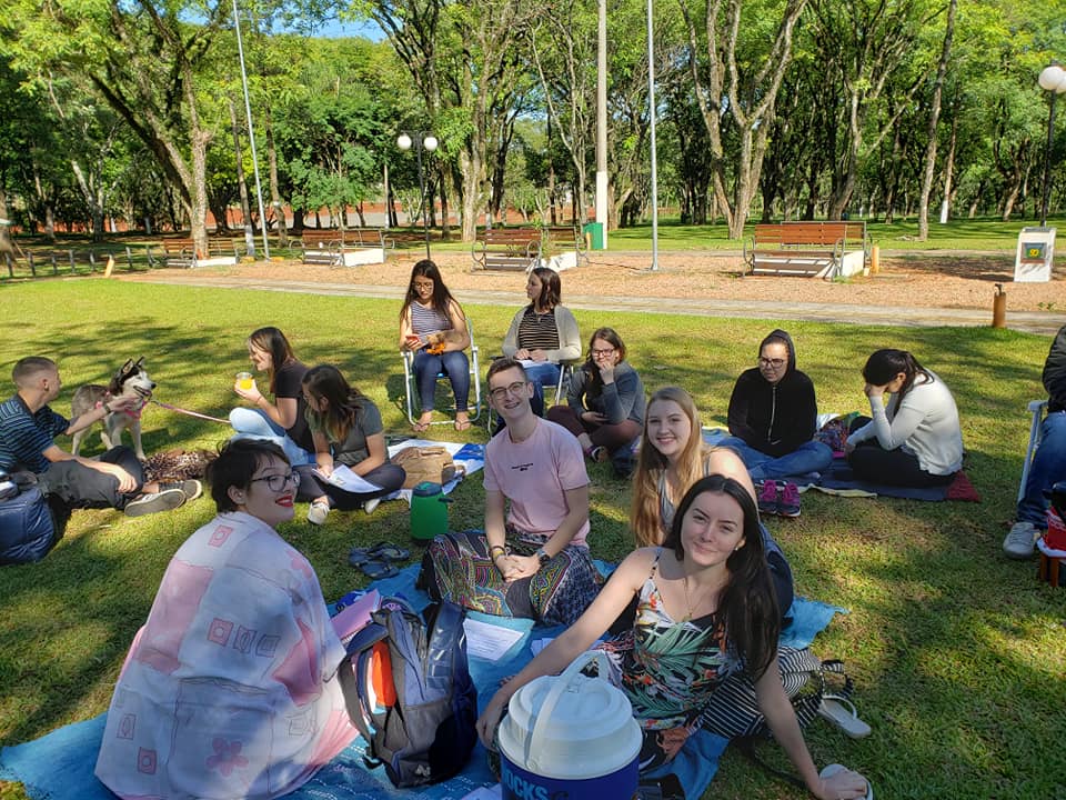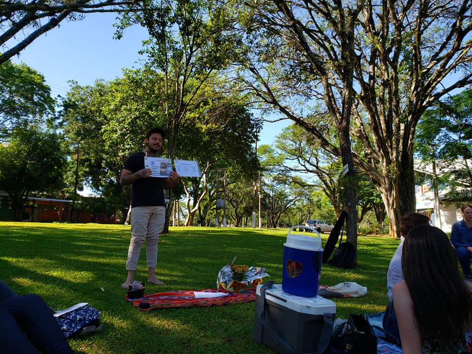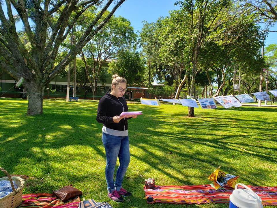 Os acadêmicos da Licenciatura em Ciências Biológicas (T4) participaram na manhã de quinta-feira (28) do Piquenique dos Saberes, no gramado do Parque de Exposições de Santa Rosa. A atividade foi proposta pela professora Dra. Rúbia Emmel, que ministra a disciplina de Didática, Currículo e Organização do Trabalho Pedagógico, com o objetivo de proporcionar novos espaços para as atividades letivas. “A ideia de a atividade ser realizada ao ar livre traz um novo olhar sobre a ocupação destes territórios, propiciando a integração dos alunos, a reflexão sobre os saberes e a apreciação da natureza”.