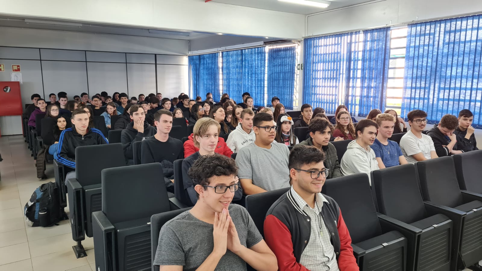 Onde inicialmente, foram realizadas algumas problematizações para que os estudantes pensassem sobre o porquê desta aula estar sendo realizada em conjunto com dois cursos que, aparentemente, não tem nada em comum.