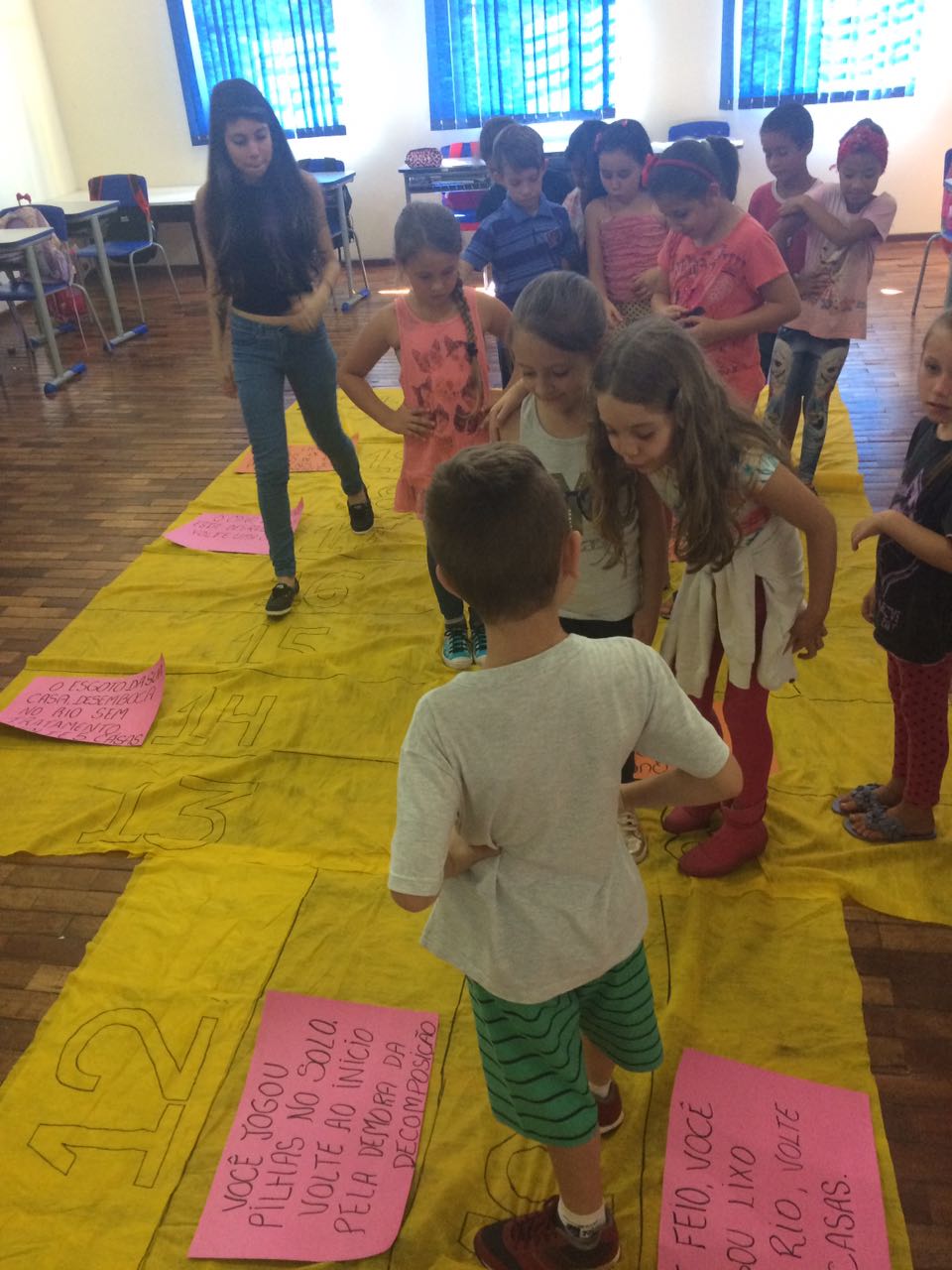 Dentre as estratégias já utilizadas em sala de aula destacam-se a criação de oficinas didáticas por temas, as quais englobam jogos de pescaria, jogo da memória, jogo do stop e jogos de trilhas sobre tabuleiro, cujas “peças” são os próprios alunos. Todos abordam os cinco principais aspectos elencados como problemas ambientais no município, a partir de entrevistas realizadas com habitantes locais: lixo, poluição, agrotóxicos, desmatamento e caça. Os jogos são elaborados a partir de materiais com baixo custo, como caixas de papelão, tecido em TNT e tinta guache, o que permite que os jogos sejam replicados pelos professores da escola para outros conteúdos e disciplinas. Ao final de cada atividade de educação ambiental em sala de aula, a atividade de reforço da aprendizagem ocorre através da ilustração do que mais chamou a atenção durante a prática executada. Os desenhos constituirão parte do livro digital (e-book) sobre os projetos, que será lançado posteriormente.