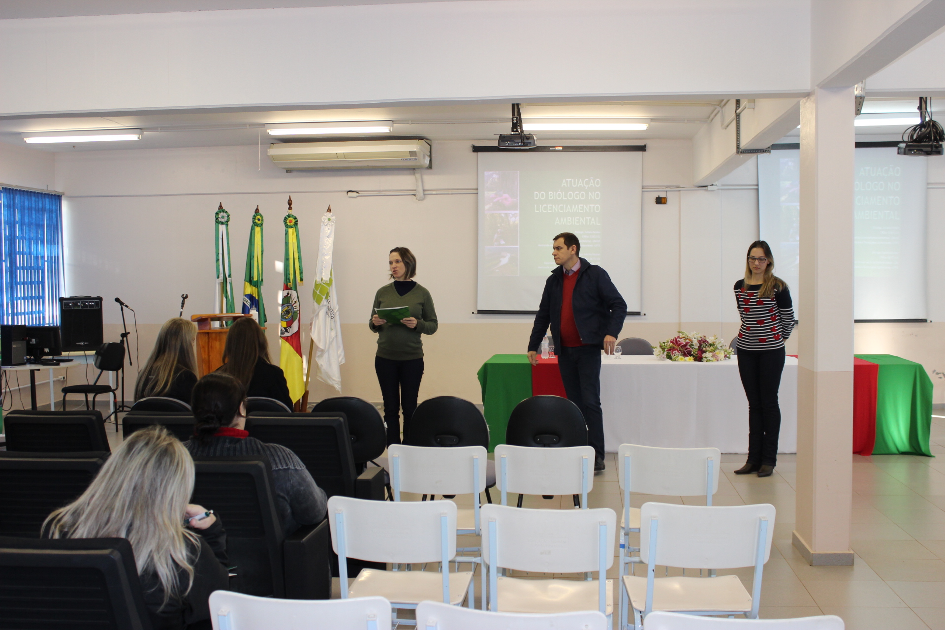 Com o tema “Integrando a profissão do biólogo com práticas ecológicas”, a Semana Acadêmica do curso de Ciências Biológicas iniciou com palestras sobre legislação e as possibilidades de atuação do biólogo no licenciamento ambiental. Na manhã de hoje, 22/05, Juliana Felden, da Ciliar Consultoria Ambiental, falou sobre “Legislação Ambiental”, e Adelita Maria Rauber, apresentou um Estudo de caso pela mesma empresa. A segunda palestra da manhã ficou a cargo de Alexandre Hüller, da Secretaria de Estado do Meio Ambiente, e abordou “A atuação do biólogo no Licenciamento Ambiental”.