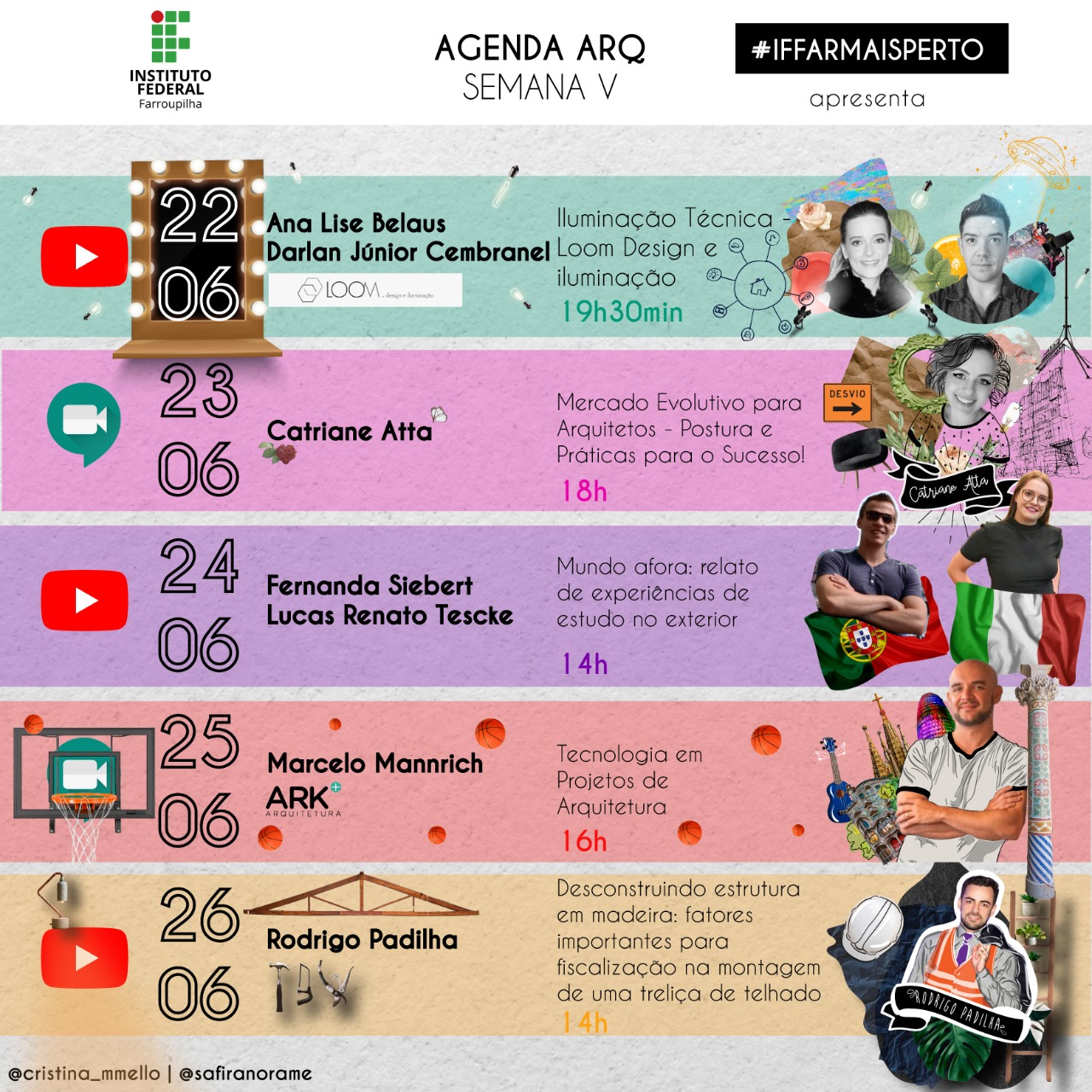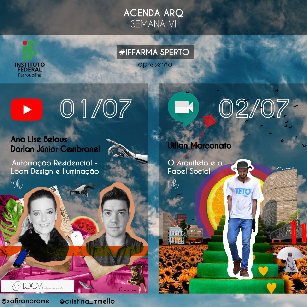 Seg. 22/06 - 19h30 - Iluminação Técnica com Loom Design e Iluminação - Youtube IFFar Campus Santa Rosa - https://www.youtube.com/watch?v=yFC-WEXTFhIBacharelado em Arquitetura e Urbanismo