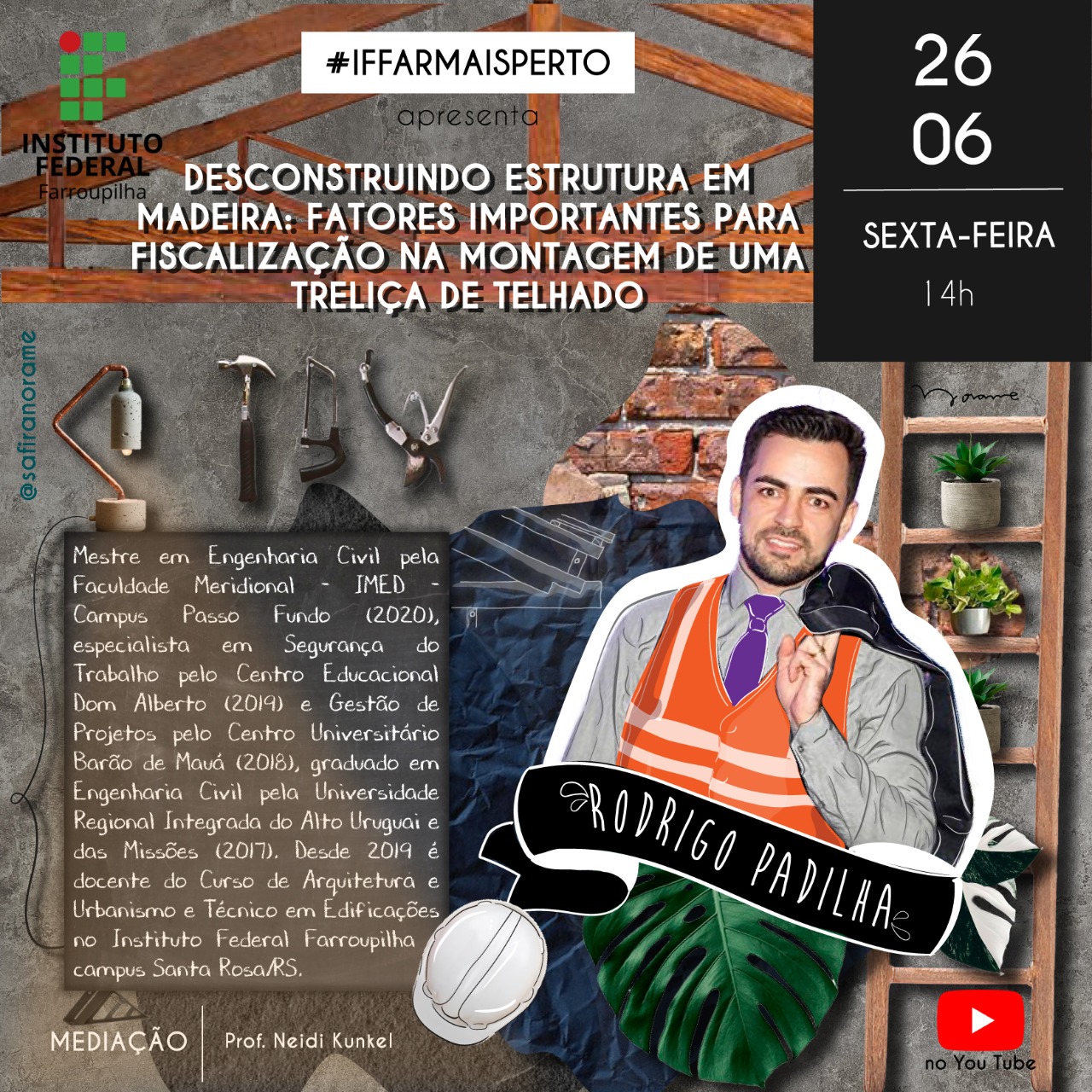 Sex. 26/06 - 14h - Desconstruindo estrutura em madeira: fatores importantes para fiscalização na montagem de uma treliça de telhado com Prof. Rodrigo Padilha - Youtube IFFar Campus Santa Rosa
