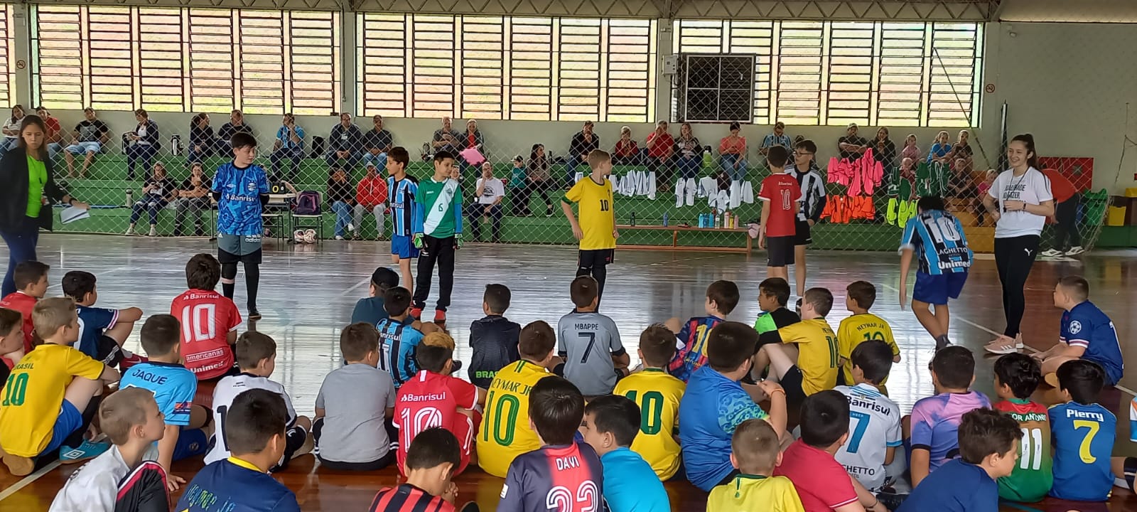 Na tarde de terça-feira, 22/03, realizou-se a abertura oficial do Projeto de extensão Academia & Futebol, desenvolvido pelo IFFar – Campus Panambi. O projeto objetiva proporcionar acesso cultural e prática esportiva para crianças e adolescentes do sexo masculino e feminino, matriculadas preferencialmente na rede pública de ensino, sem custos para os participantes. Os treinos são ofertados duas vezes por semana para cada turma, sendo realizados no ginásio do IFFar – Campus Panambi. No total 150 estudantes serão atendidos, por um período de dois anos de atividades.